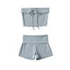 2025 Verano Nueva Moda Estilo Urbano Top Sin Mangas con Cuello Inclinado Sexy Ajustado Conjunto de Shorts con Lazo