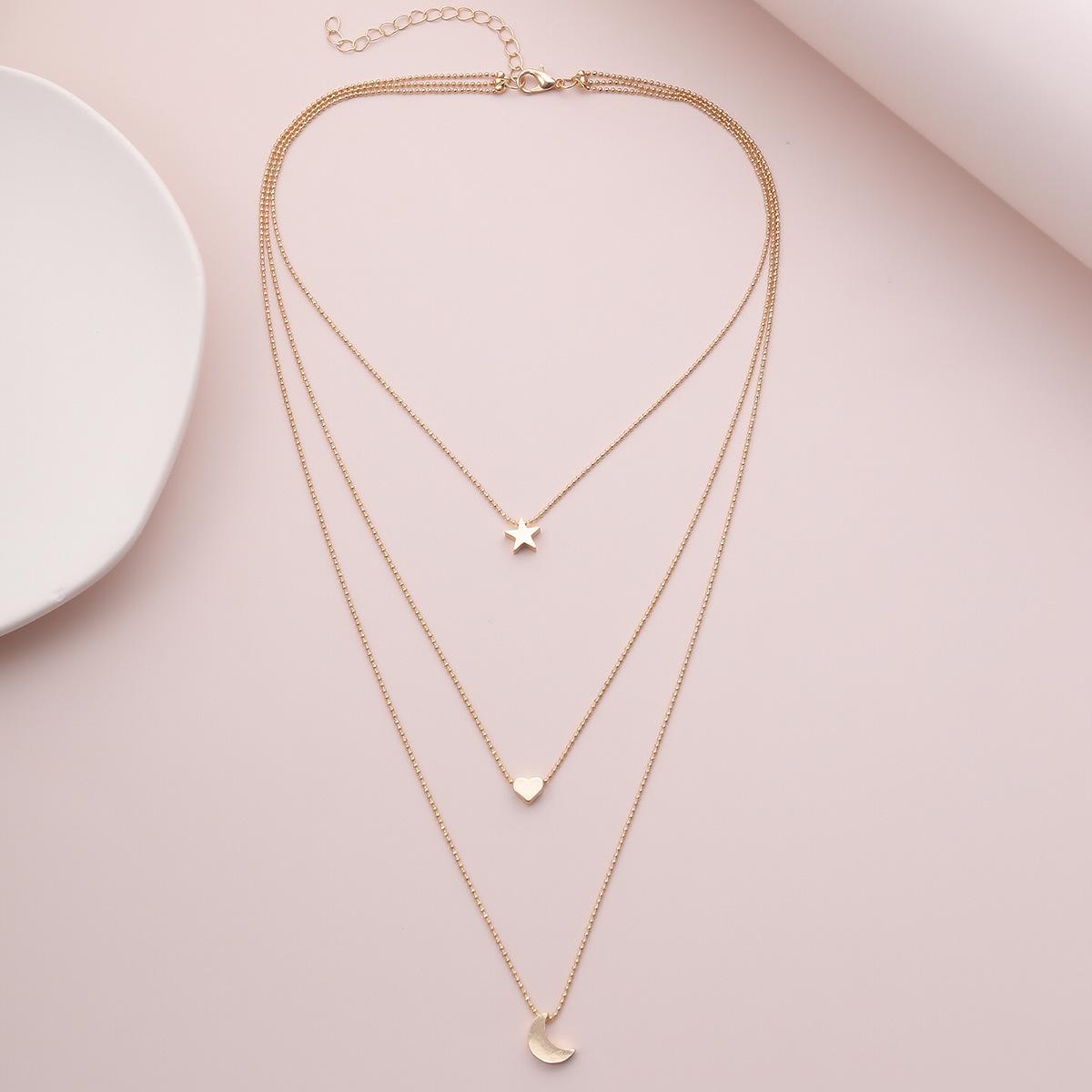 Collar Europeo y Americano Transfronterizo Nuevo Estilo Colgante Dorado Cadena Clavícula Creativo Retro Sencillo Estrella Luna Corazón Geométrico