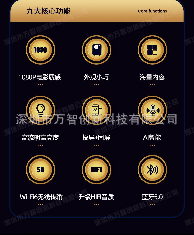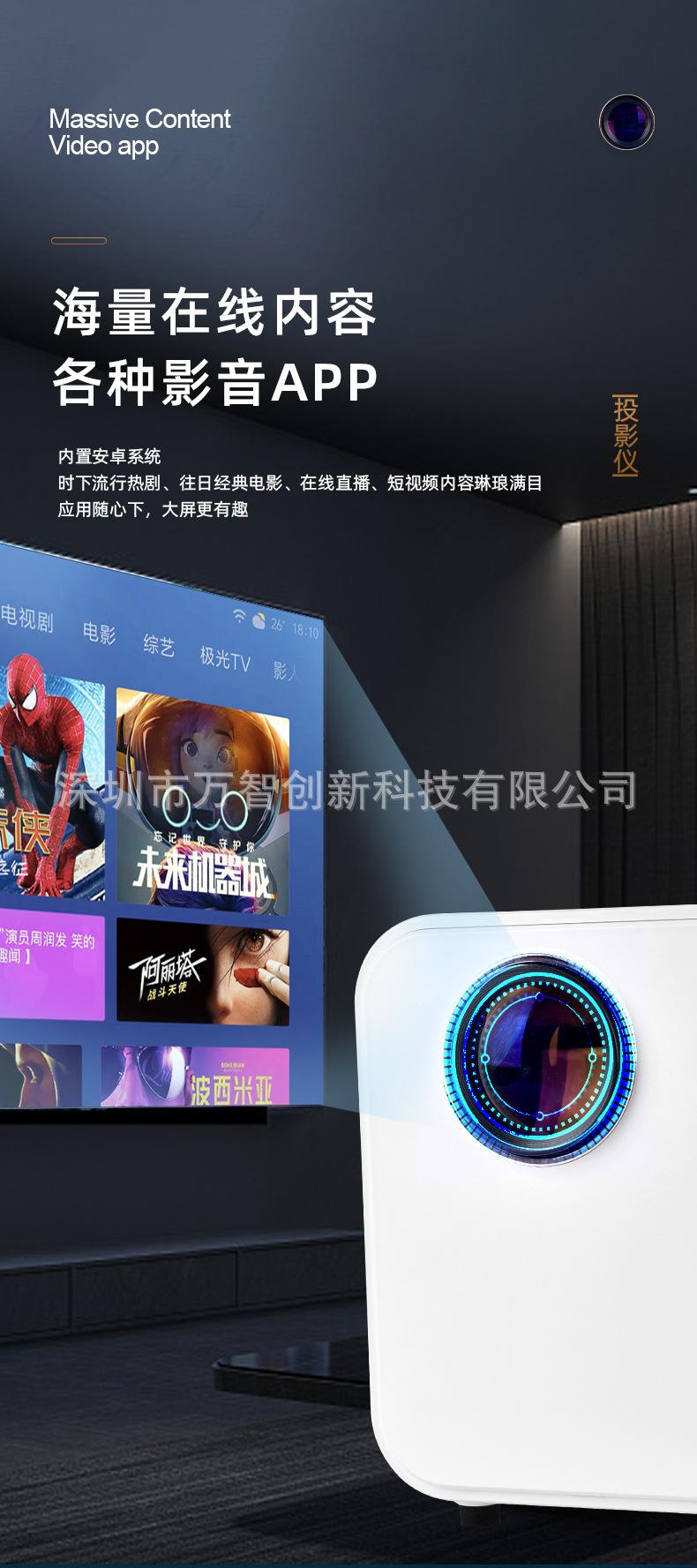 Proyector Doméstico para Uso en Casa Proyector 1080P Mini Proyector Doméstico Inteligente Inalámbrico Wifi para Proyección en Pared de Dormitorio