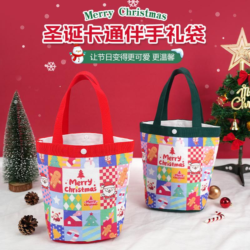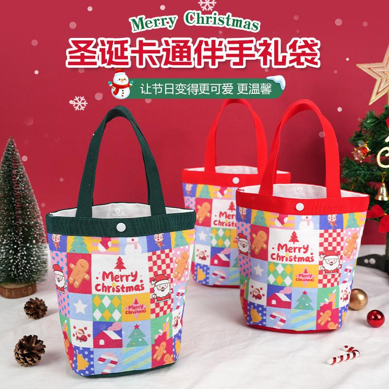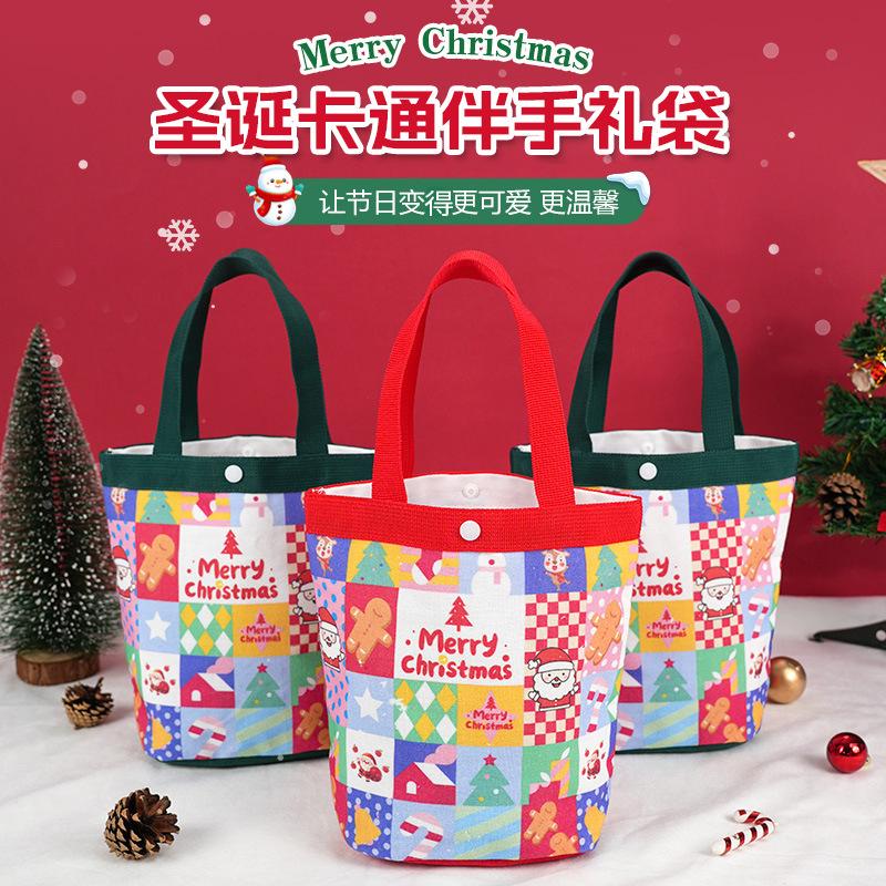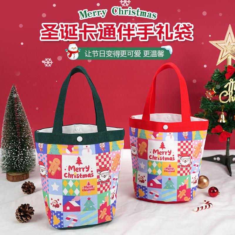 Christmas cylinder bag green, Christmas tree canvas bag (27*22* 9cm ), Snowflake santa canvas bag (27*22*9l cm...