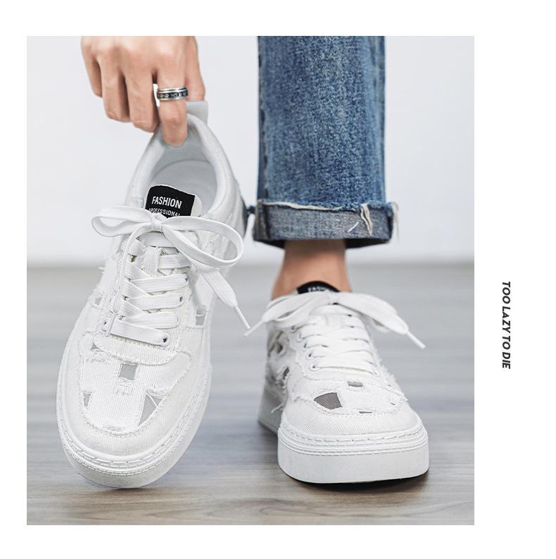 Zapatos Nuevos para Hombre 2025 Verano Transpirables de Moda con Cordones Zapatos de Tela para Hombre Zapatos Deportivos Casuales Zapatos Blancos Tenis Versátiles