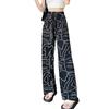 Pantalones de Pierna Ancha Estampados de Verano de Seda de Hielo con Sensación Fresca para Mujer Delgados de Cintura Alta Sueltos de Pierna Recta Estilo Casual Transpirables Pantalones Largos Adelgazantes