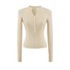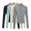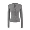 24 otoño e invierno nuevo suéter de punto ajustado con botones y cuello medio abierto de manga larga para mujer suéter delgado de manga larga transfronterizo