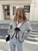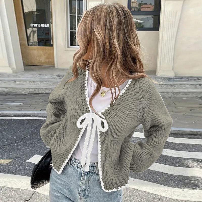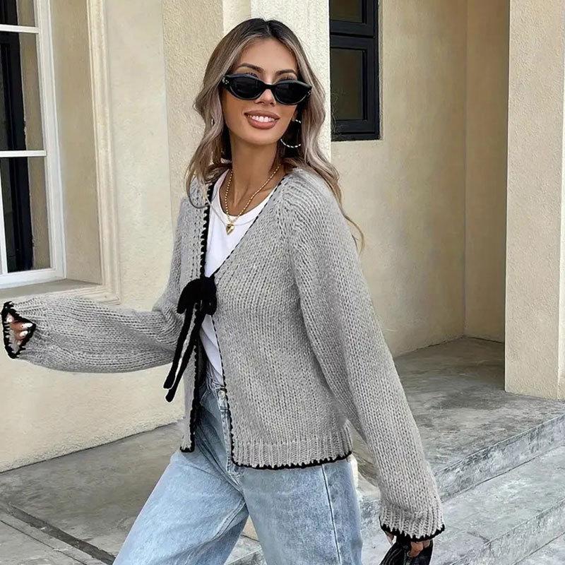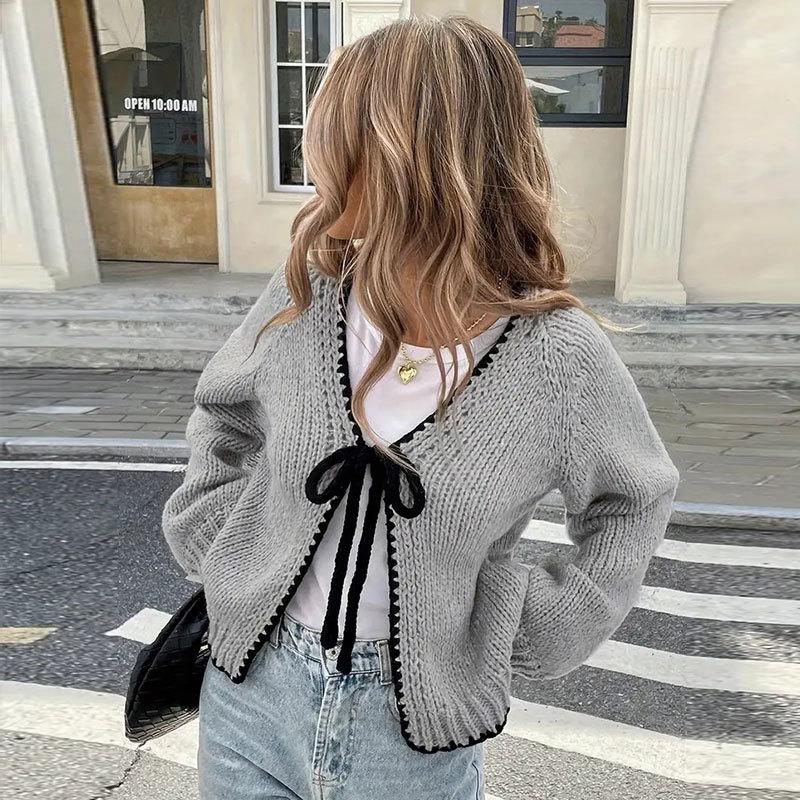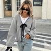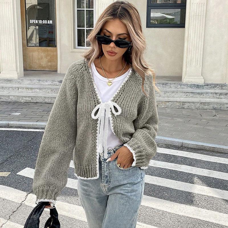 Suéteres Europeos y Americanos Transfronterizos de Otoño e Invierno para Mujer Nuevo Tejido Suelto Manga Larga Lazo Cárdigan Abrigo Top para Mujer
