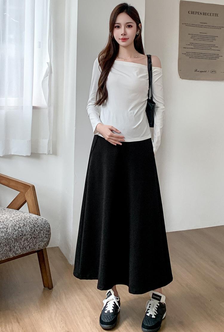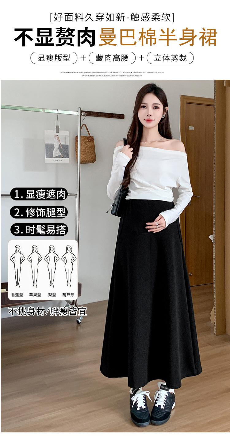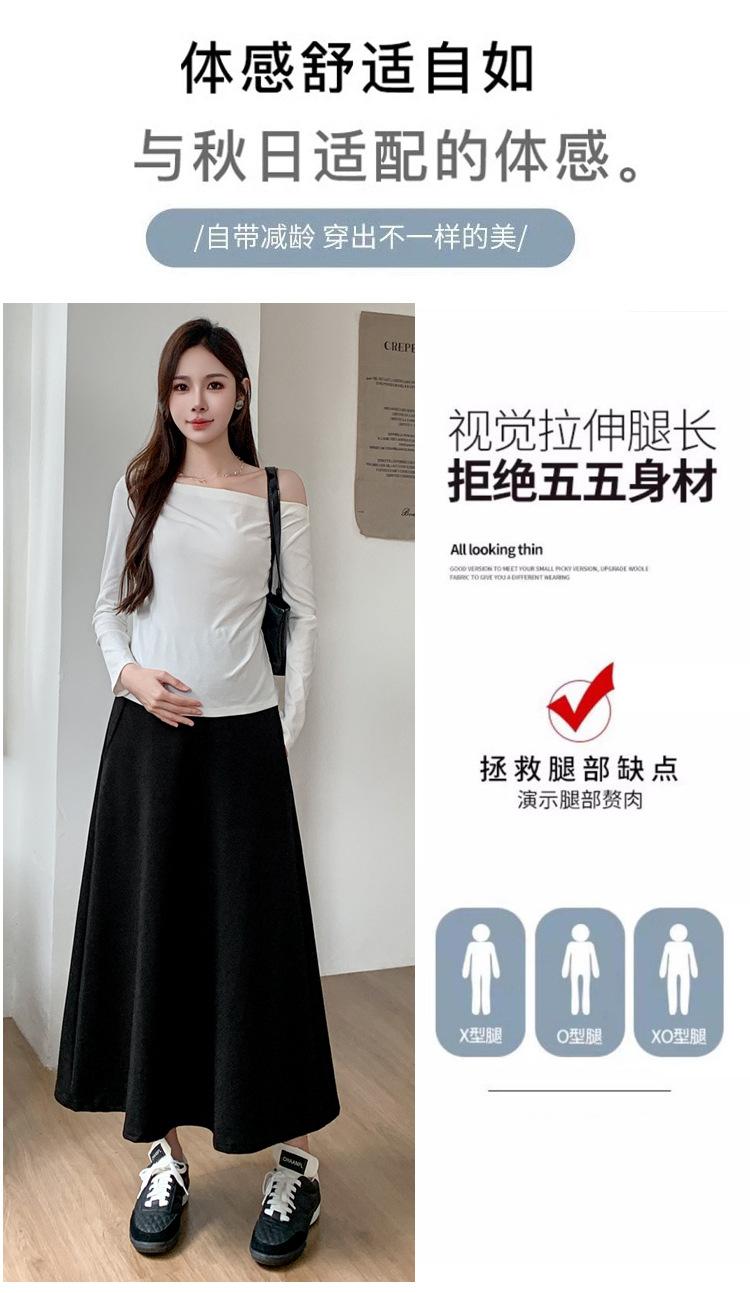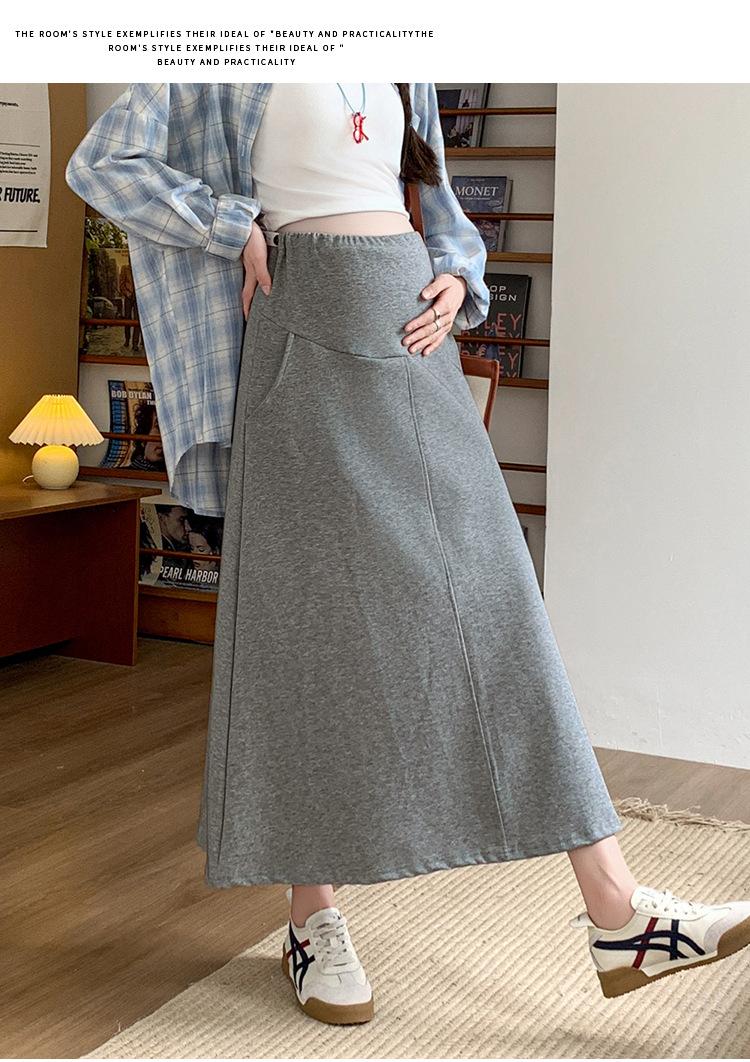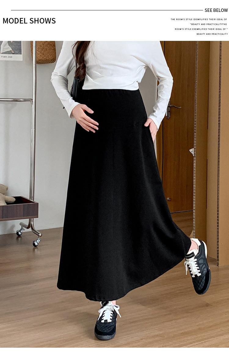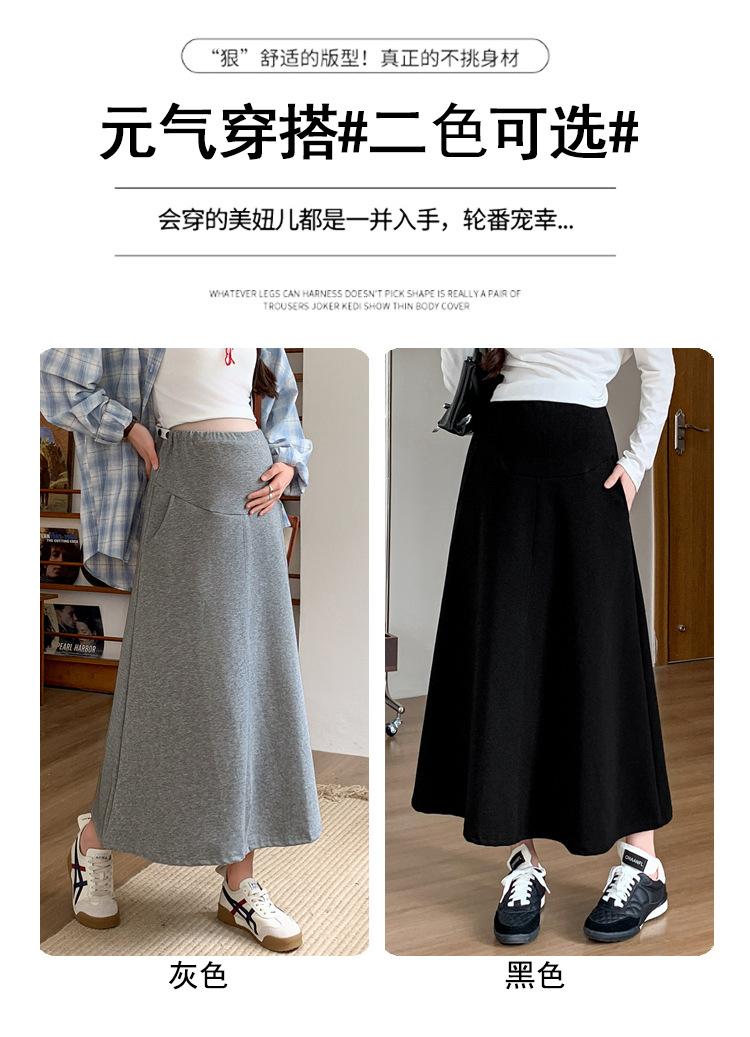 Ropa de Maternidad Otoño/Invierno 2025 Falda de Maternidad Larga Línea A Dobladillo Grande Gruesa Drapeada No se Arruga Fácilmente Talla Grande