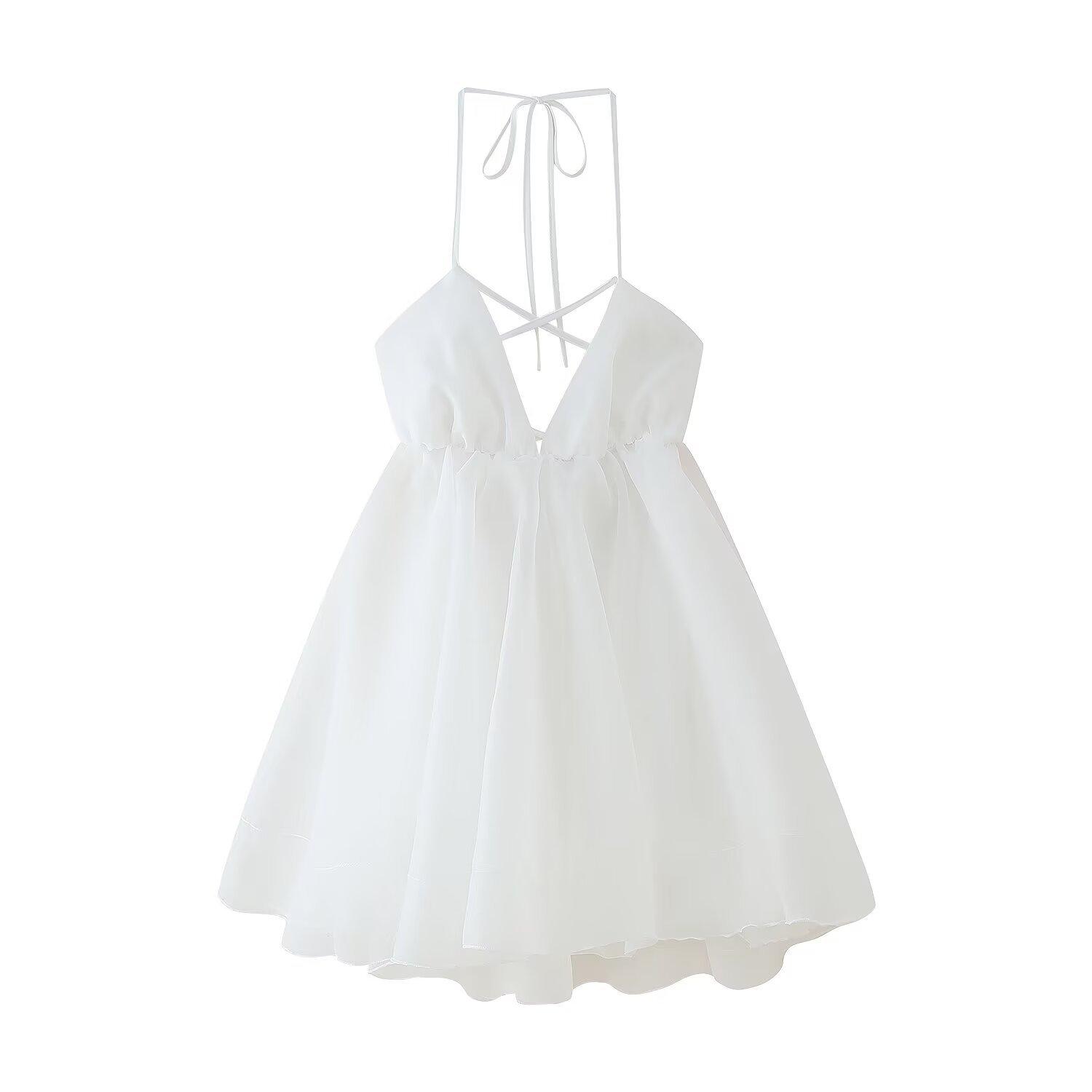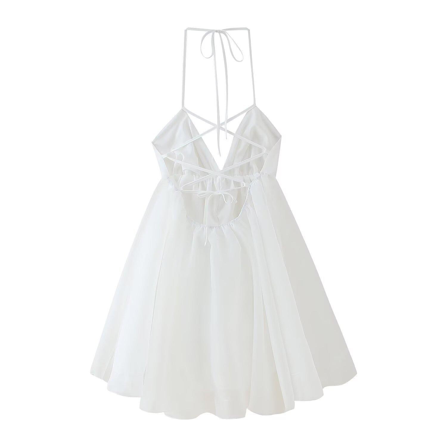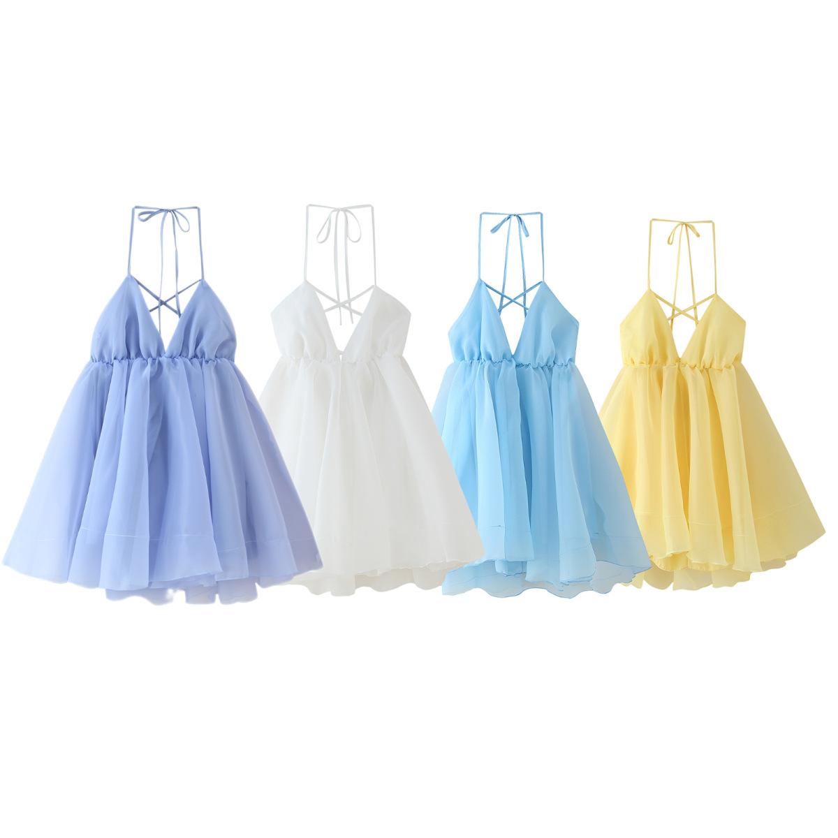 2025 Verano Nuevo Europeo y Americano Transfronterizo Moda Callejera para Mujer Vestido Corto de Tirantes Descubierto W107 106
