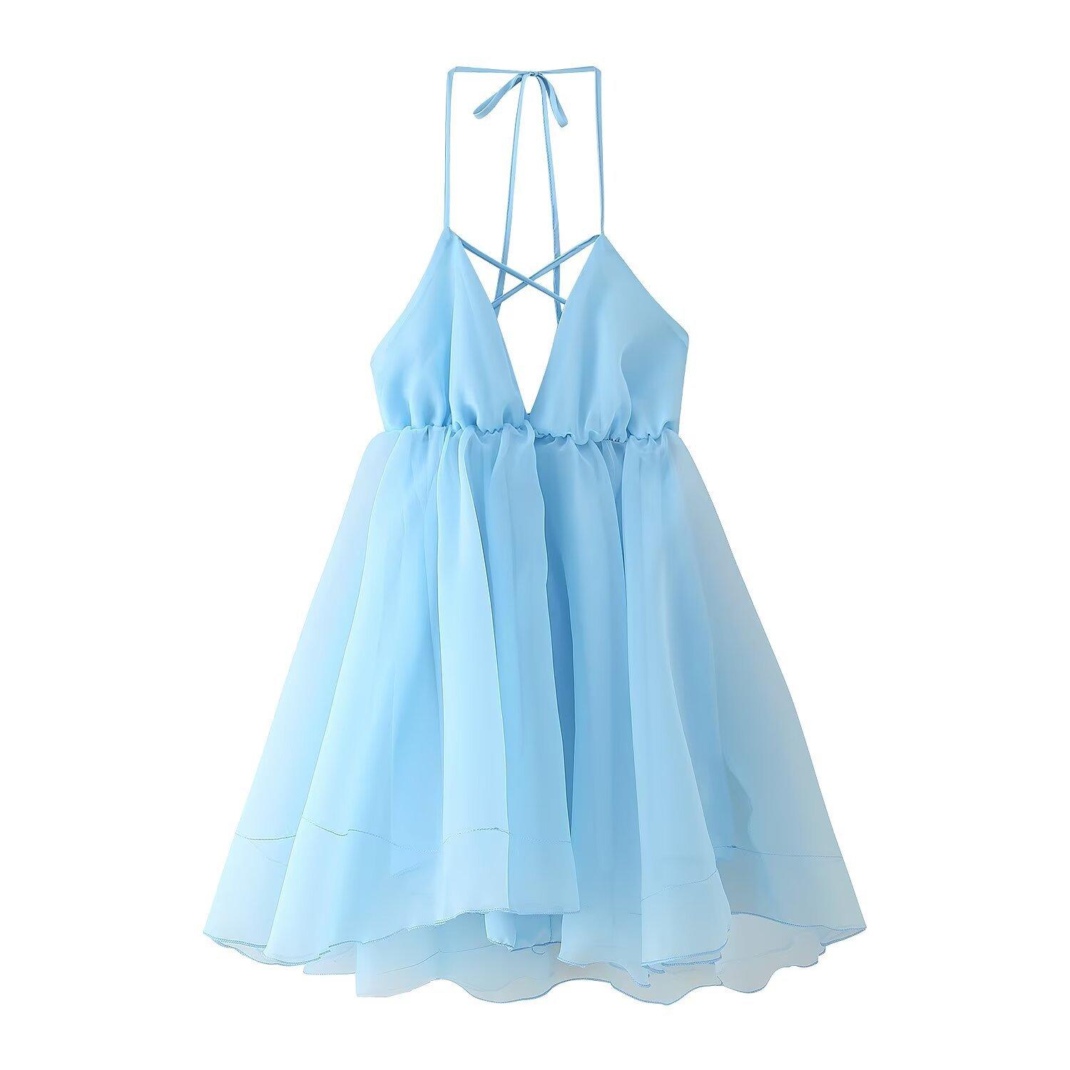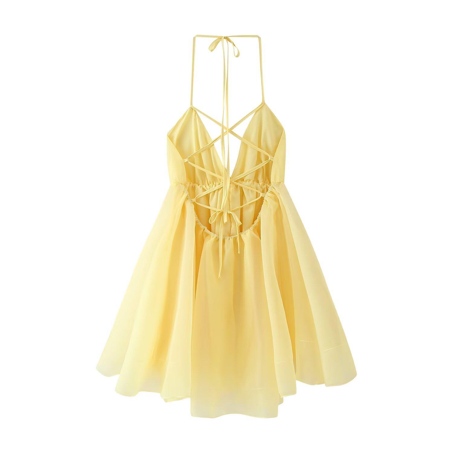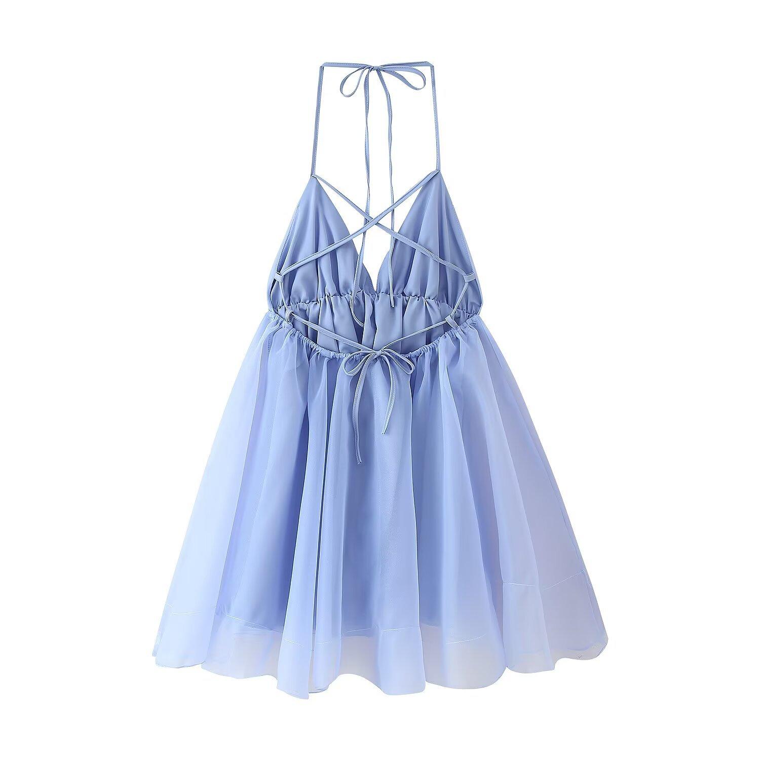 2025 Verano Nuevo Europeo y Americano Transfronterizo Moda Callejera para Mujer Vestido Corto de Tirantes Descubierto W107 106