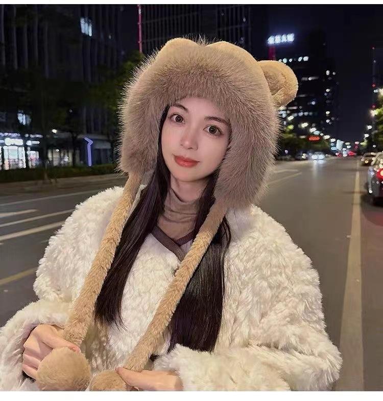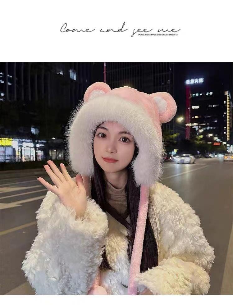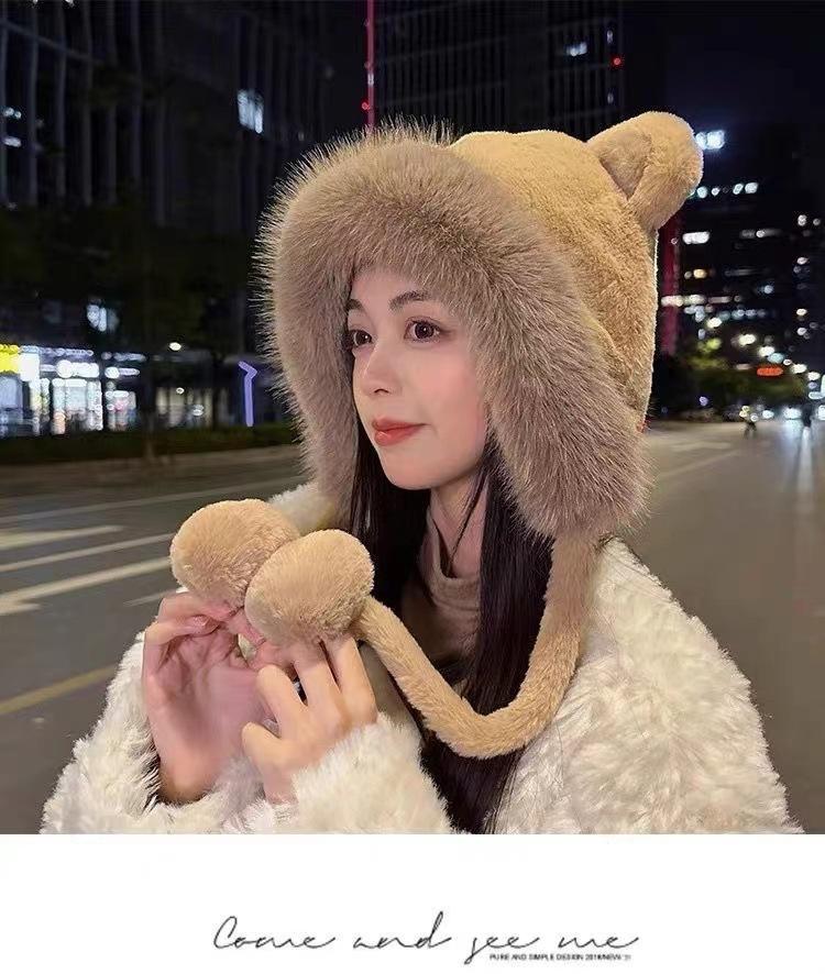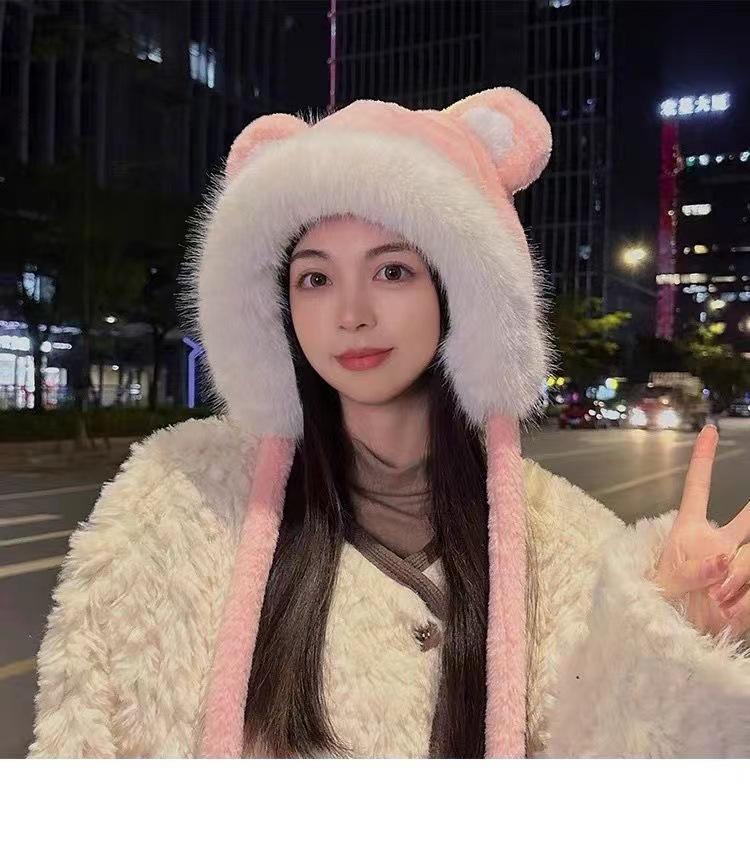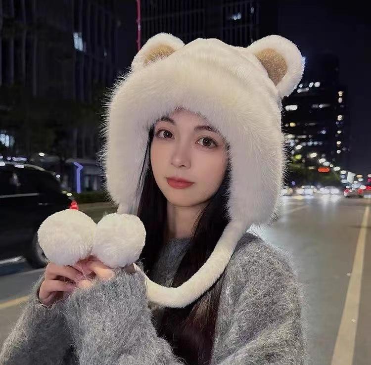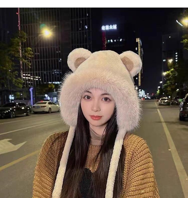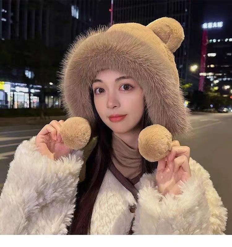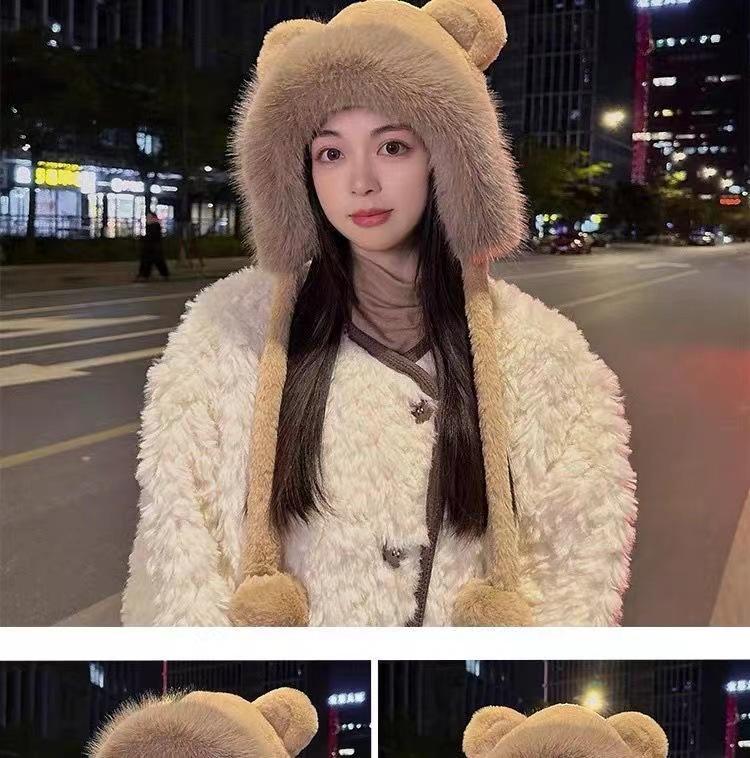 Invierno Estilo Coreano Lindo Sombrero Lei Feng para Mujer Orejas de Oso Sombrero de Felpa Forrado de Lana Grueso a Prueba de Frío Ciclismo Orejeras
