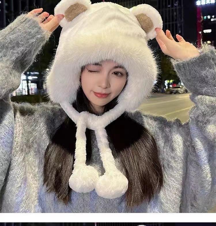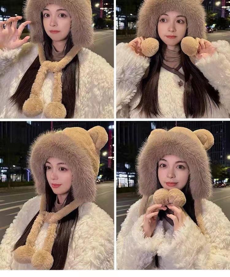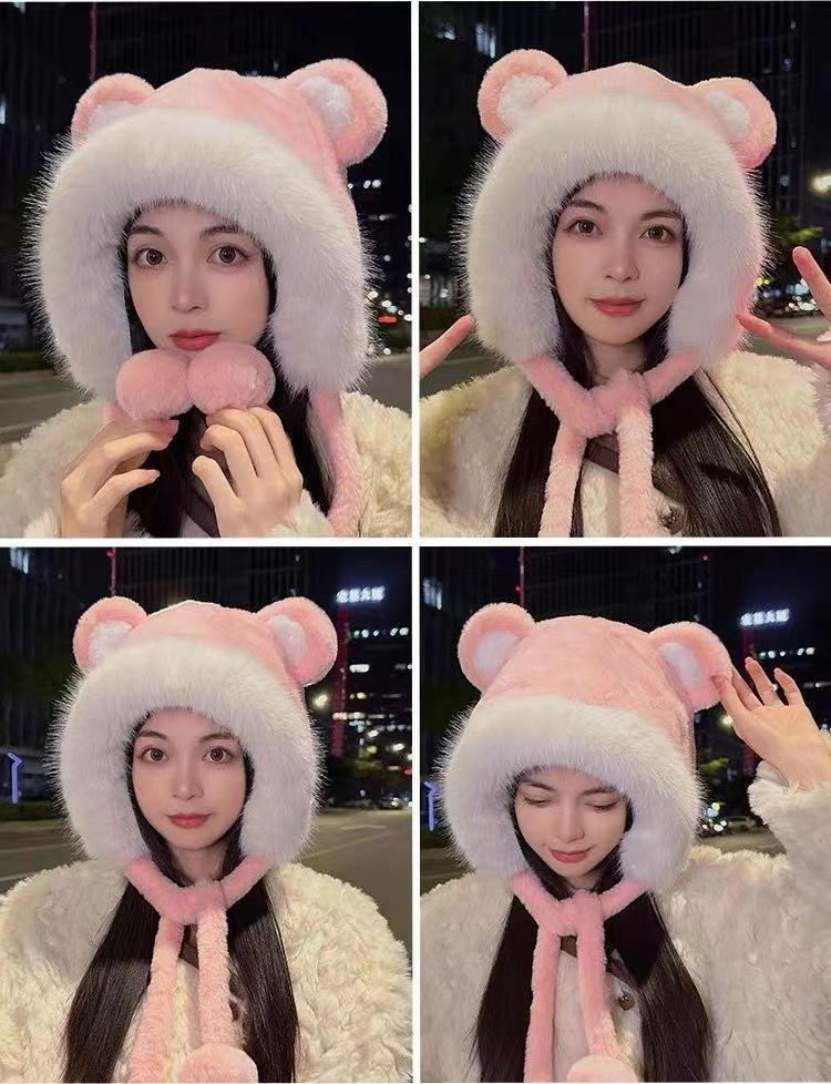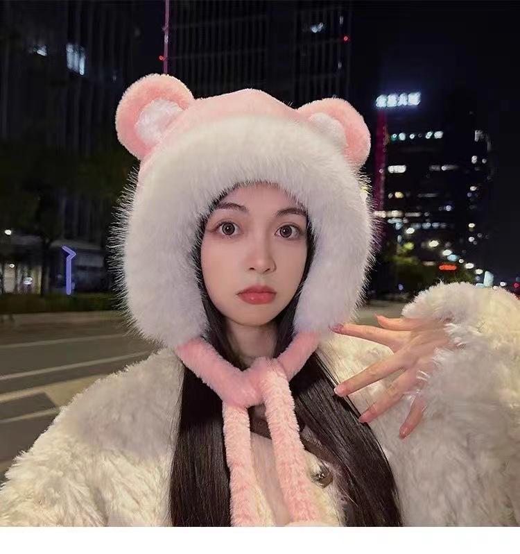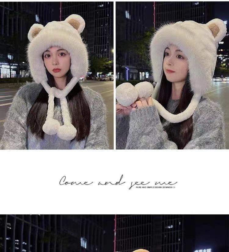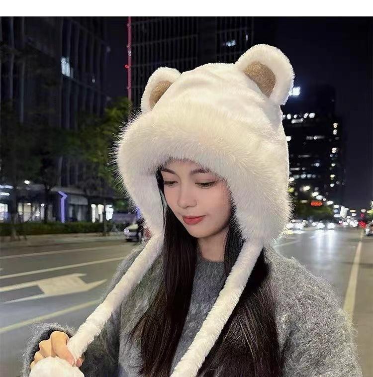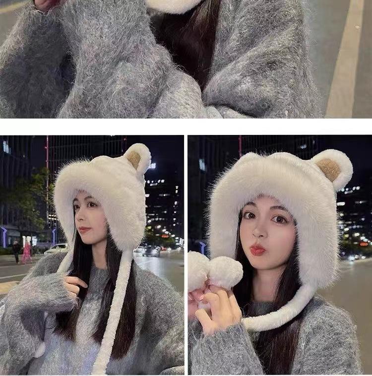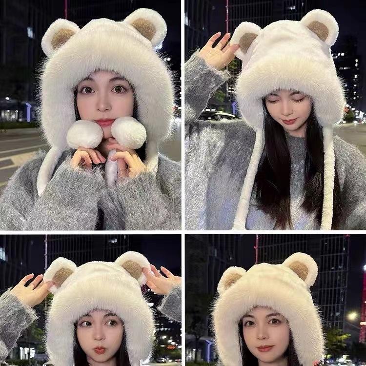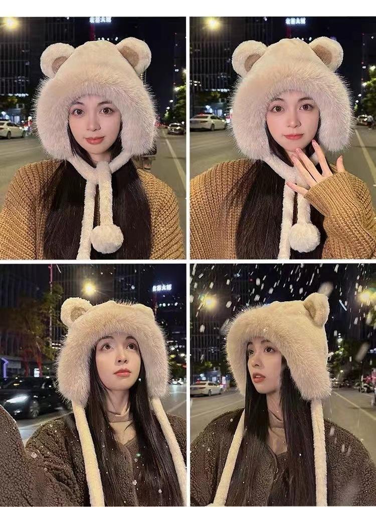 Invierno Estilo Coreano Lindo Sombrero Lei Feng para Mujer Orejas de Oso Sombrero de Felpa Forrado de Lana Grueso a Prueba de Frío Ciclismo Orejeras