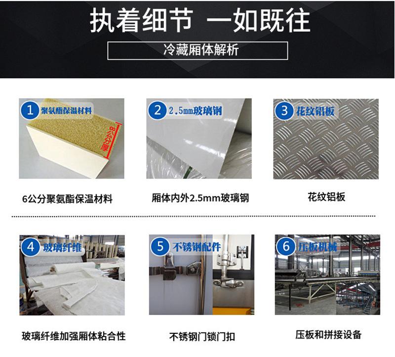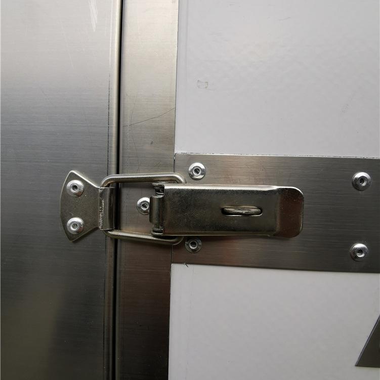 Los paneles de pared interior y exterior están hechos de fibra de vidrio nacional de alta calidad de 2.2 mm; el material de aislamiento intermedio es poliuretano importado; el grosor del compartimento es de 80 mm, y el grosor de la puerta es de 80 mm;