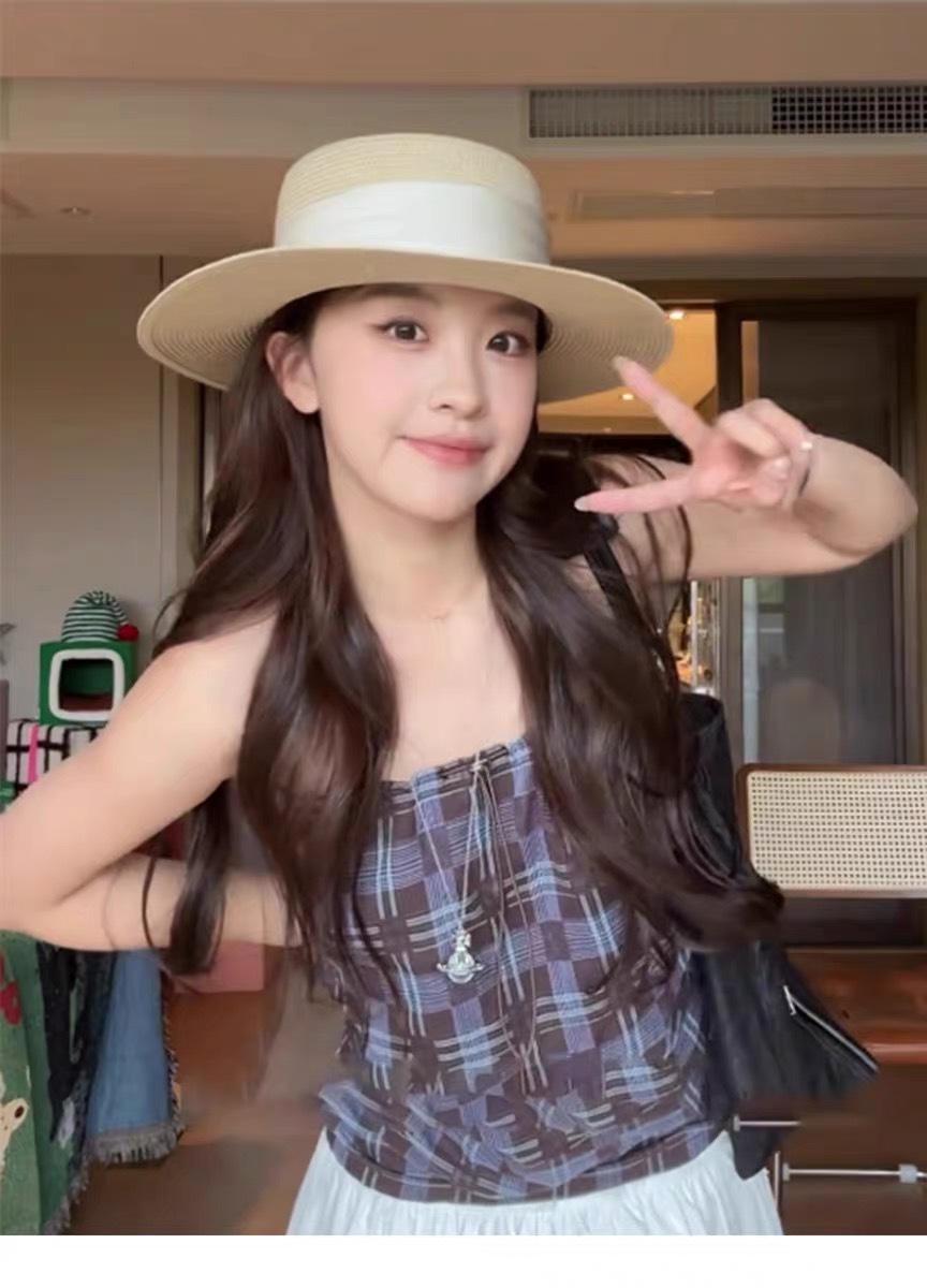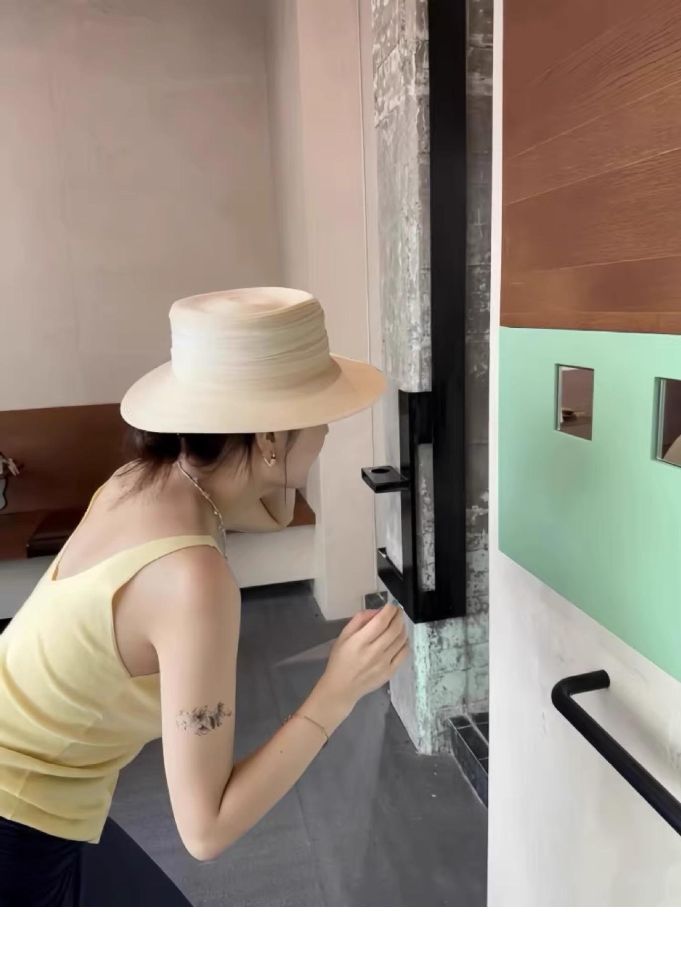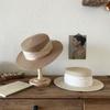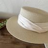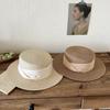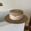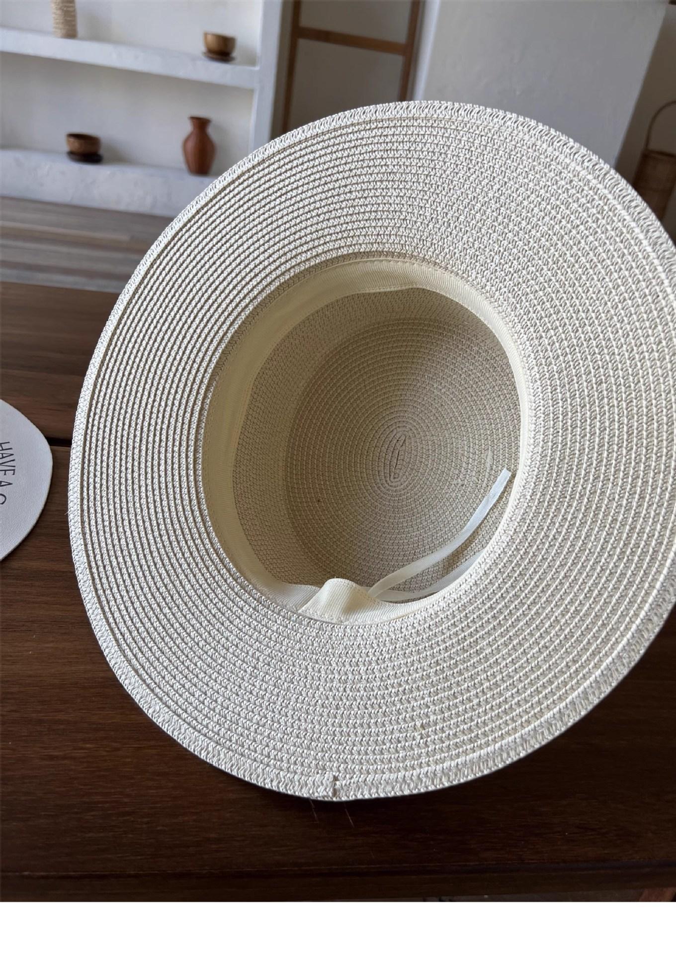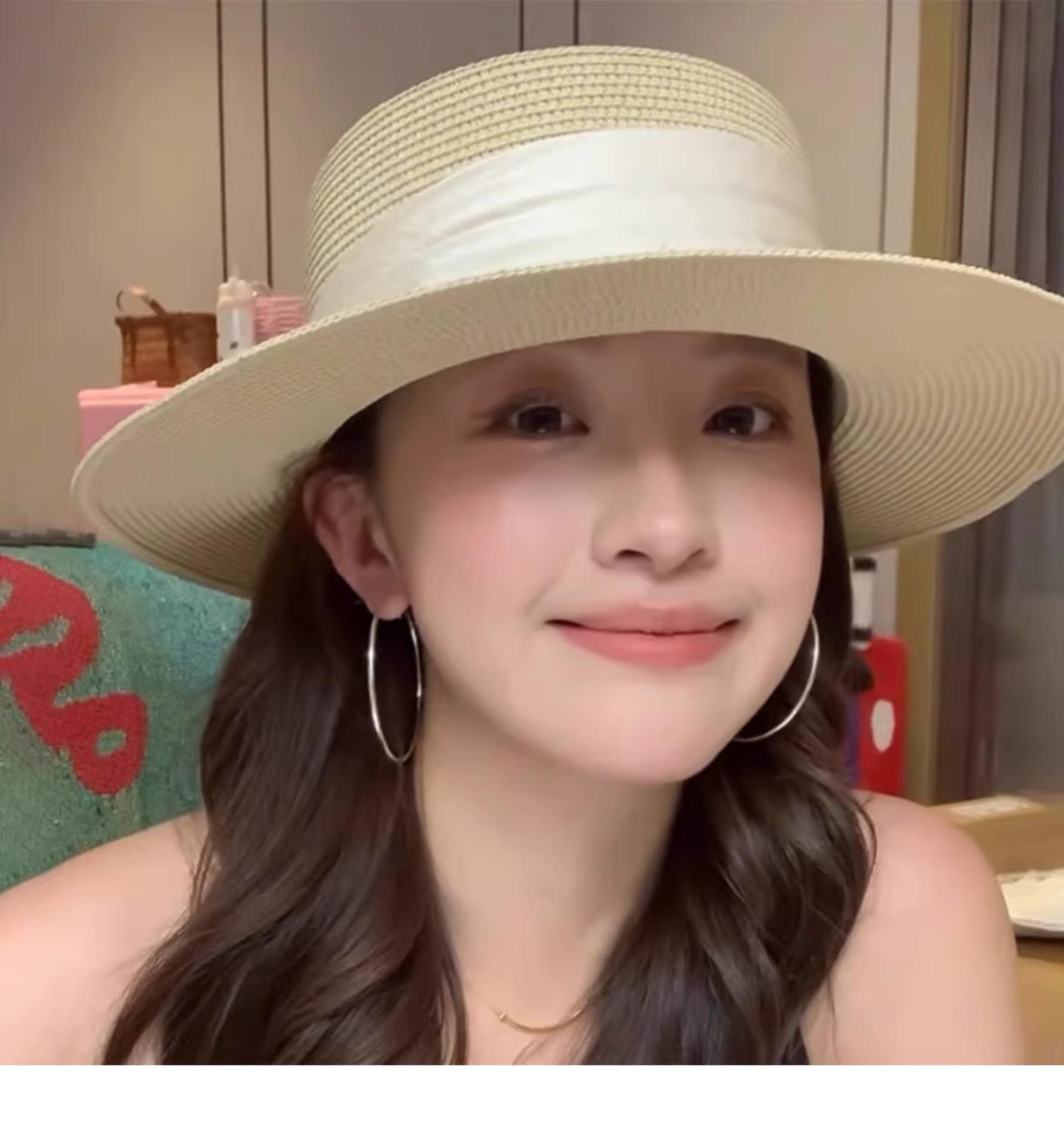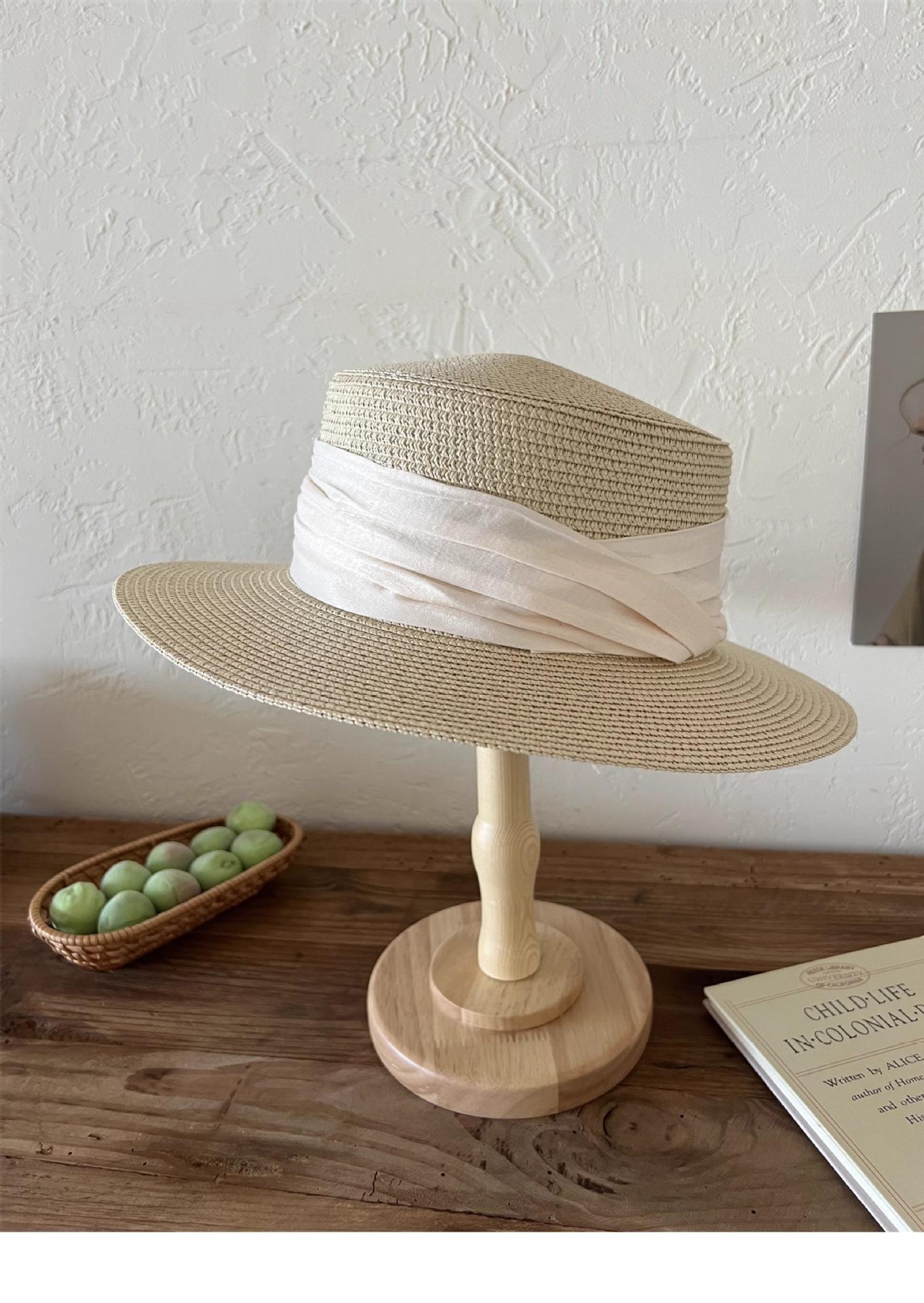 Mismo estilo que la playa, temperamento francés, sombrero de paja retro de copa plana para protección solar para mujer, sombrero de sol para vacaciones de verano junto al mar