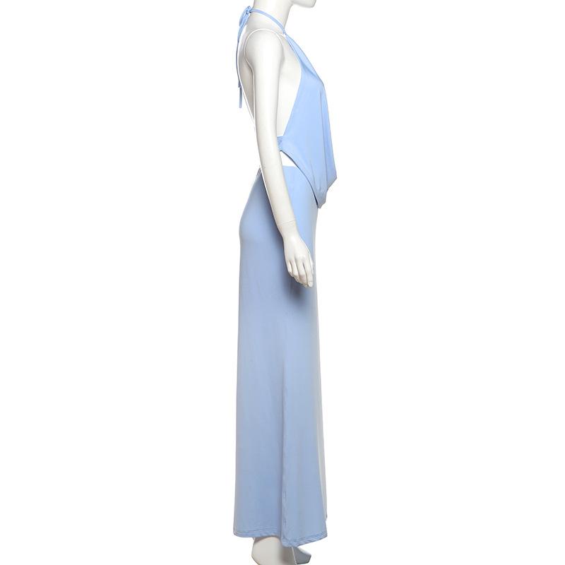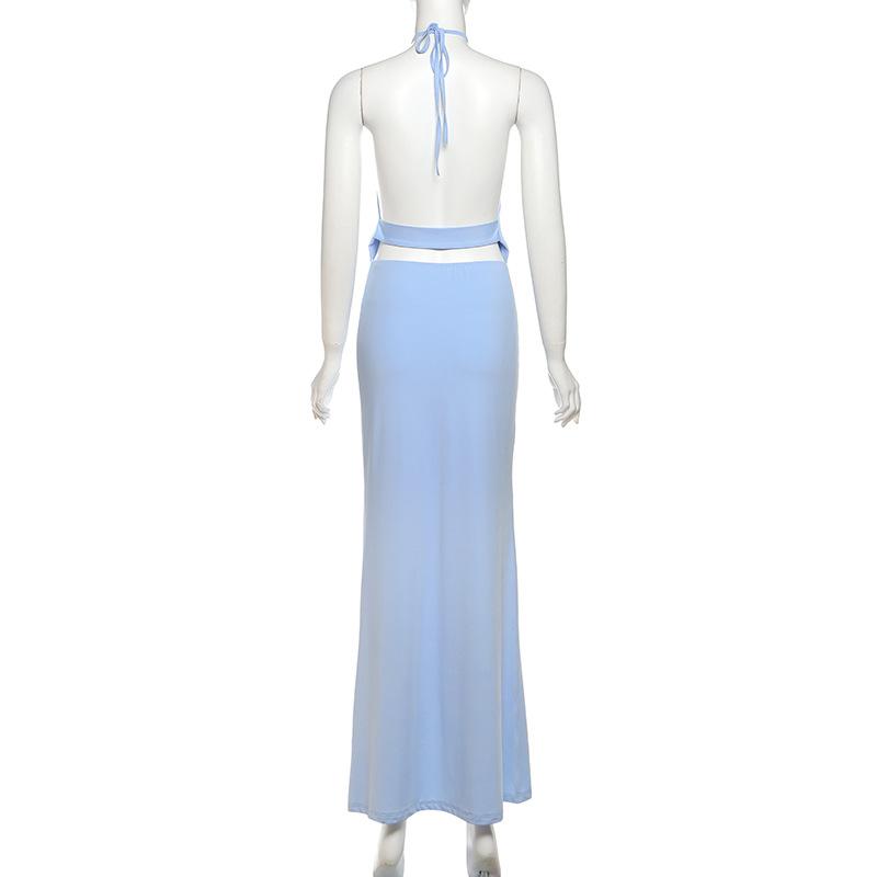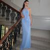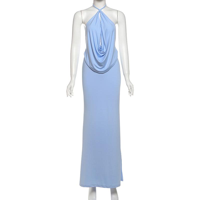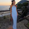 Estilo europeo y americano verano 2025 nueva moda temperamento creativo sin mangas cuello halter espalda descubierta cintura alta corte ajustado vestido