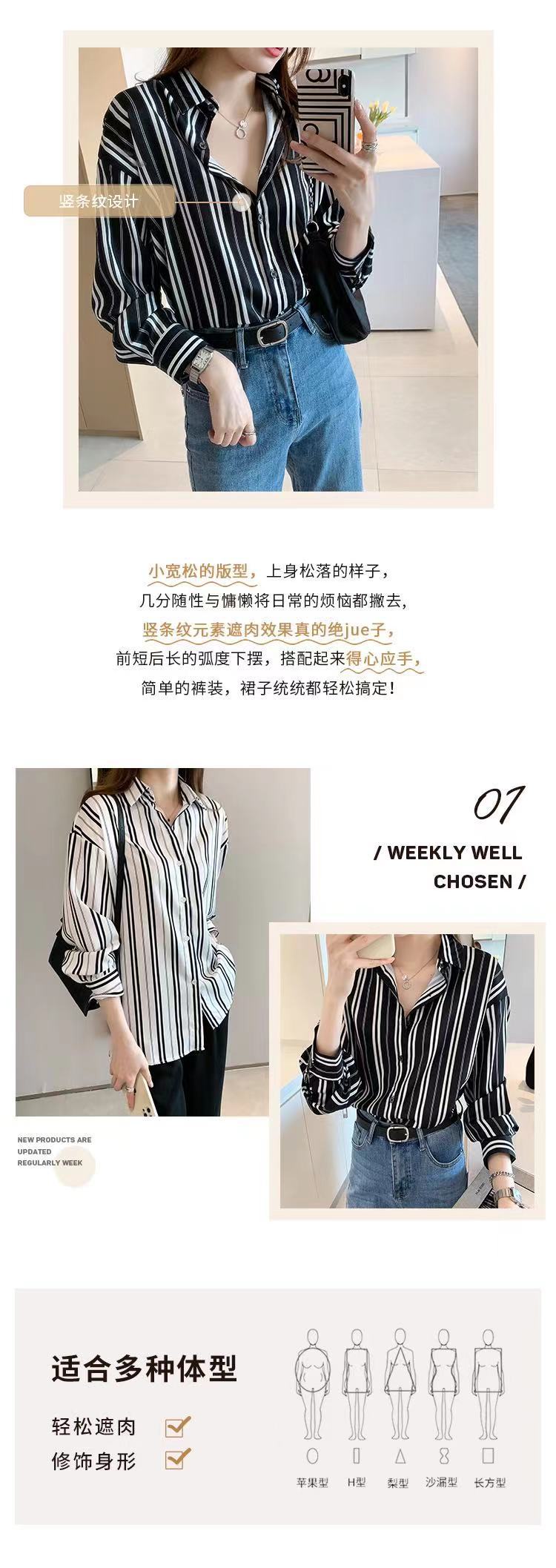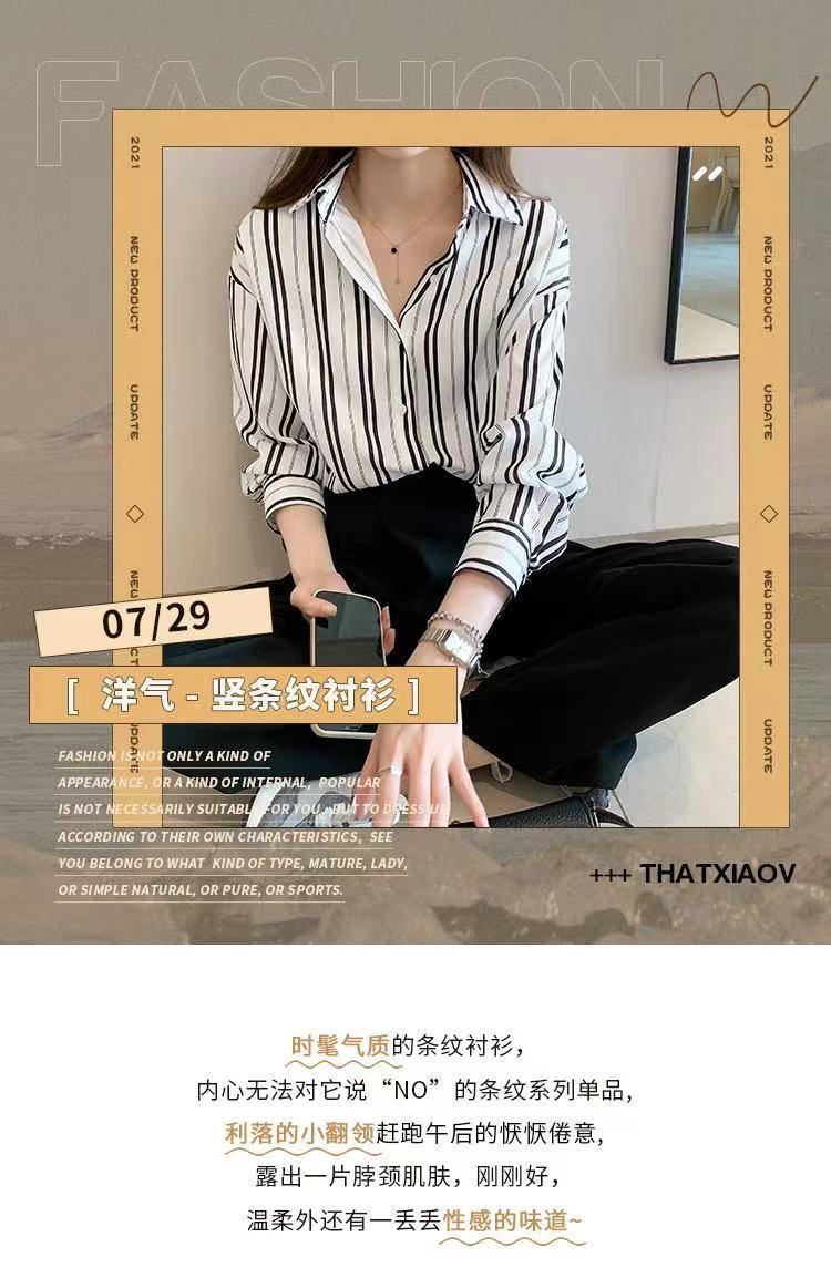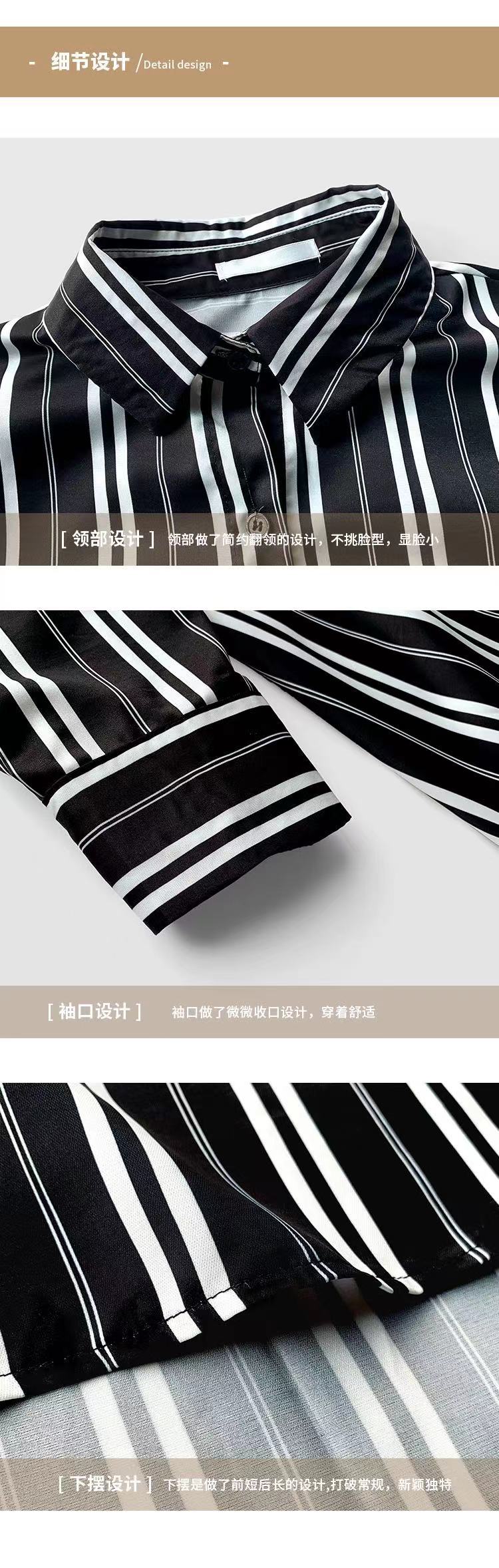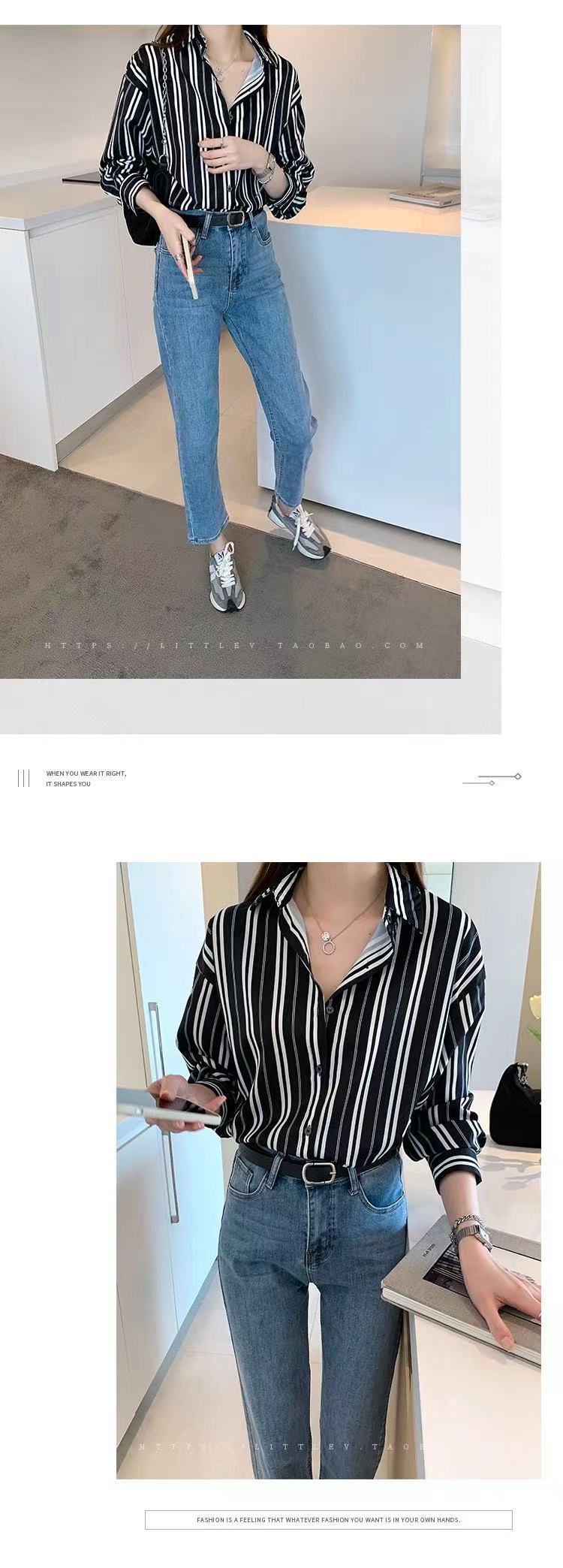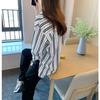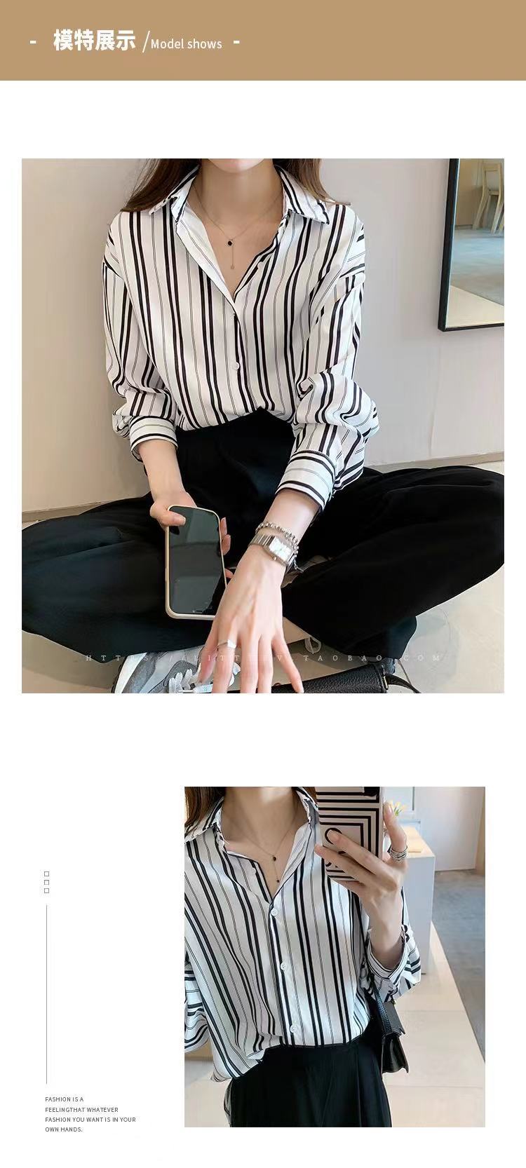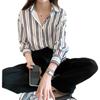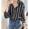 Camisa a rayas mujer estilo primavera y otoño diseño holgado nicho perezoso ligero maduro estilo Hong Kong camisa francesa de manga larga blanco negro