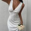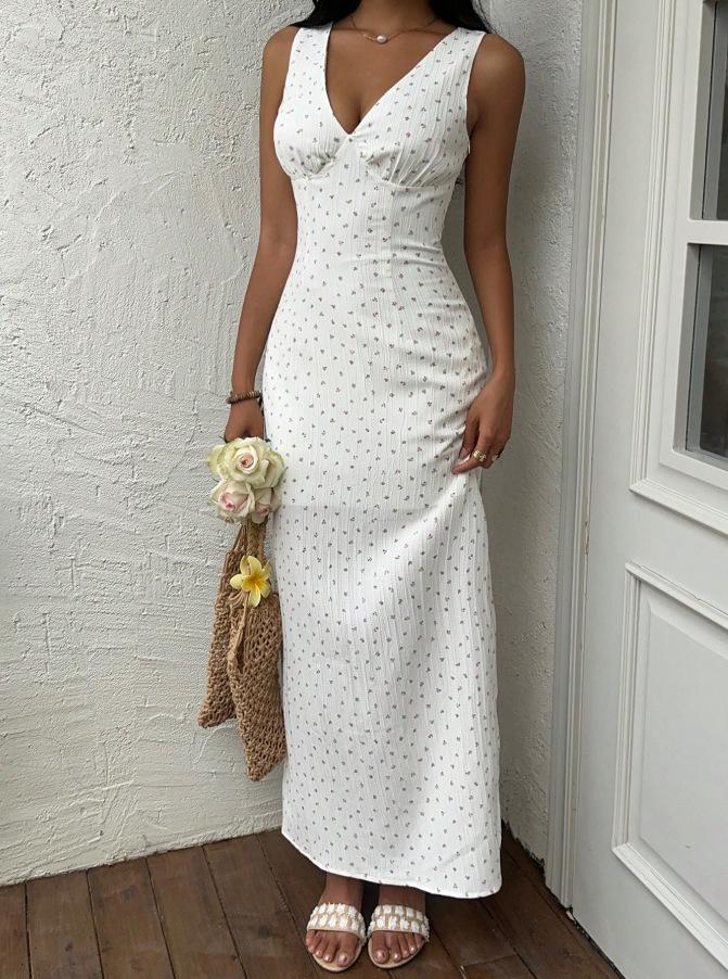 Vestido de Verano 2025 para Exportación Floral con Cuello en V Sexy con Tirantes para Mujer Francés Sexy sin Espalda Elegante Falda Ajustada a las Caderas