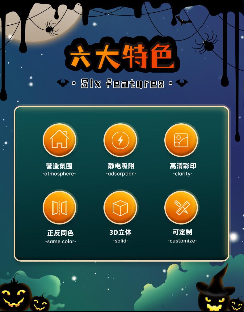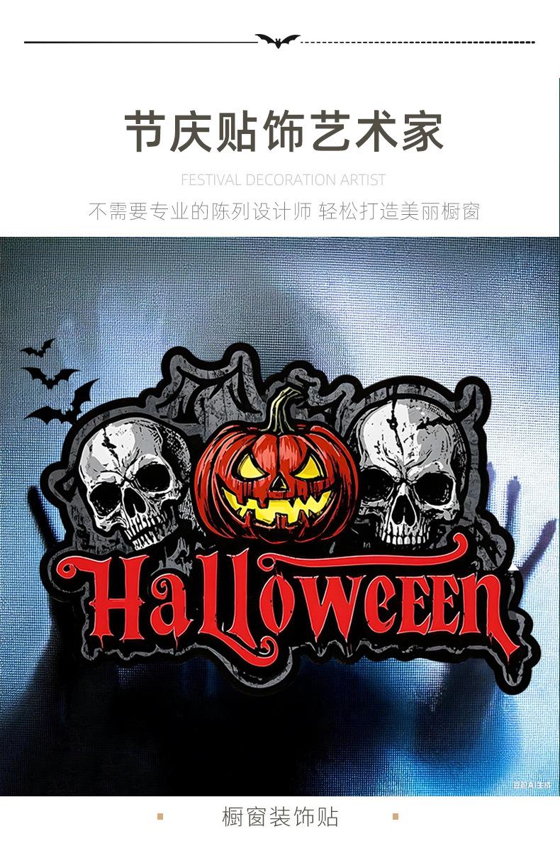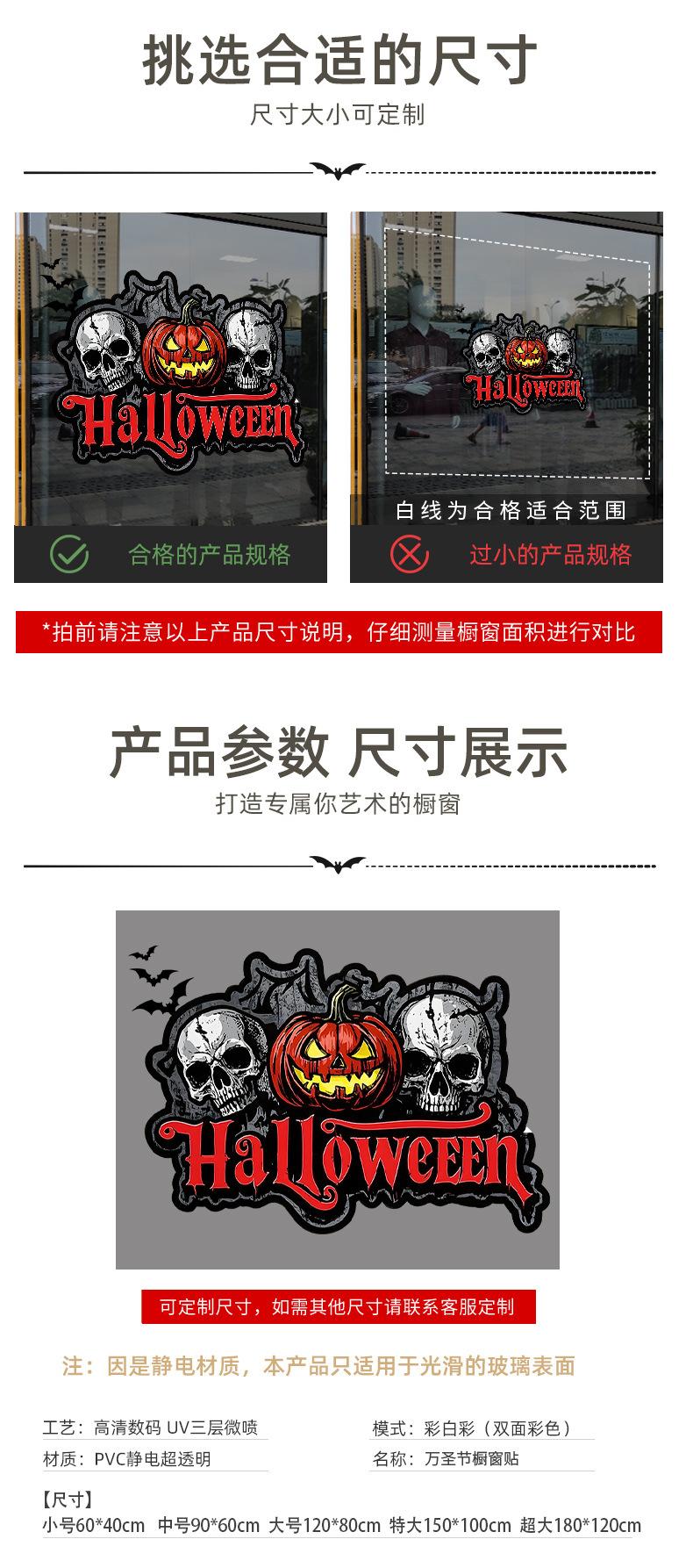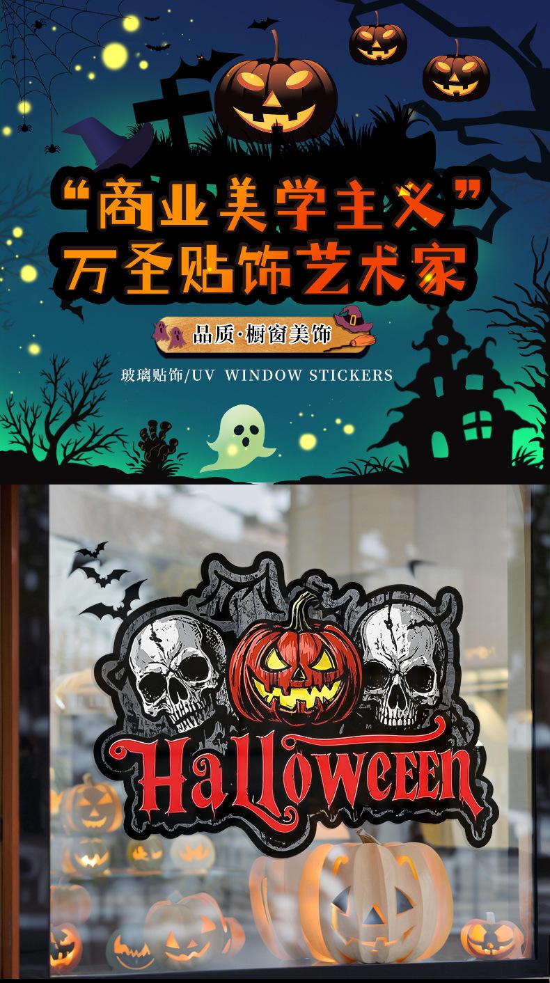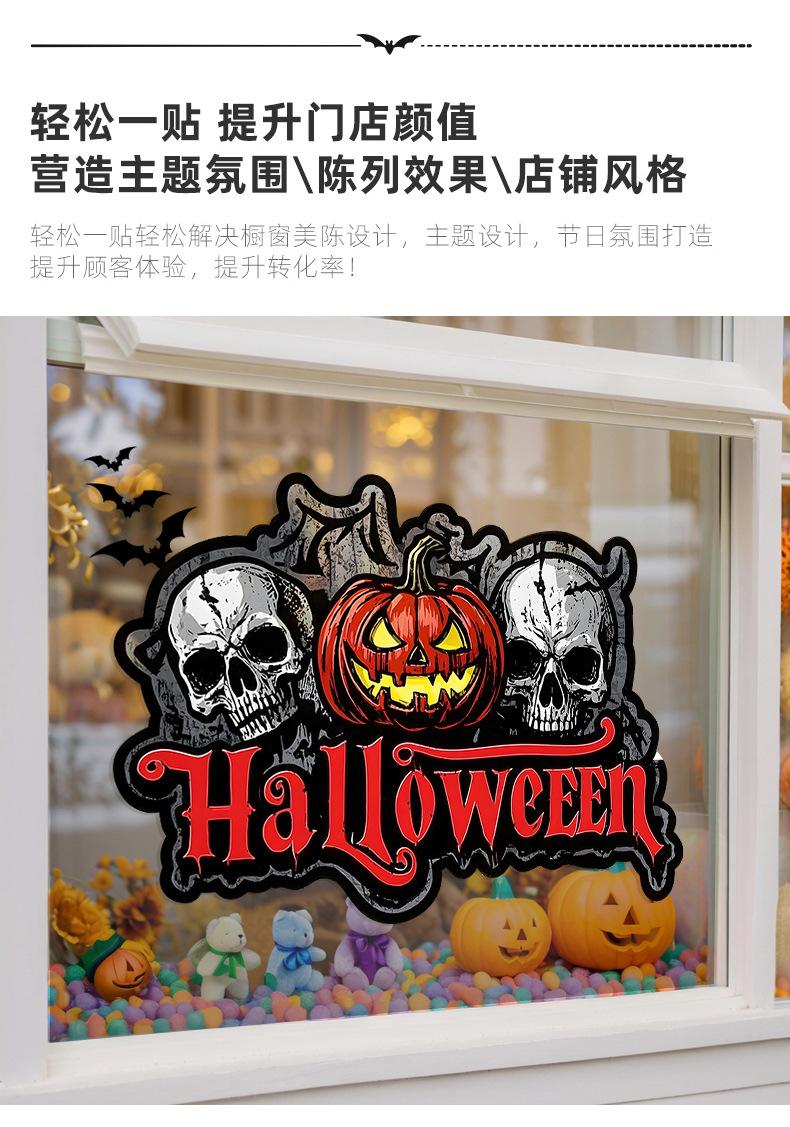 Adhesivo Electrostático para Vidrio de Halloween Transfronterizo Personalizado Calavera Negra Calabaza Ambiente Festivo Decoración de Ventana