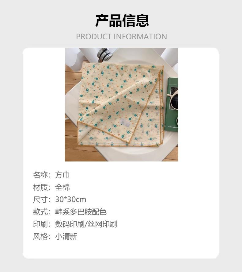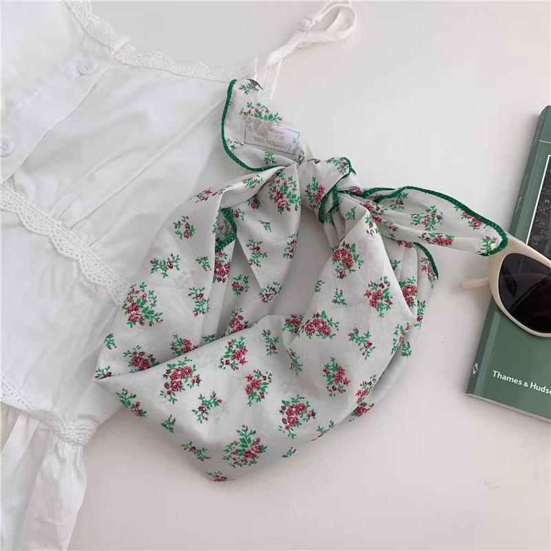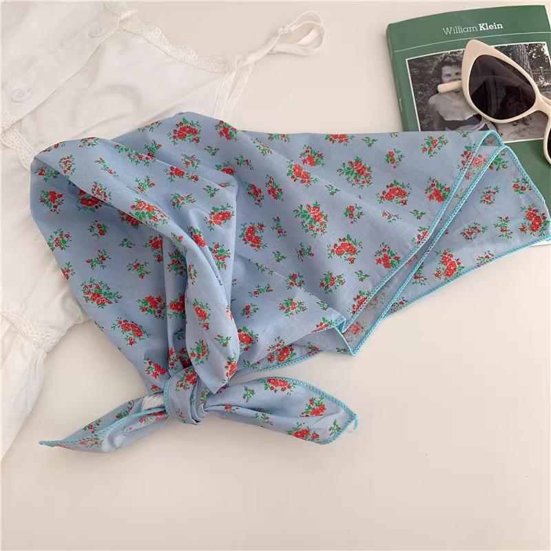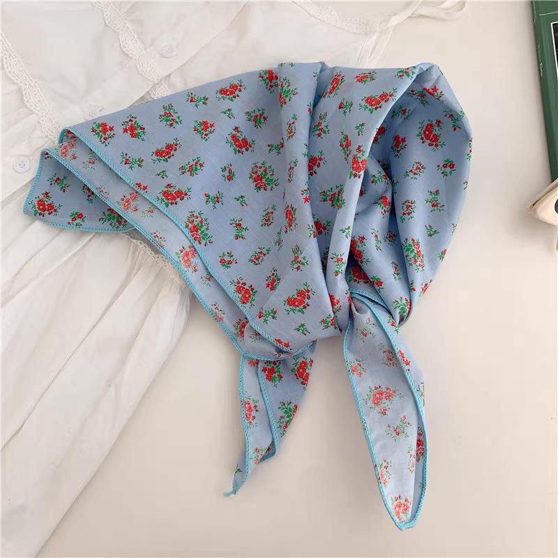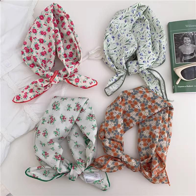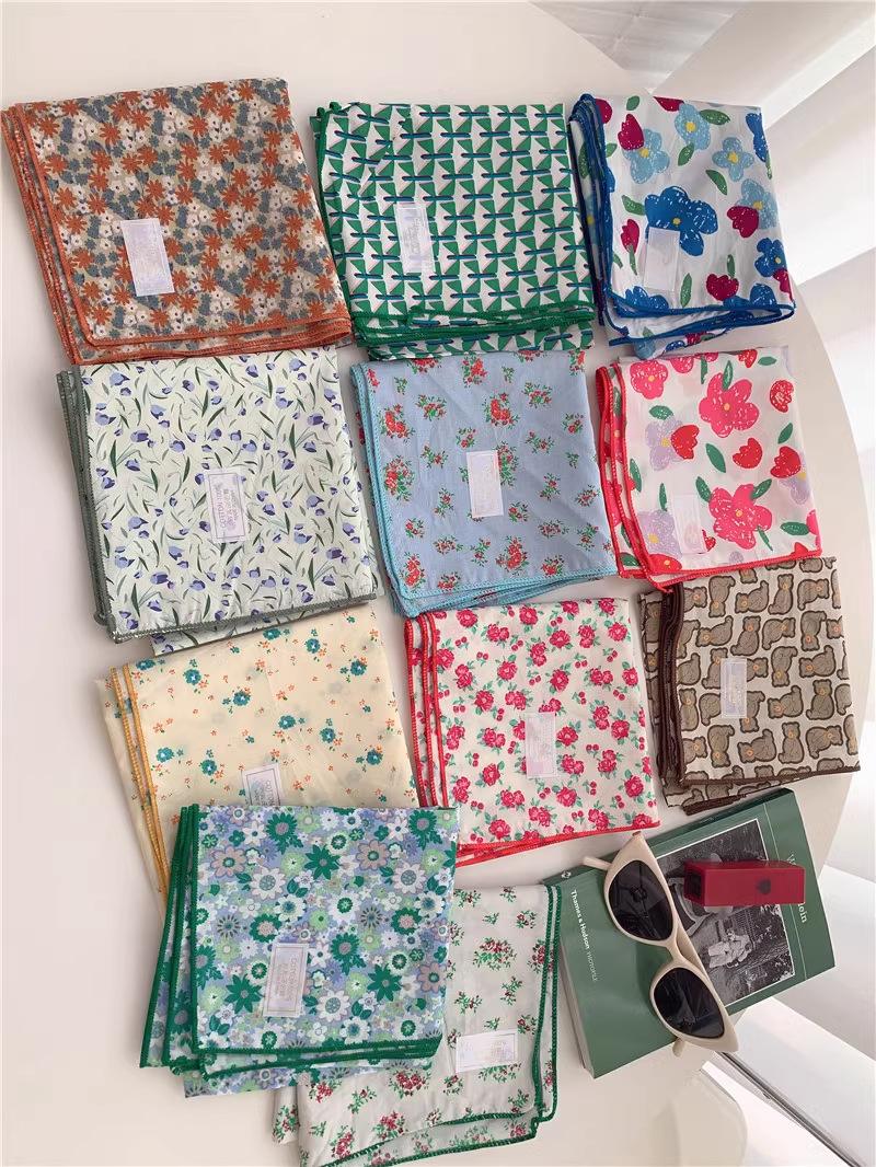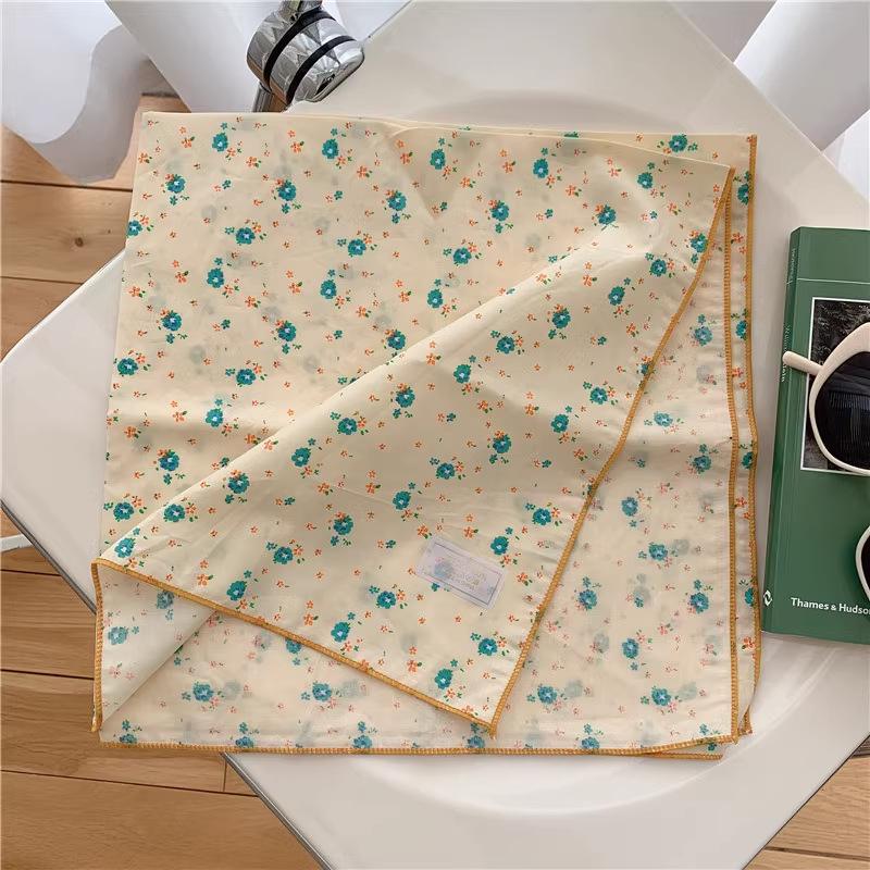 Tamaño Ajustable Bufanda Cuadrada Color Dopamina Mismo Estilo Celebridad de Internet Algodón Floral Estilo Coreano Viaje y Juego Bufanda Cuadrada