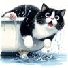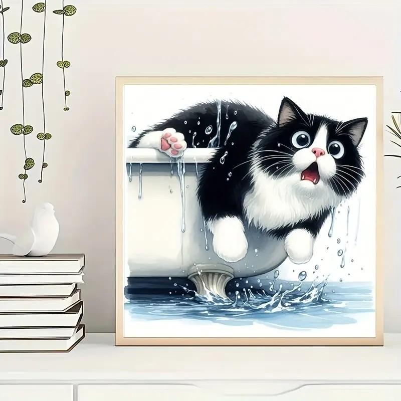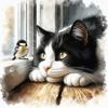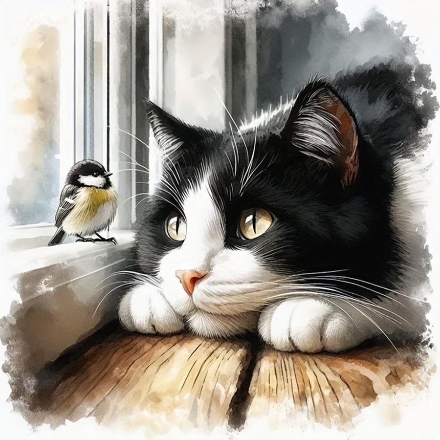 Set de Pintura de Diamantes 5D - Encantador Gato con Escena de Pájaro Diamante Redondo DIY Decoración del Hogar Regalo de Vacaciones