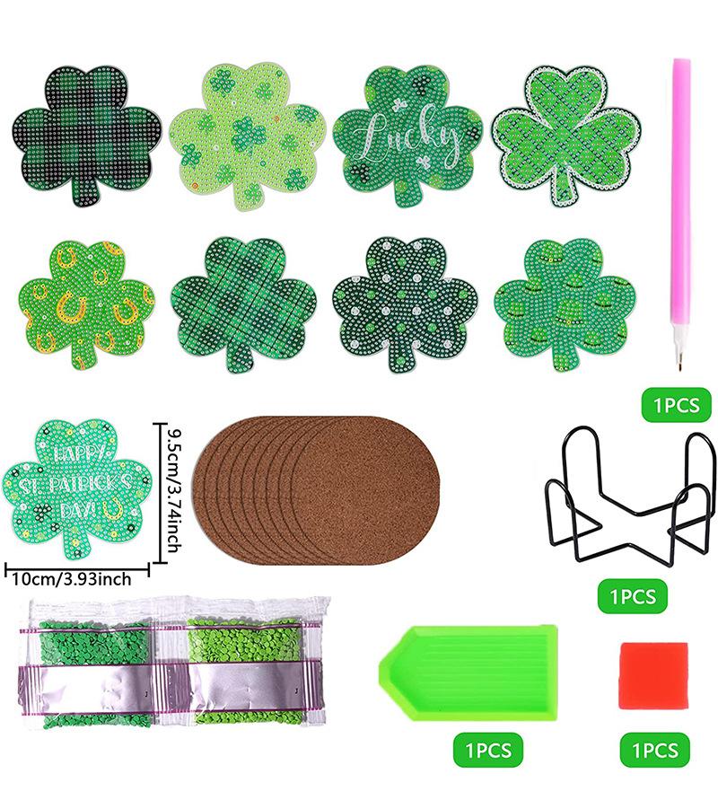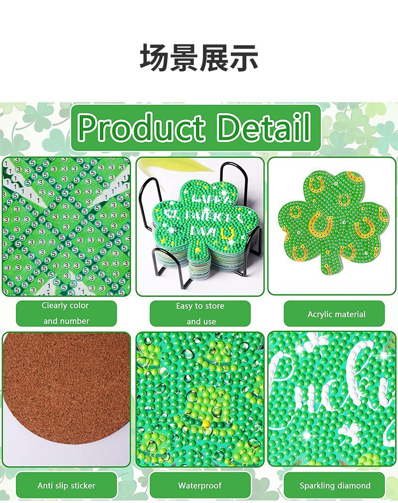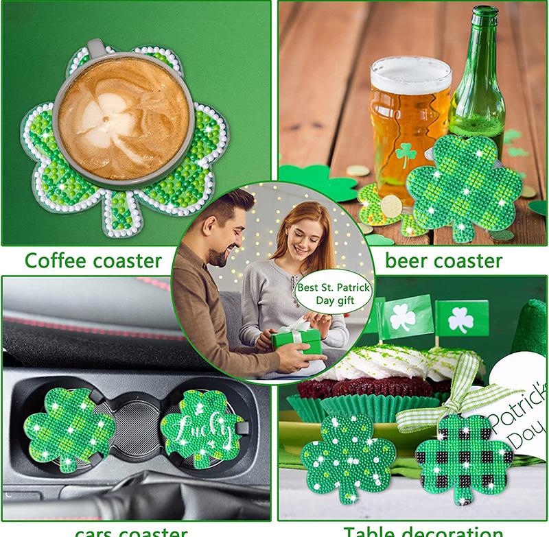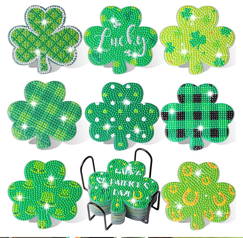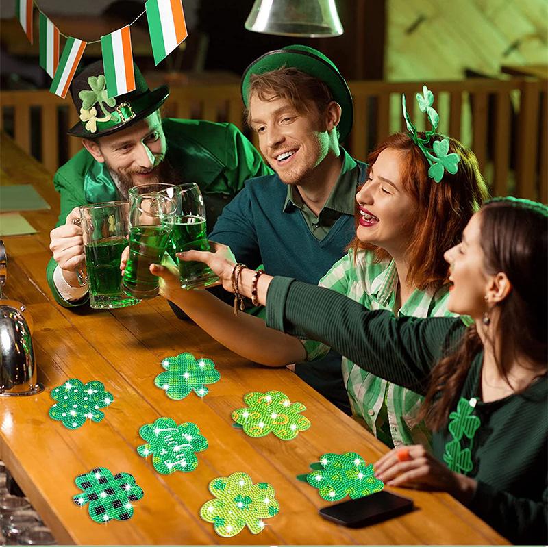 Posavasos de Pintura de Diamantes Transfronterizo 2025 Diamante Completo Festival Irlandés Tapete Aislante de Calor Mantel Individual para Mesa de Comedor Estante Autocontenido con Forma DIY