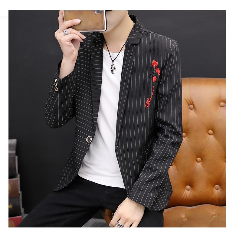 Traje Pequeño Distintivo para Hombre Traje Slim-fit Estilo Coreano para Hombre Ropa de Noche a la Moda Chaqueta Delgada Atractiva Chaqueta Casual