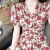 2025 Nuevo Verano Super Hermoso Temperamento Vestido Largo Alta Gama Socialité Rosa Francés Estampado Floral Irregular