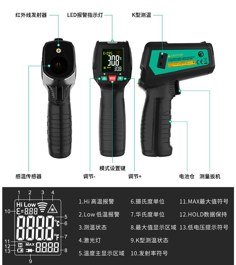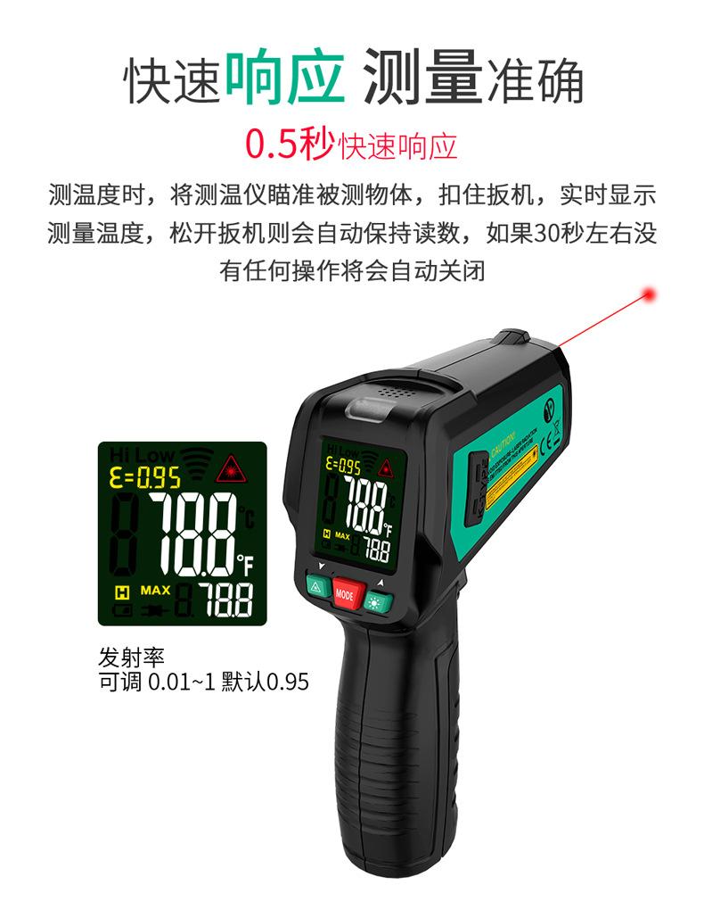 Termómetro Infrarrojo Fuyi Industrial de Alta Precisión de Mano Pistola de Temperatura Cocina Alta Temperatura Temperatura del Aceite Termómetro Infrarrojo