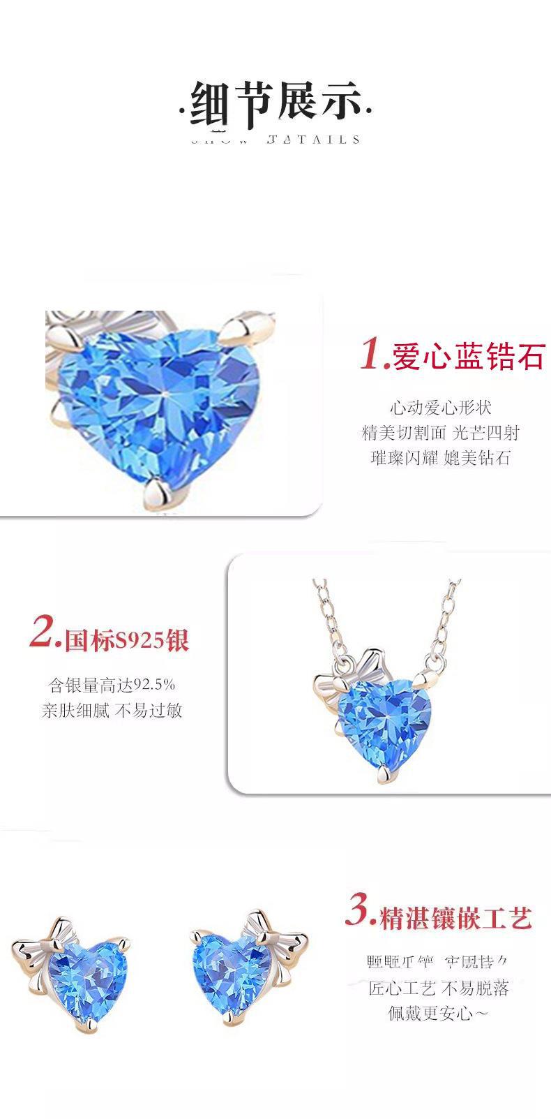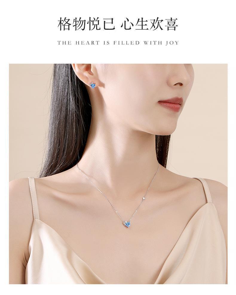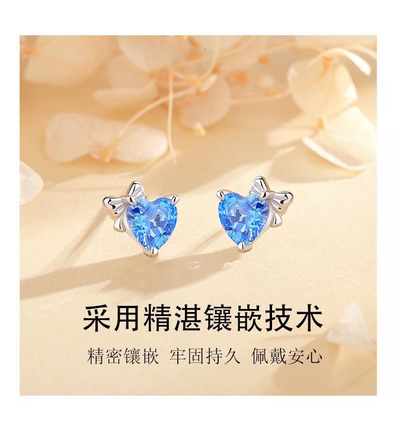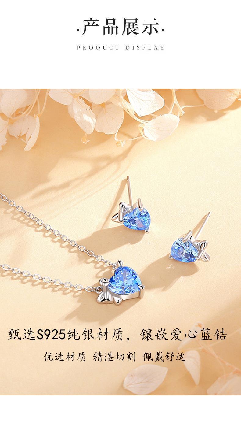 Ear studs (with glue earplugs), Heart bow blue diamond necklace