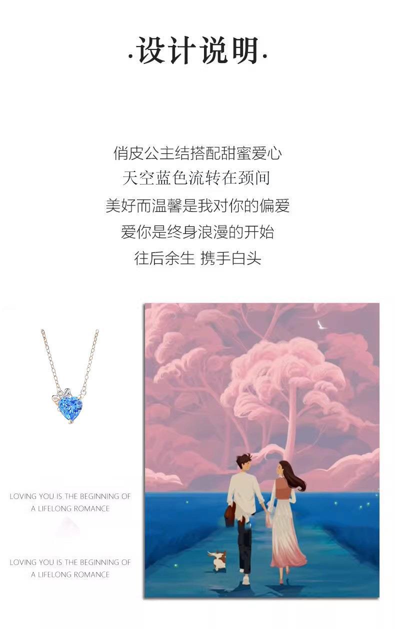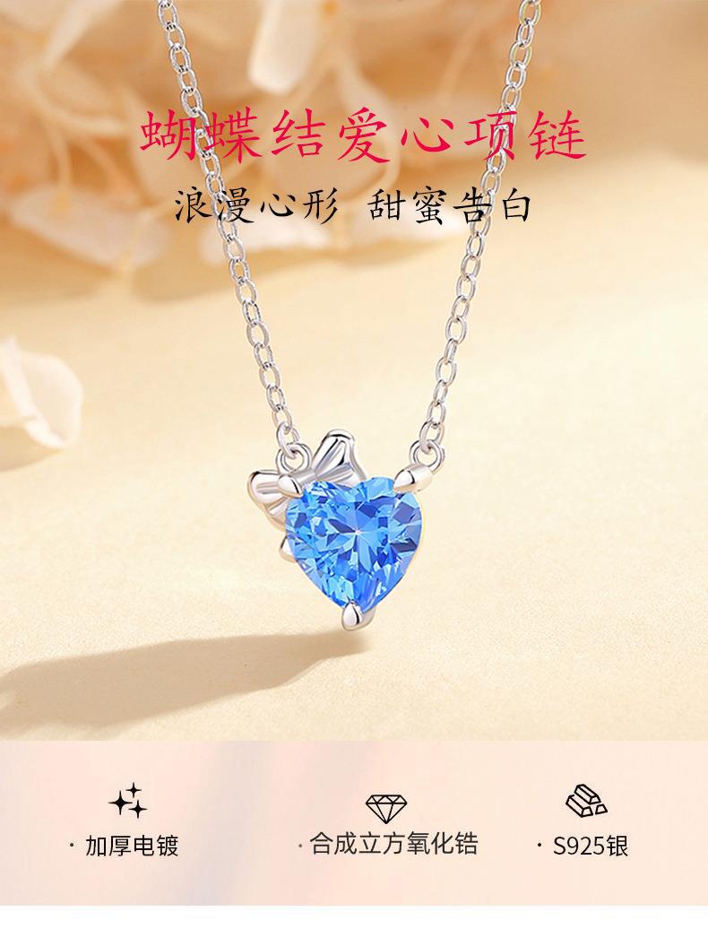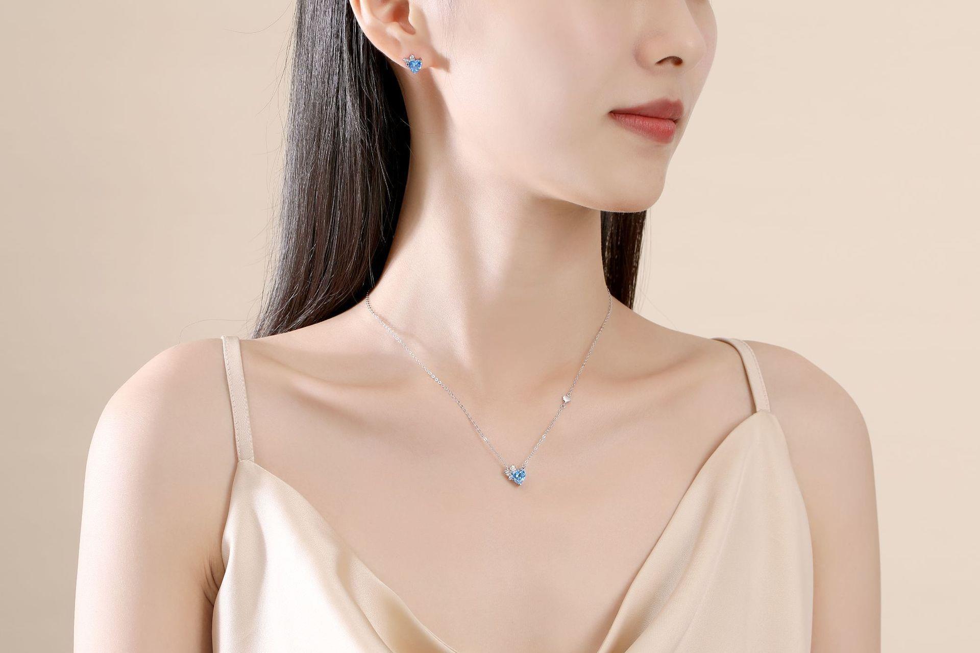 Ear studs (with glue earplugs), Heart bow blue diamond necklace