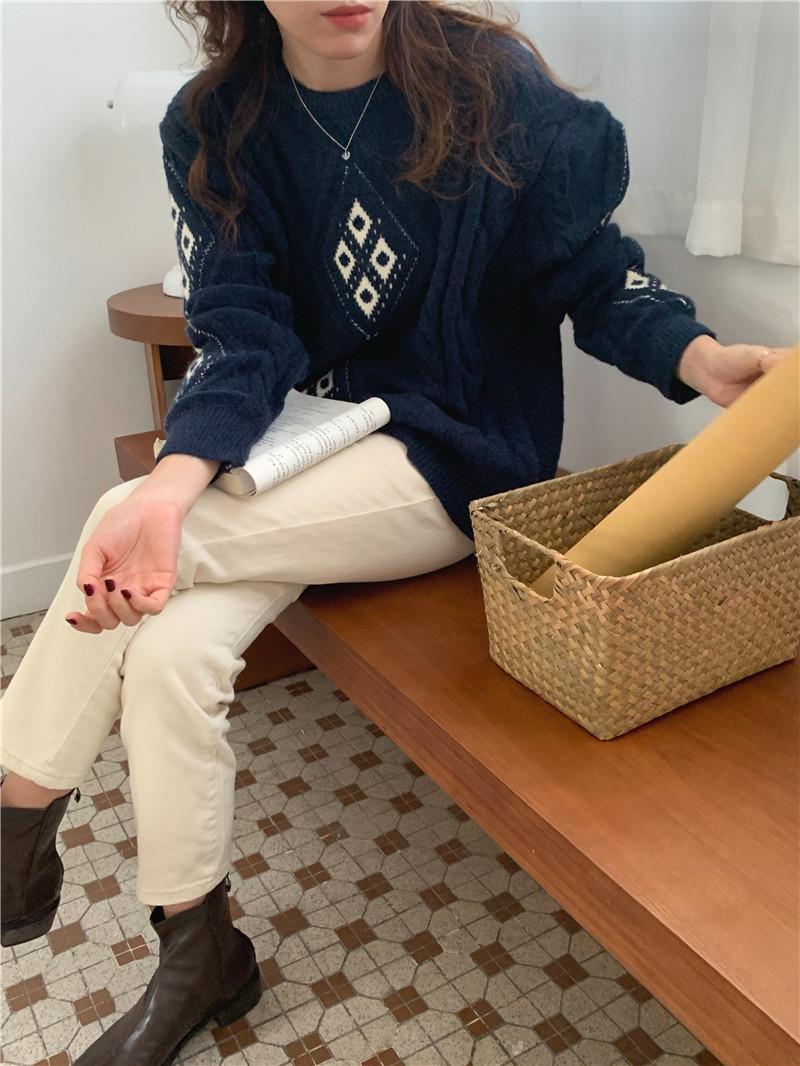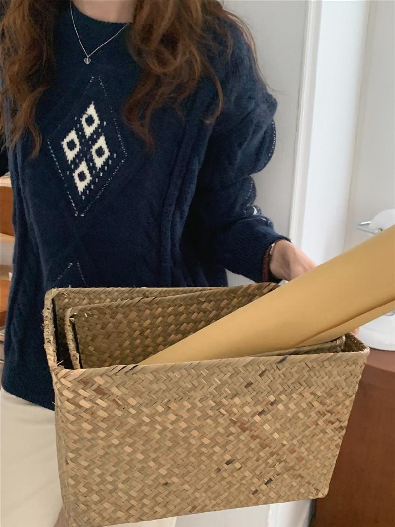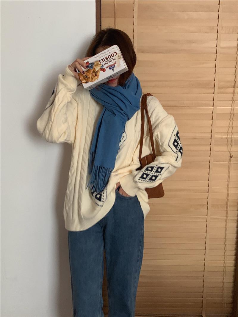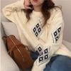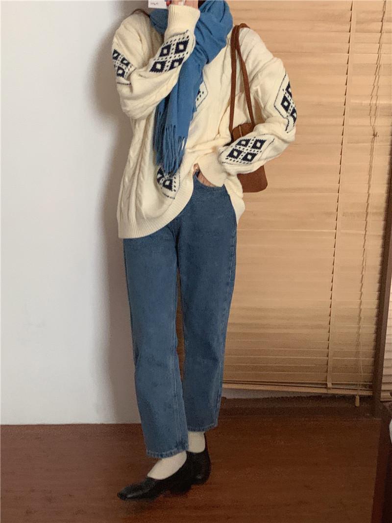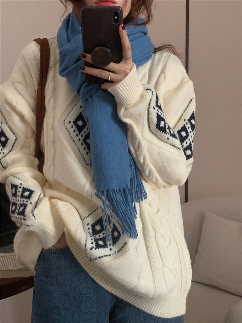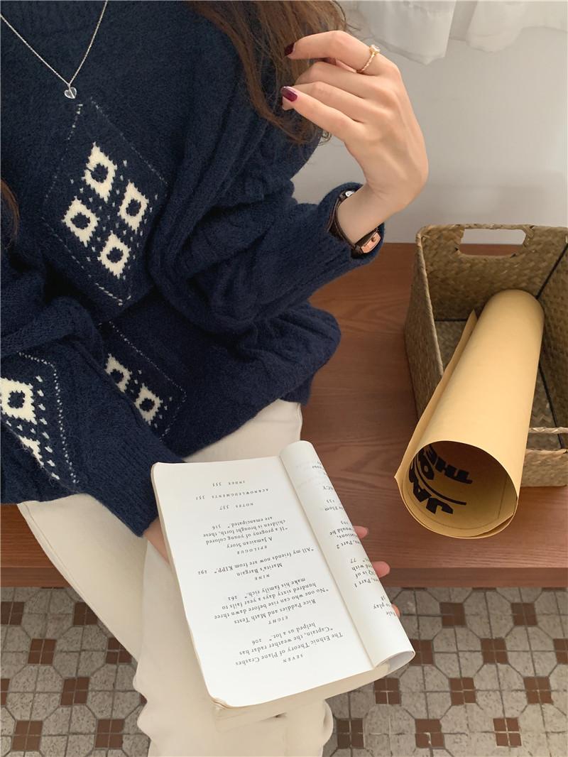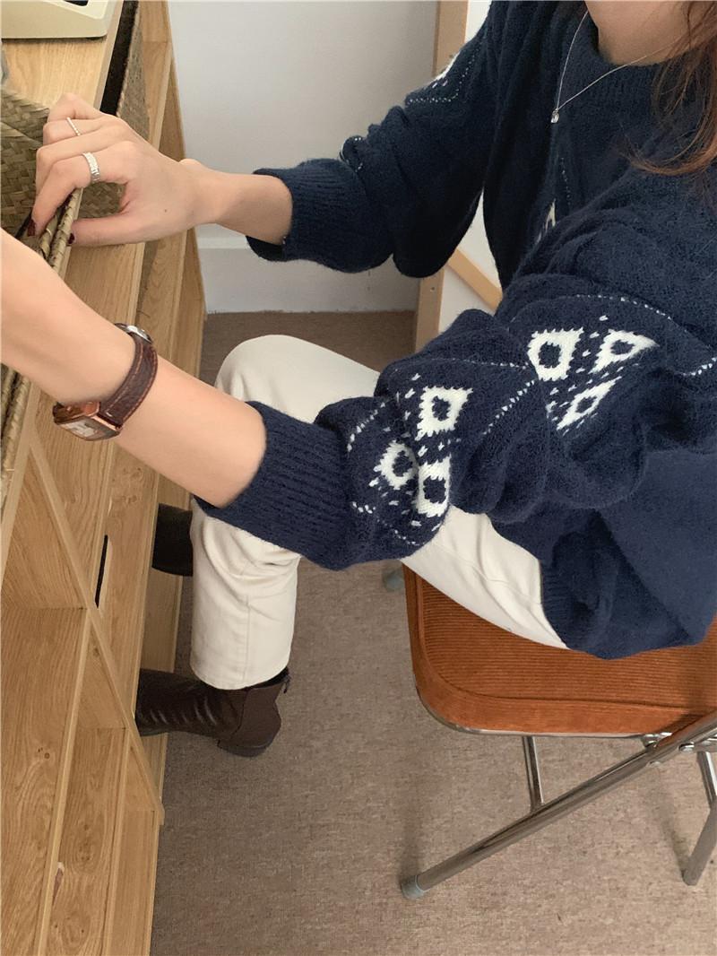 Suéter Pulóver Rómbico Estilo Coreano para Mujer Otoño e Invierno Suave Ceroso Holgado Adelgazante Cuello Redondo Base Exterior Top de Punto