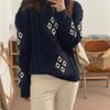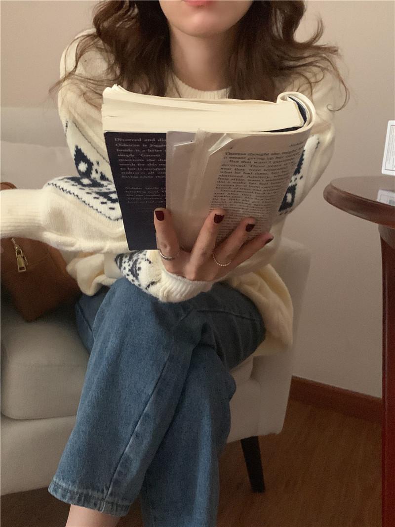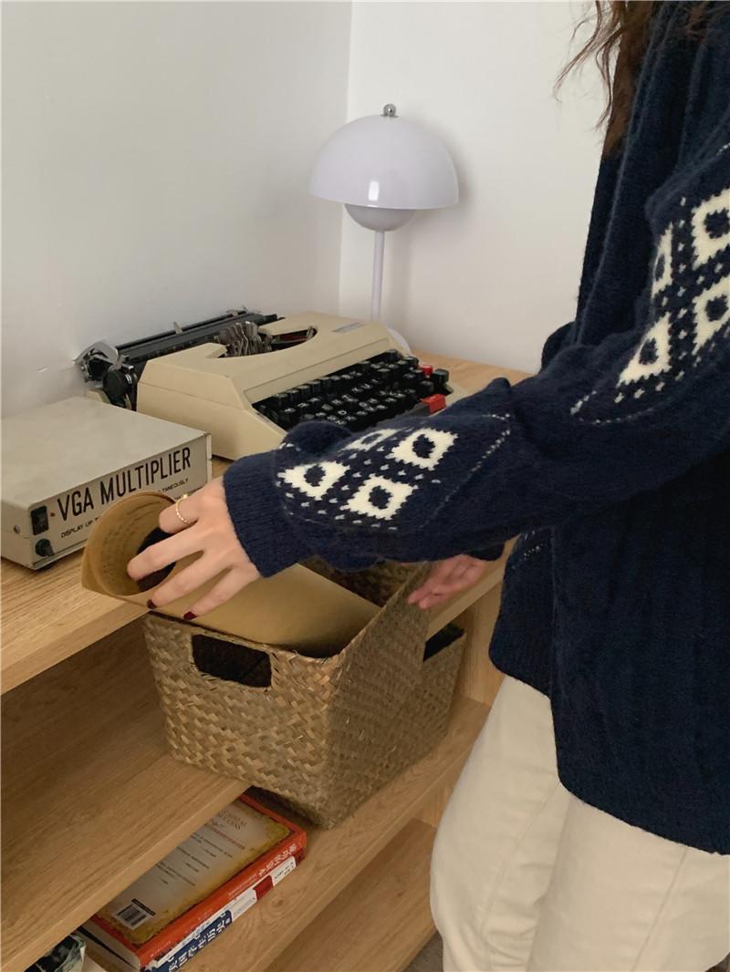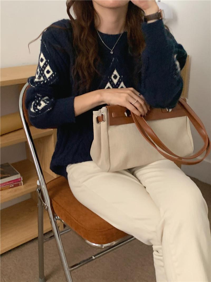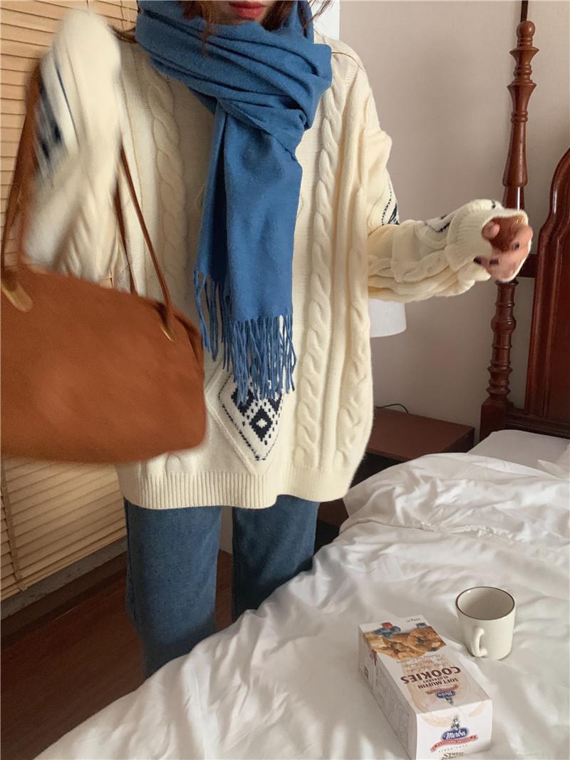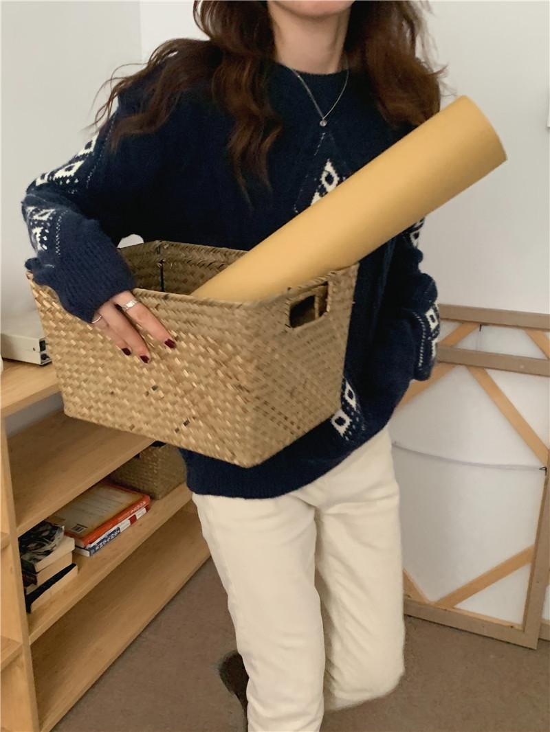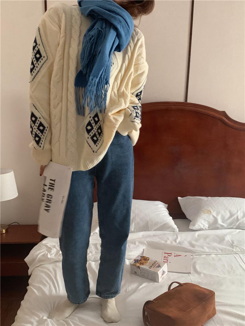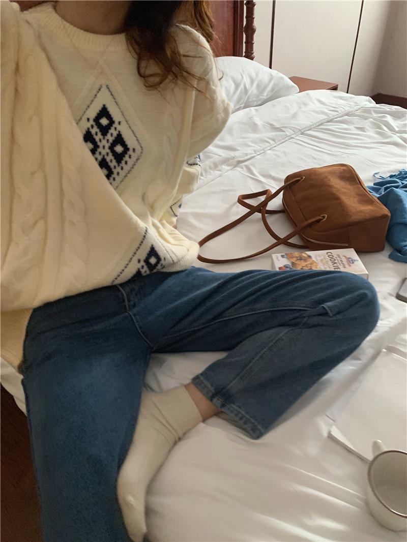 Suéter Pulóver Rómbico Estilo Coreano para Mujer Otoño e Invierno Suave Ceroso Holgado Adelgazante Cuello Redondo Base Exterior Top de Punto