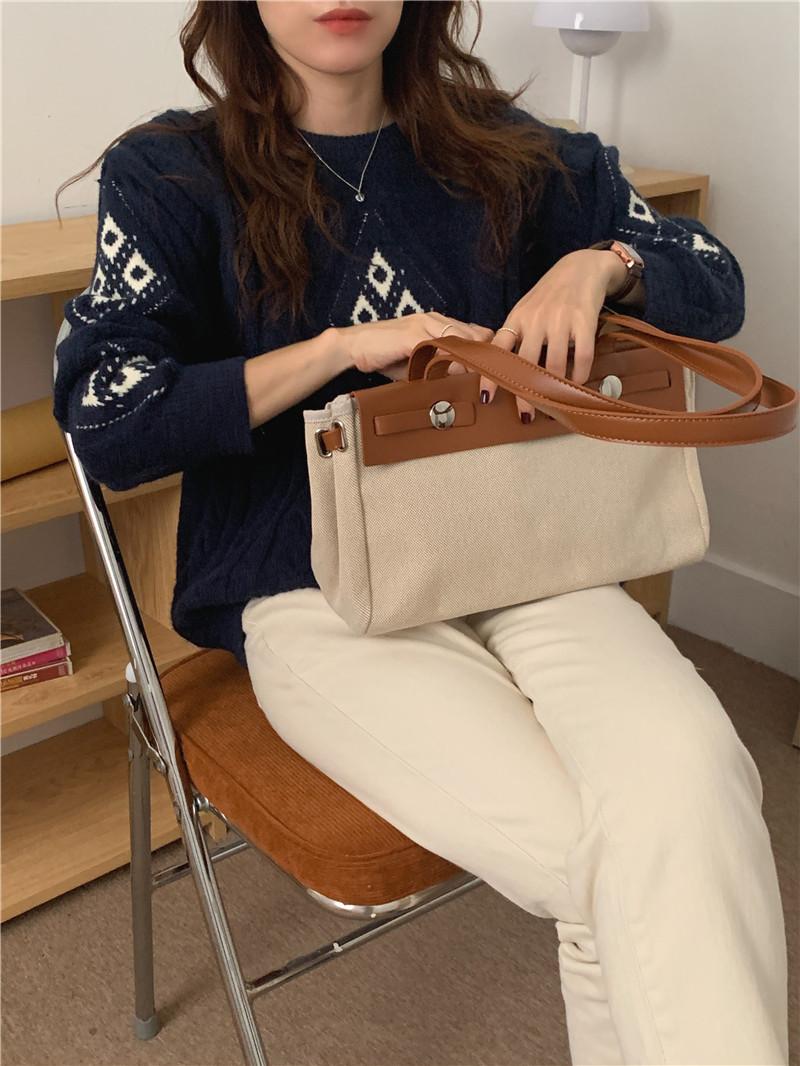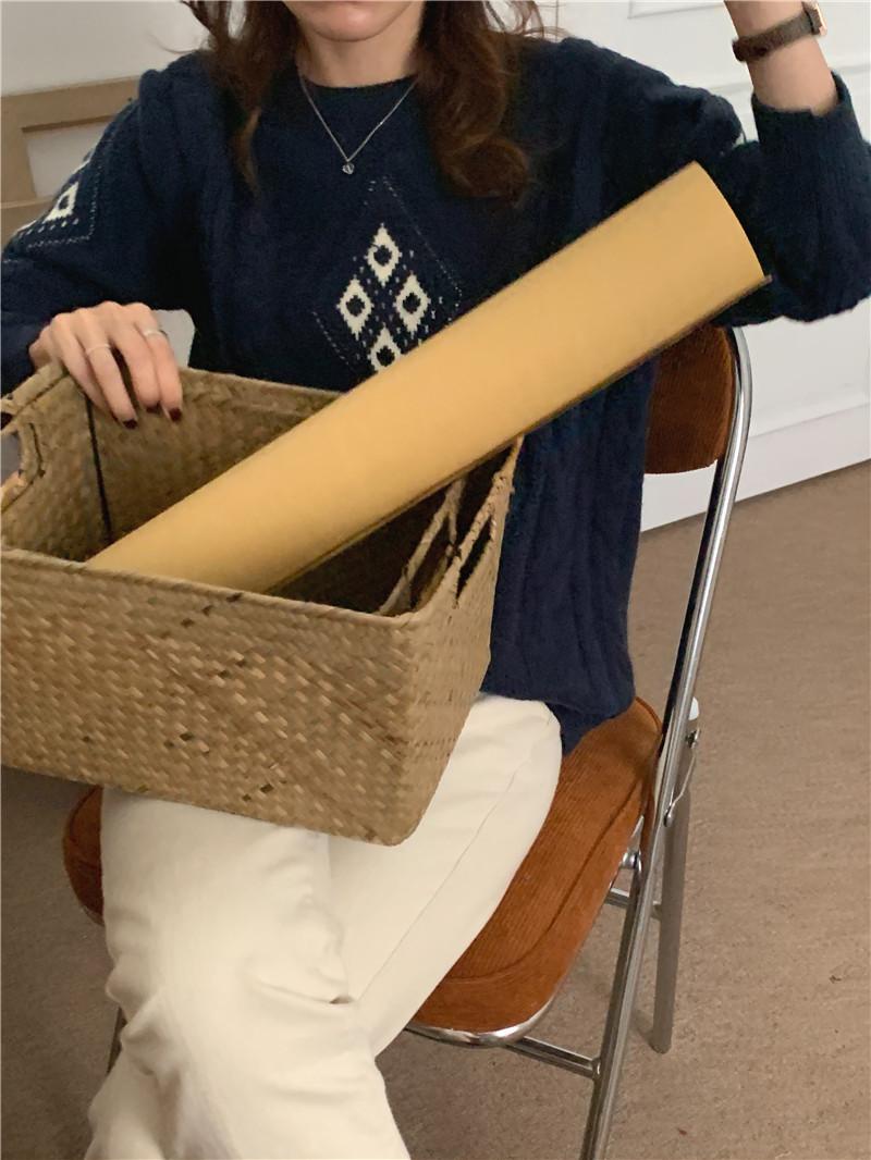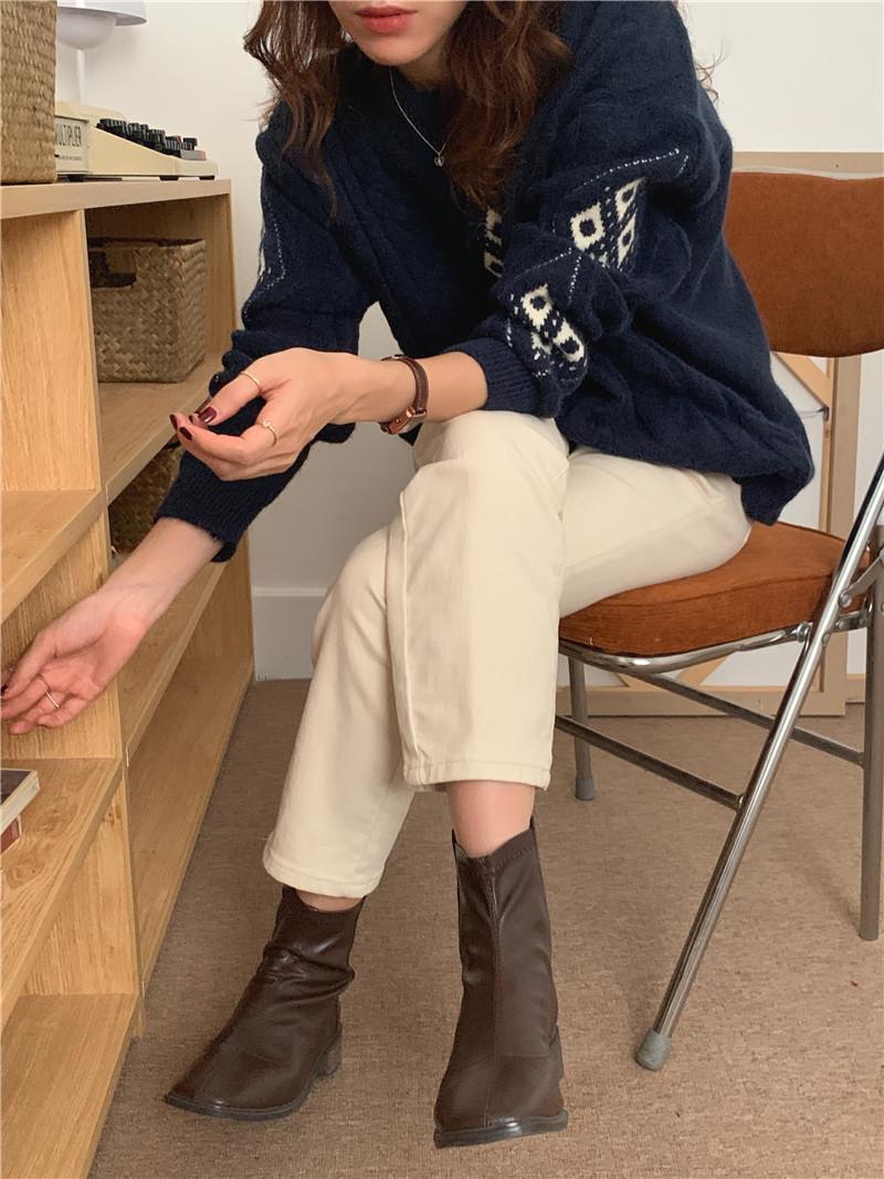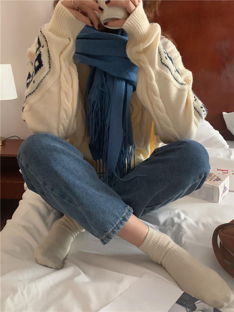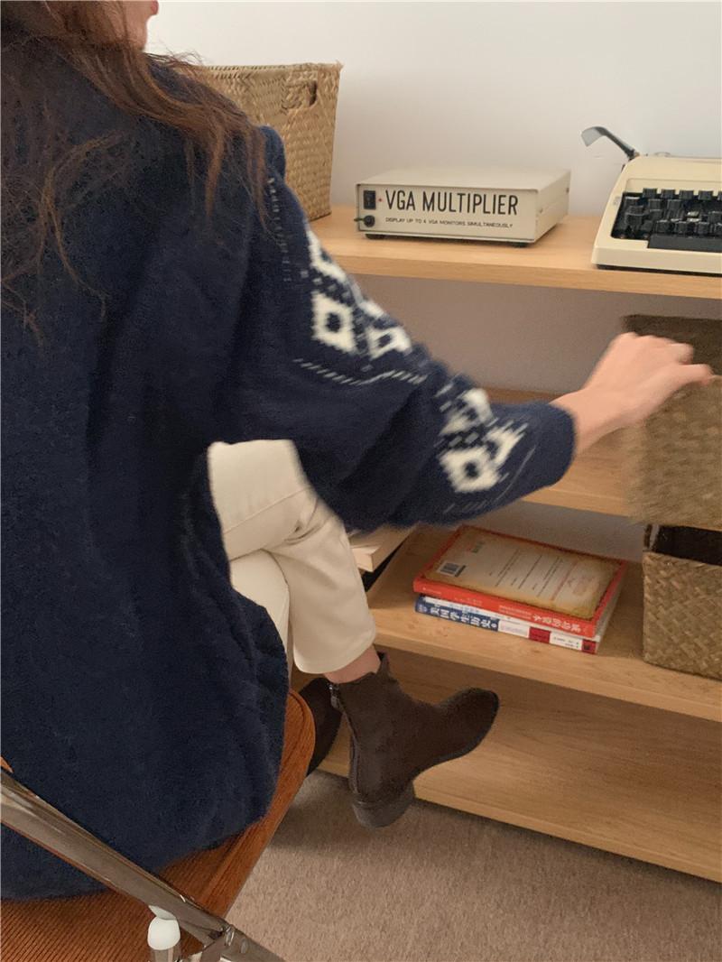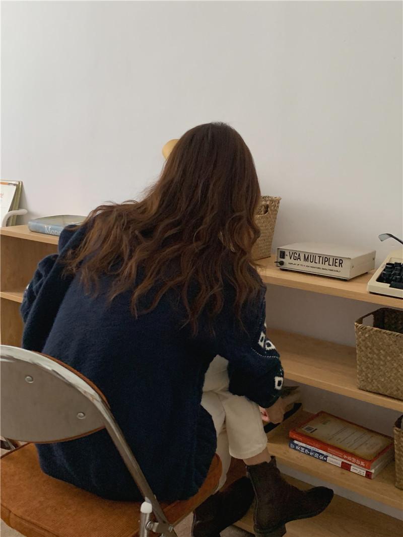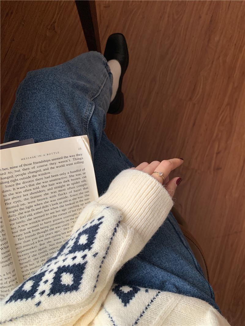 Suéter Pulóver Rómbico Estilo Coreano para Mujer Otoño e Invierno Suave Ceroso Holgado Adelgazante Cuello Redondo Base Exterior Top de Punto