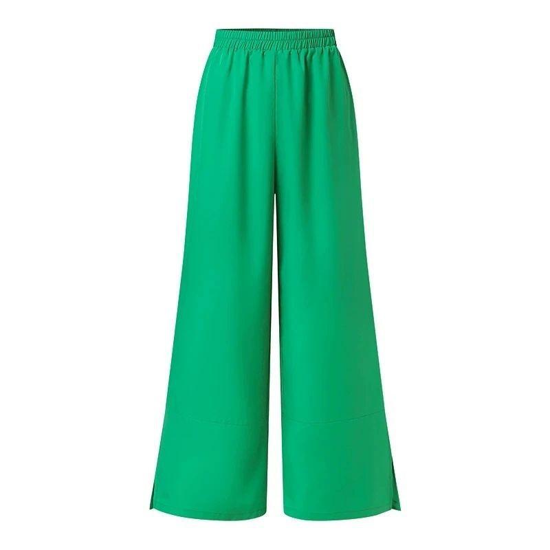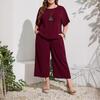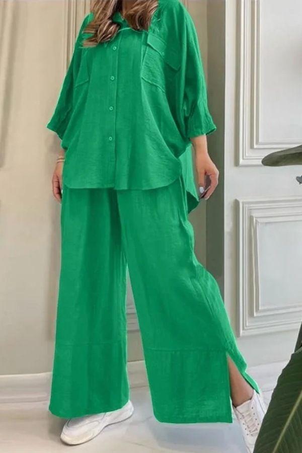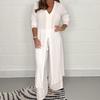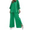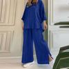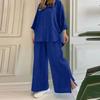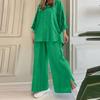 Conjunto de dos piezas de verano para mujer transfronterizo europeo y americano, camisa de manga tres cuartos, pantalones de color sólido, pantalones de pierna ancha, traje para mujer
