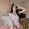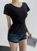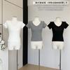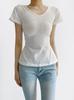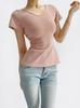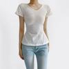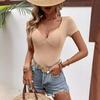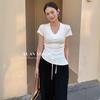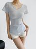 Playera de Moda y Estilo de Cuello en V y Manga Corta para Mujer con Cintura Ajustada, Moda Verano 2025 Top Básico Versátil