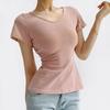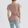 Camiseta de manga corta con cuello en V y lazo en la cintura Ropa de brocado personalizada