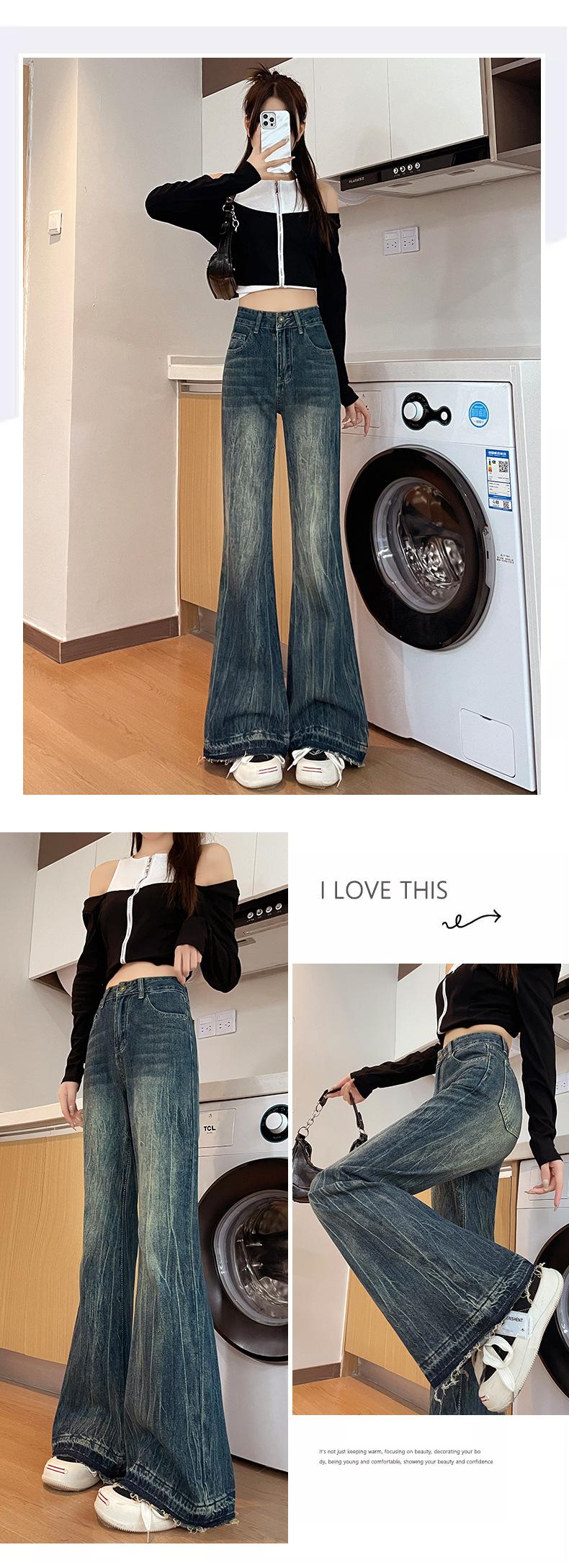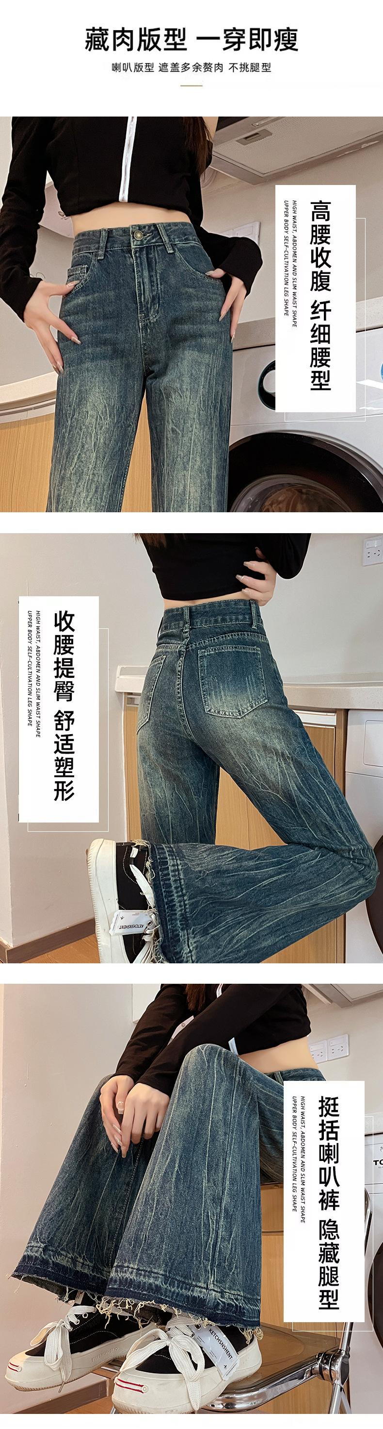 Jeans Acampanados Vintage para Mujer, Primavera y Otoño 2023 Nuevo Adelgazante de Cintura Alta Petite Holgado Pantalones Campana para Mujer