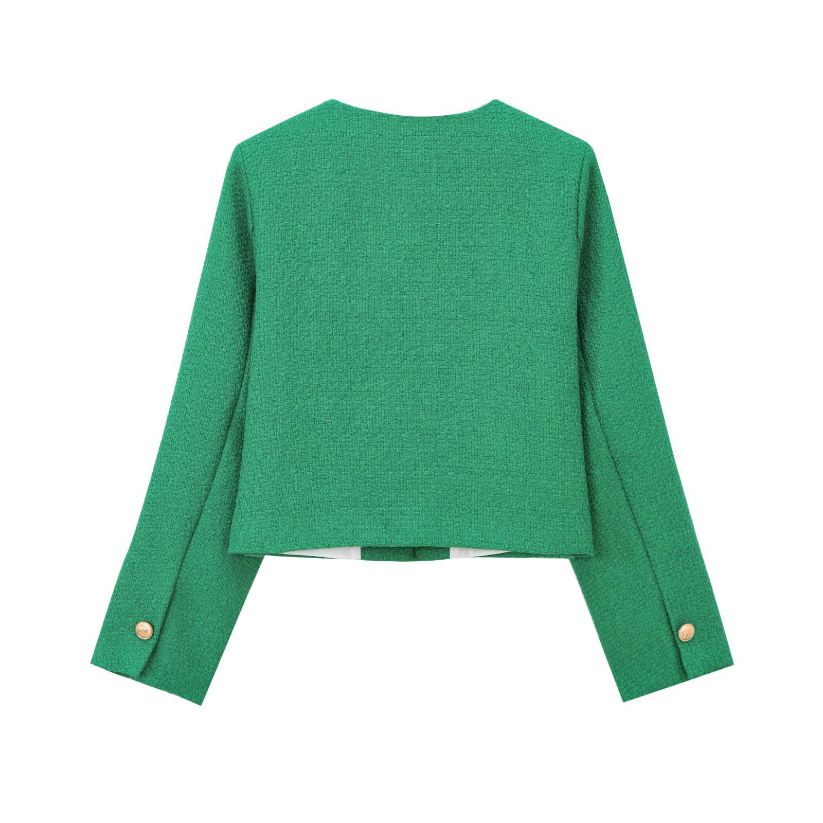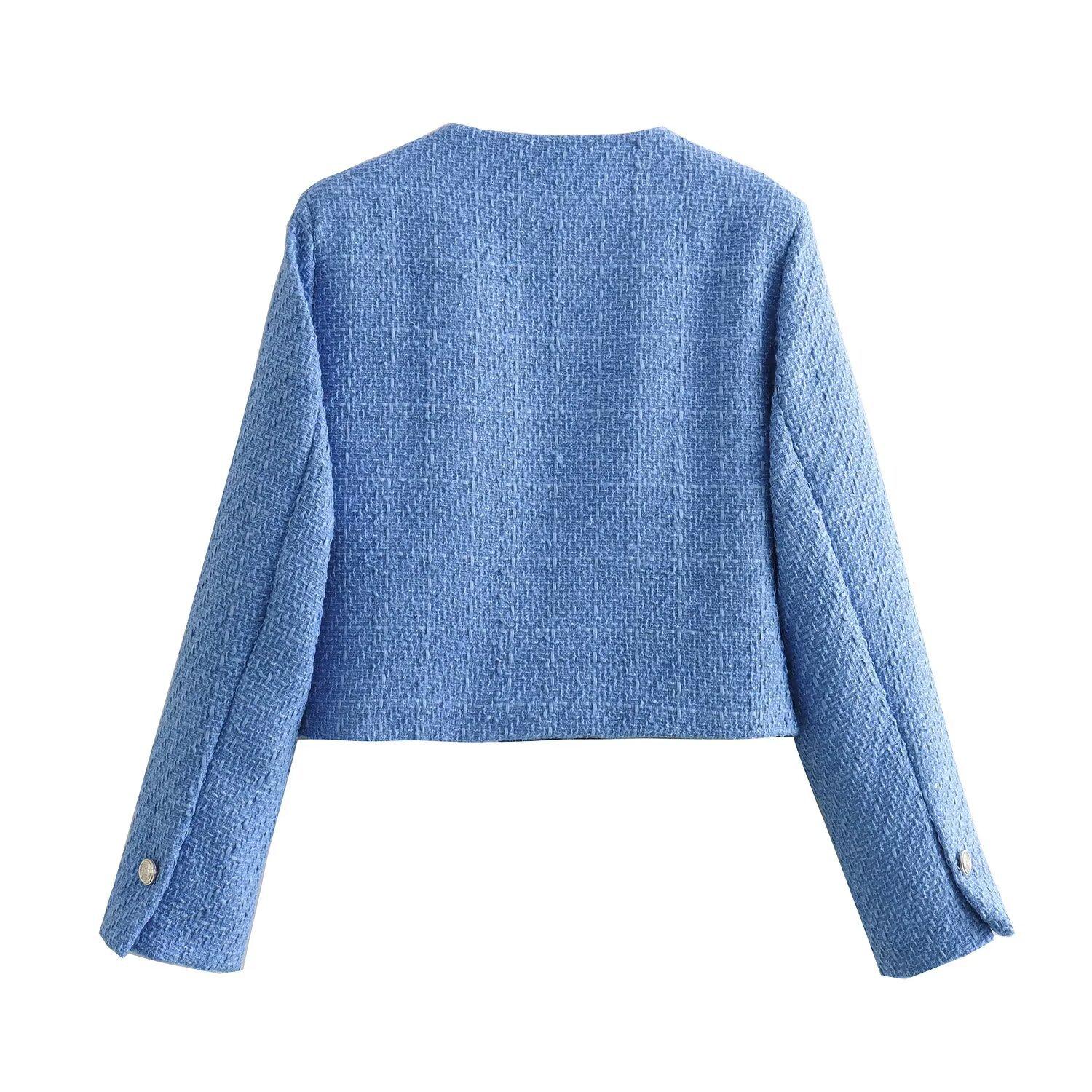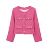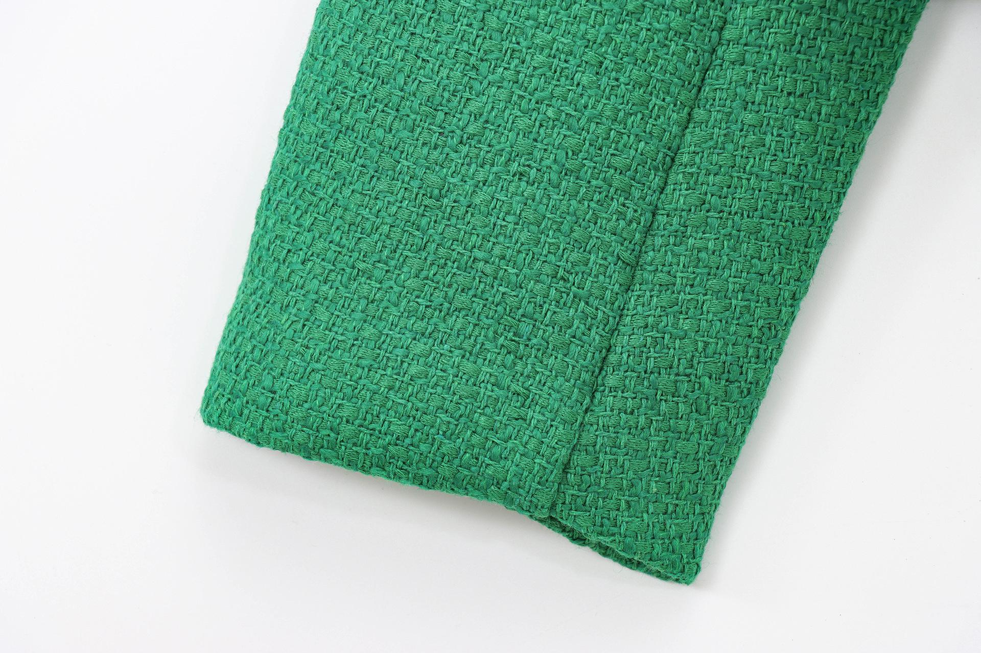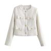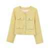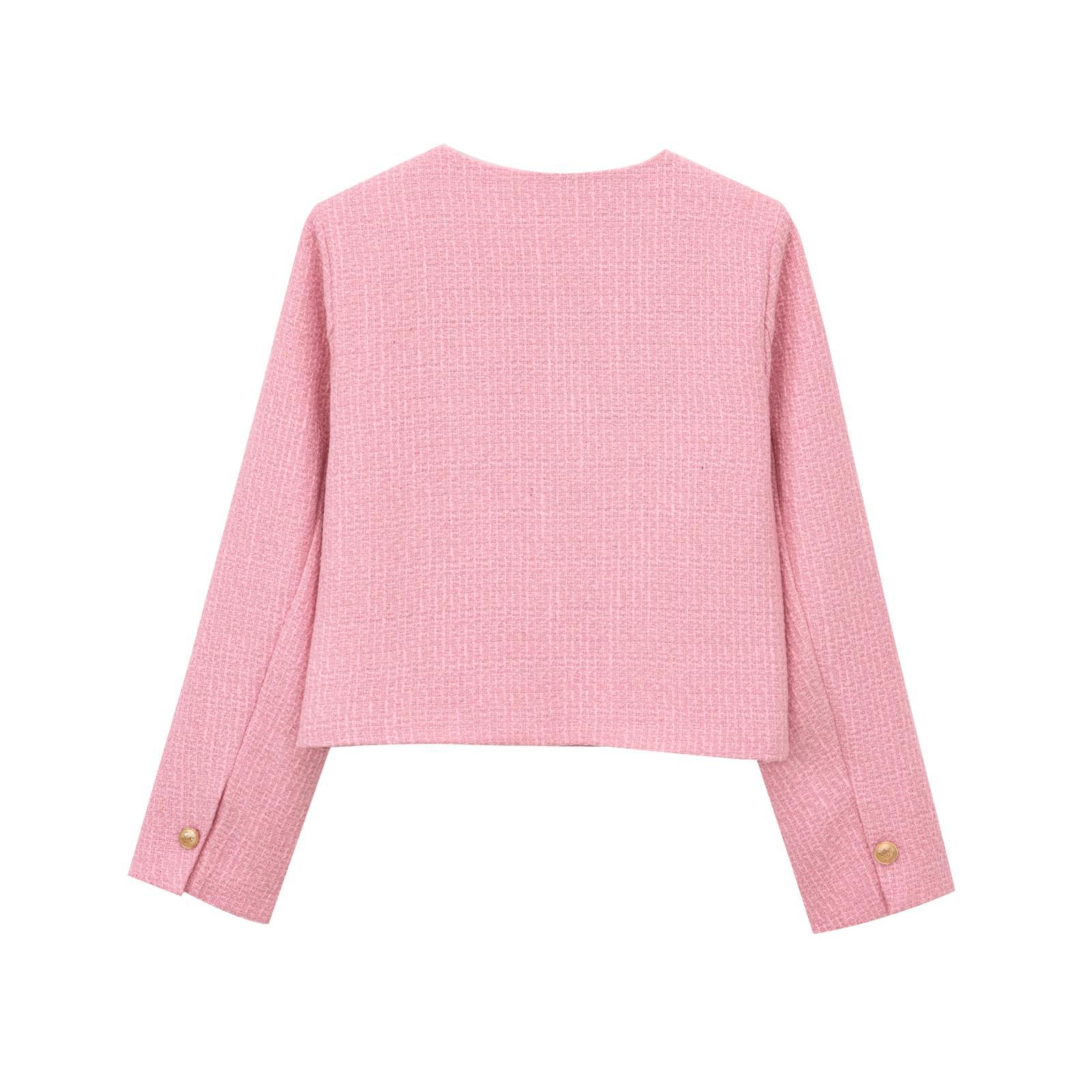 2025 Estilo Europeo y Americano Verano para Mujer Chaqueta Texturizada con Hombreras Cuello Redondo Manga Larga Pequeña Fragancia 2399 Rosa Amarillo Azul Blanco y Negro Verde