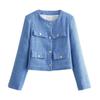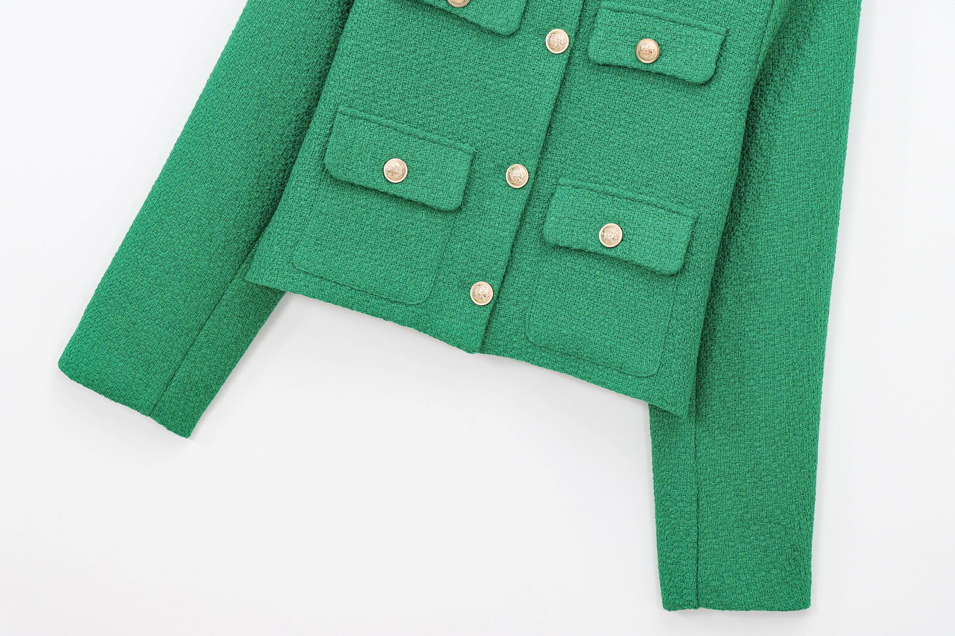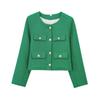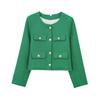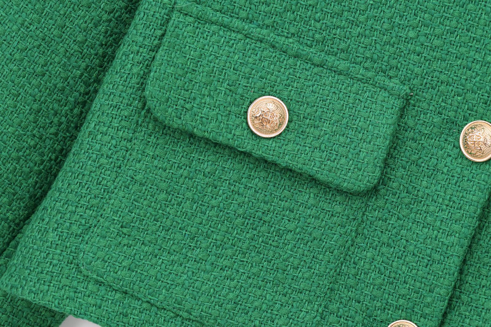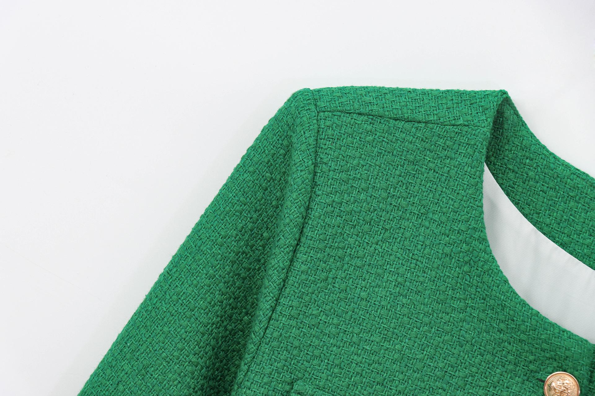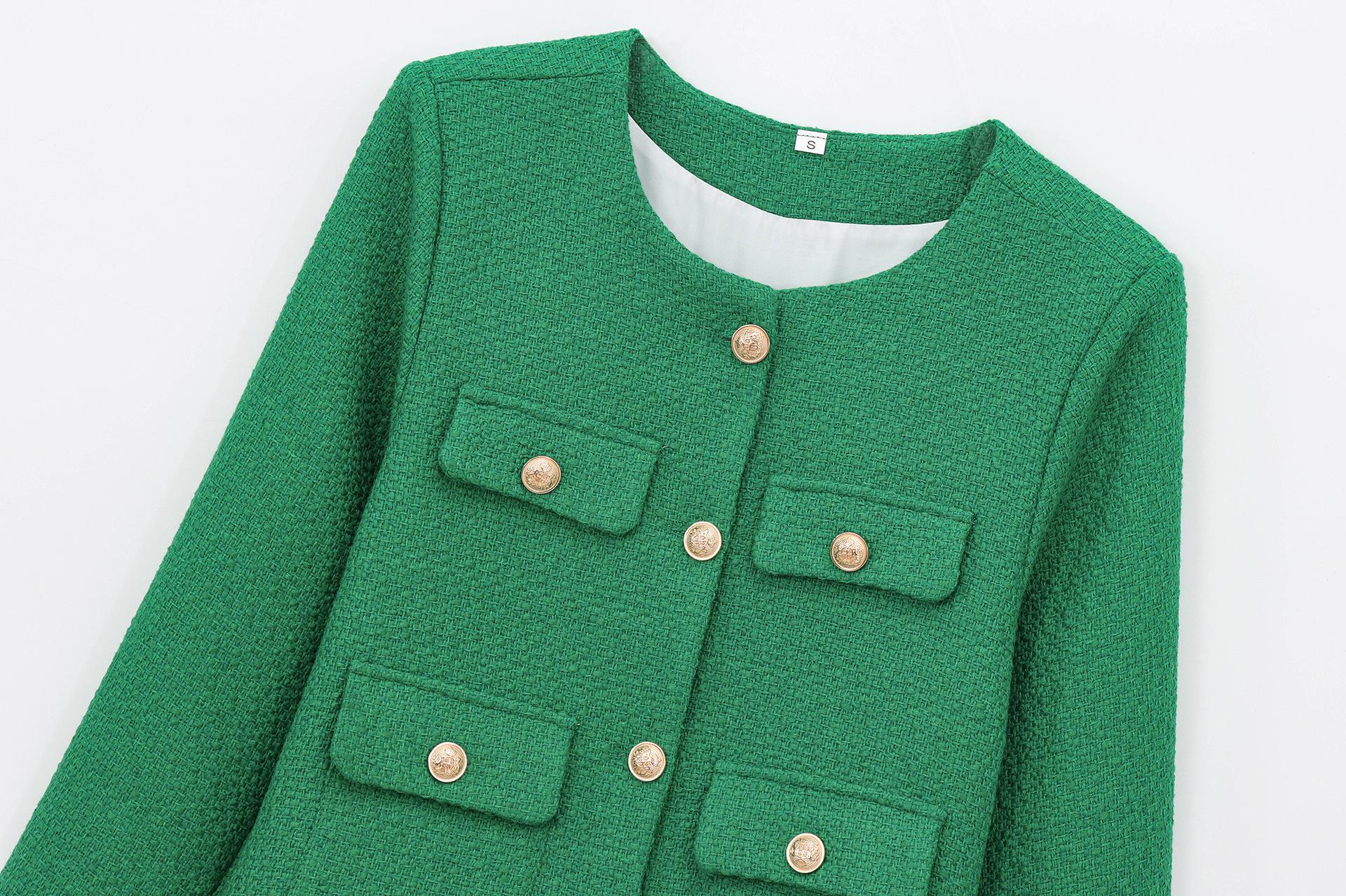 2025 Estilo Europeo y Americano Verano para Mujer Chaqueta Texturizada con Hombreras Cuello Redondo Manga Larga Pequeña Fragancia 2399 Rosa Amarillo Azul Blanco y Negro Verde