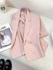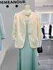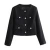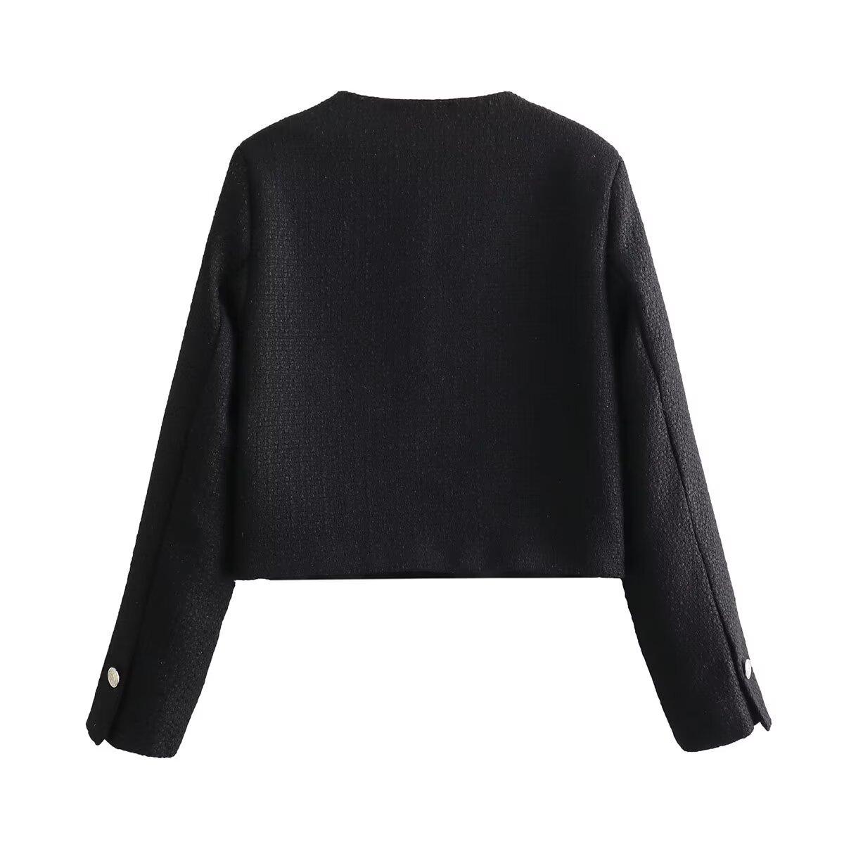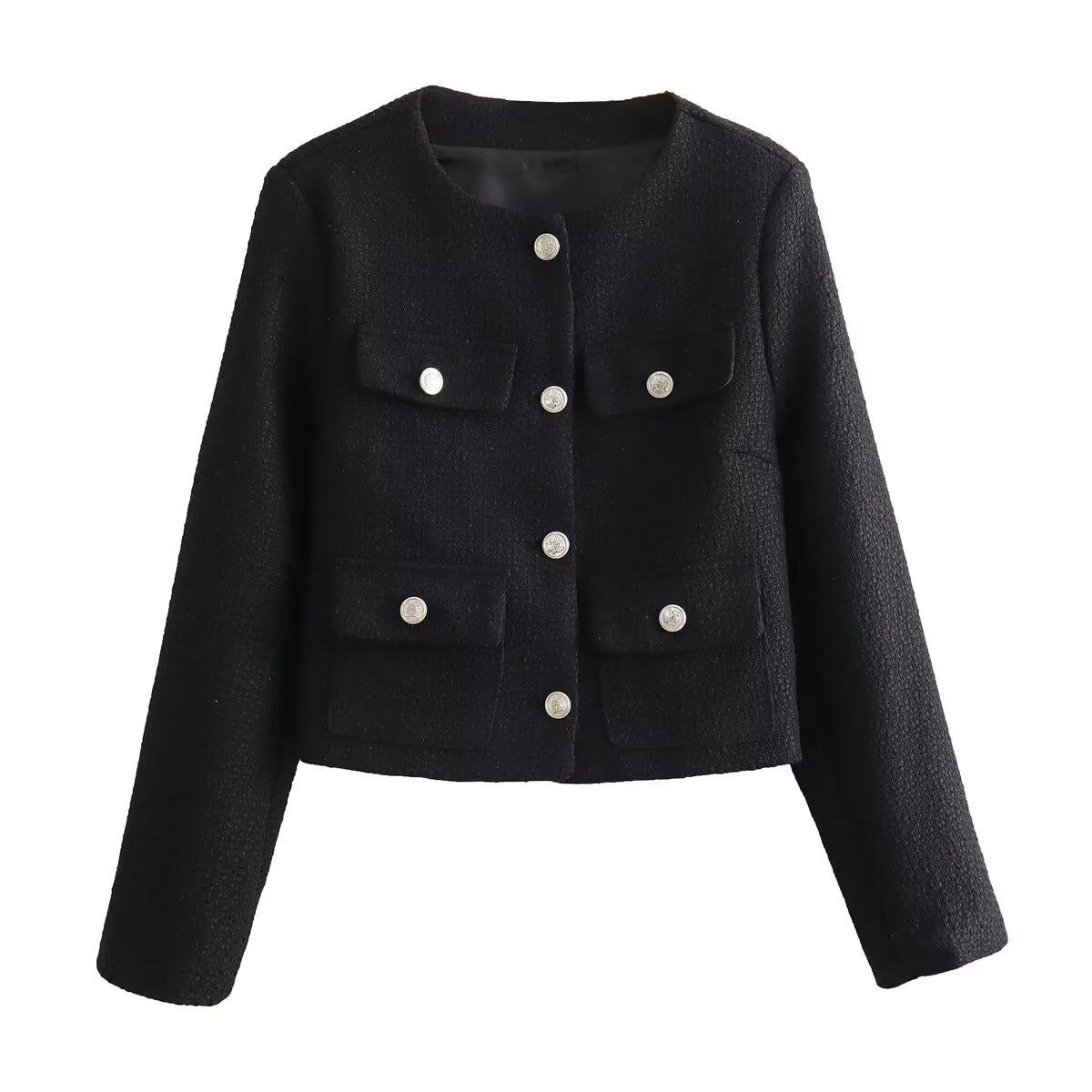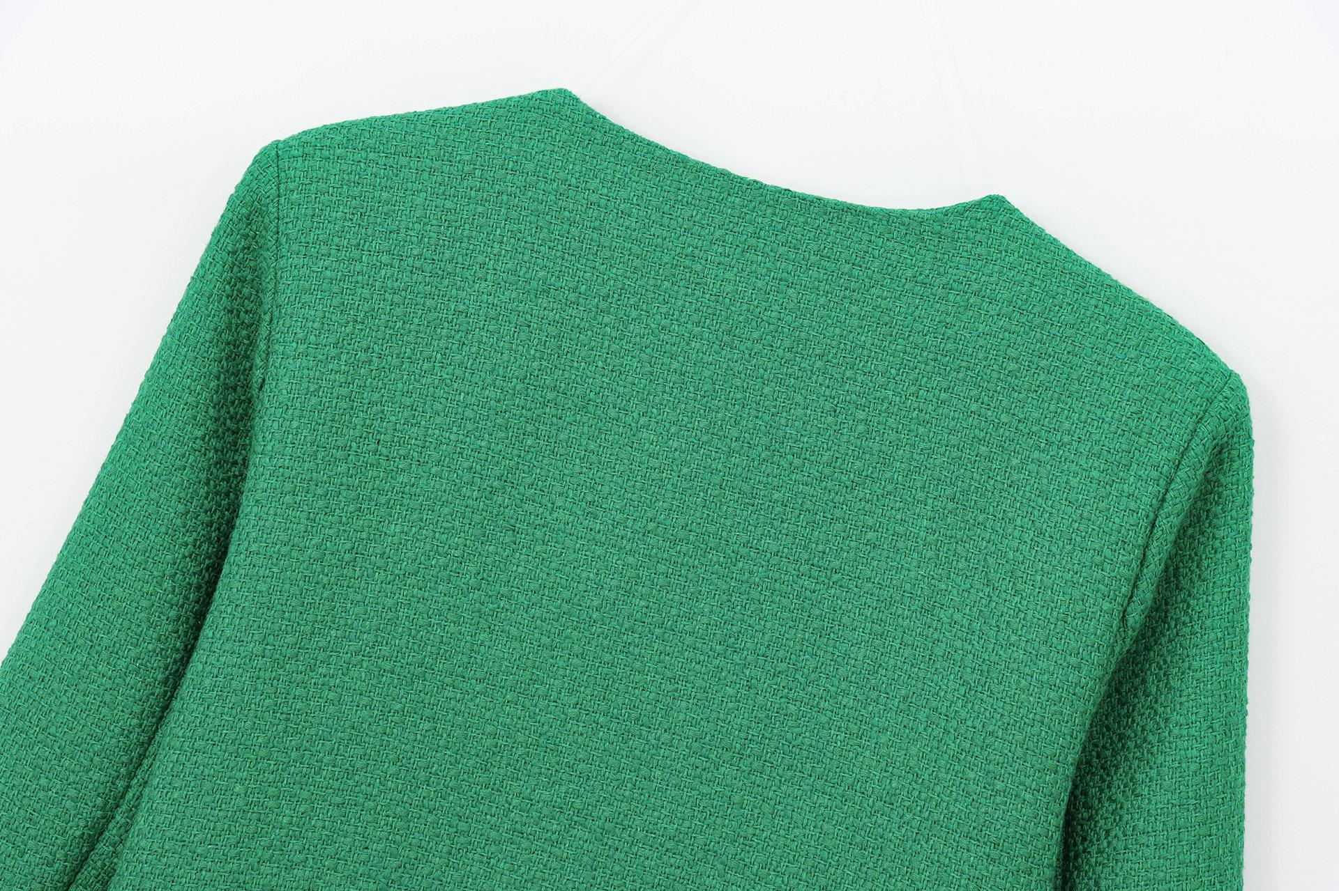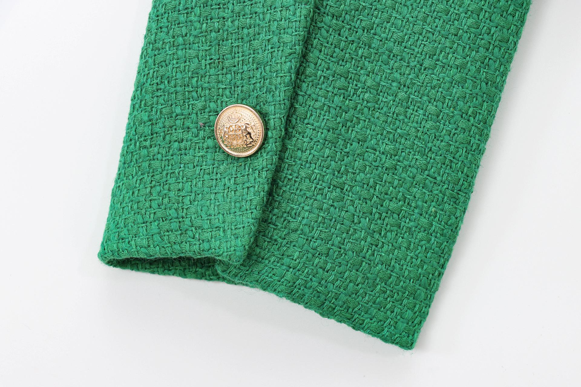 2025 Estilo Europeo y Americano Verano para Mujer Chaqueta Texturizada con Hombreras Cuello Redondo Manga Larga Pequeña Fragancia 2399 Rosa Amarillo Azul Blanco y Negro Verde