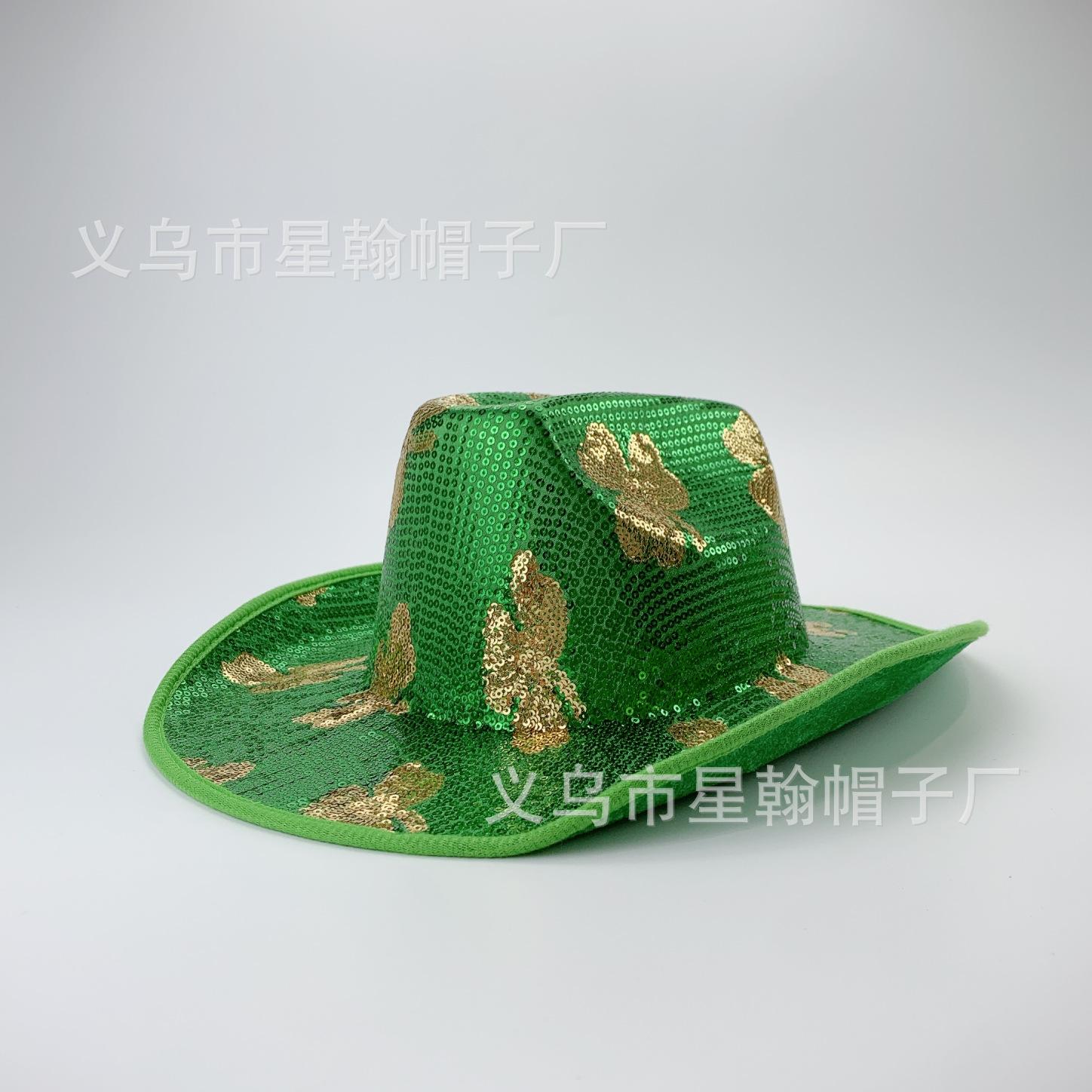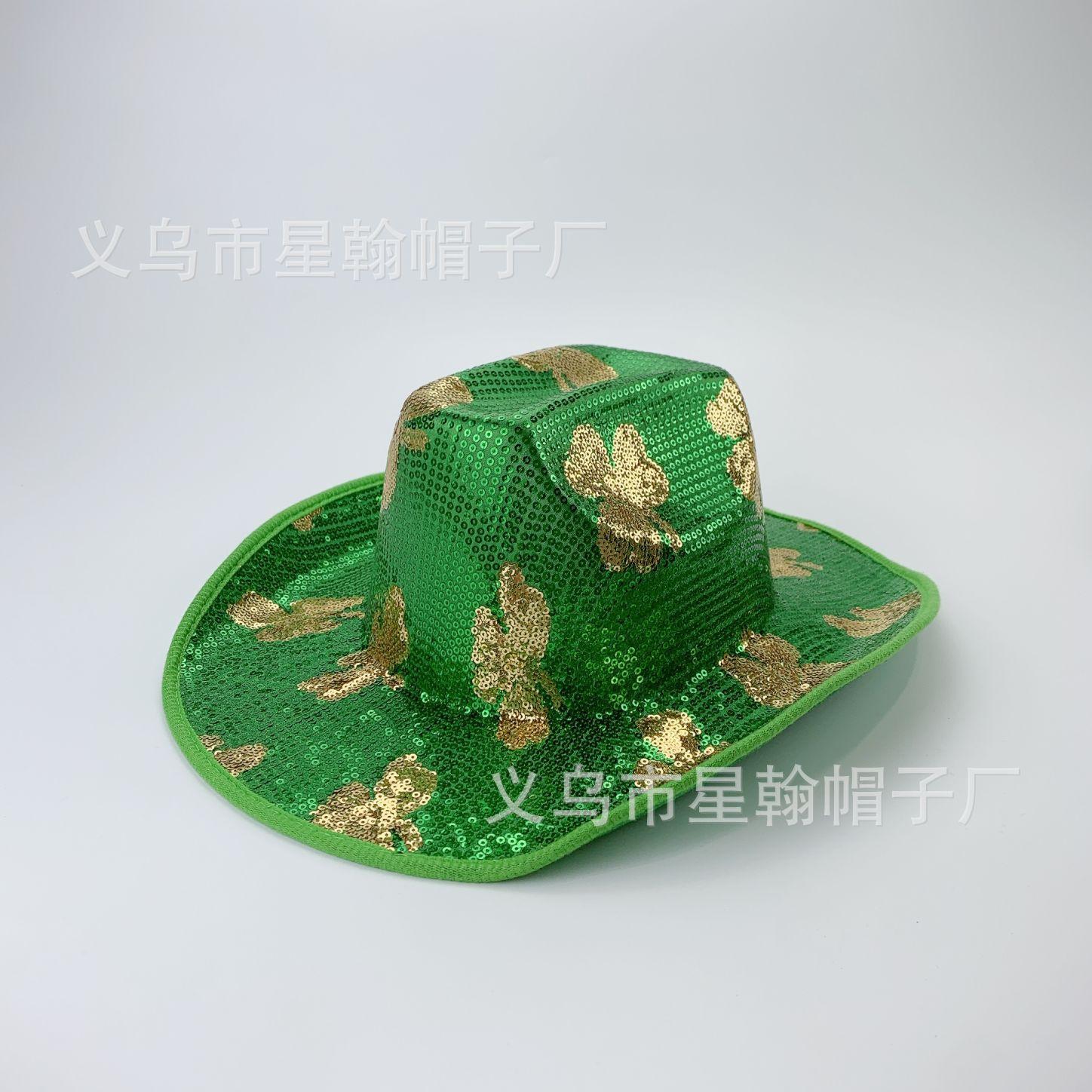 Gorra de mezclilla St con parche bordado verde irlandés al por mayor. Sombrero de mezclilla con patrón de trébol verde para el Día de San Patricio