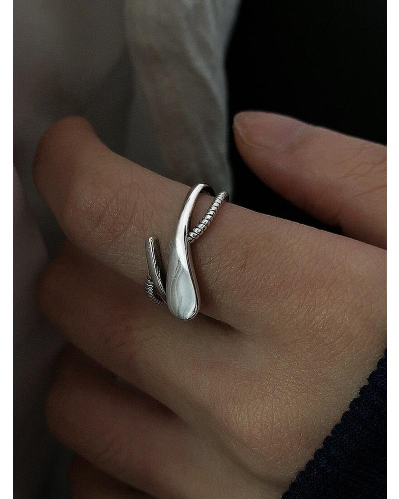 Anillo Cruz Serpiente Cuerda Plata s925 Estilo Japonés y Coreano para Mujer Personalizado ins Simple Moda Trendy Diseño Combinable Anillo Abierto para Dedo