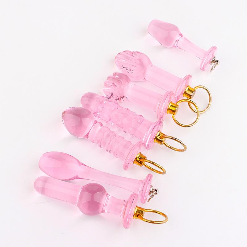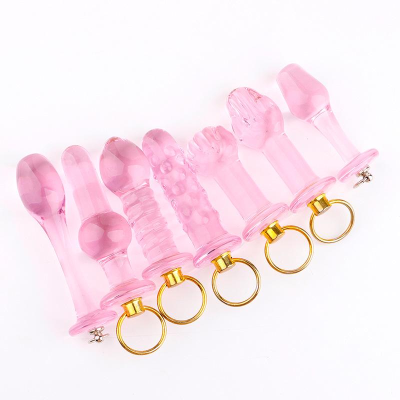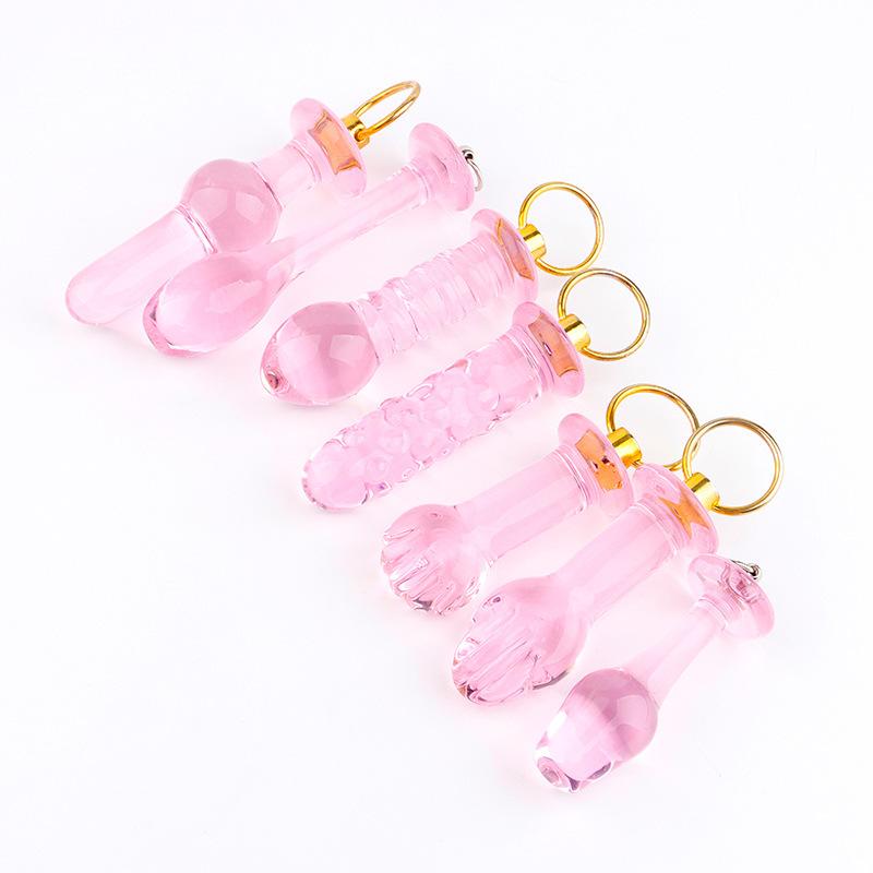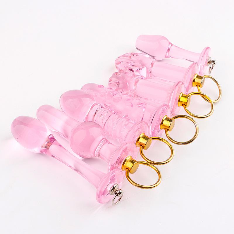 Mini anillo de tiro cristal rosa tapón anal posterior simulación de rosca de punto flotante palma tirar cuenta divertido expansor anal
