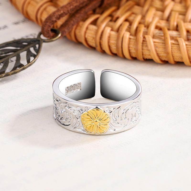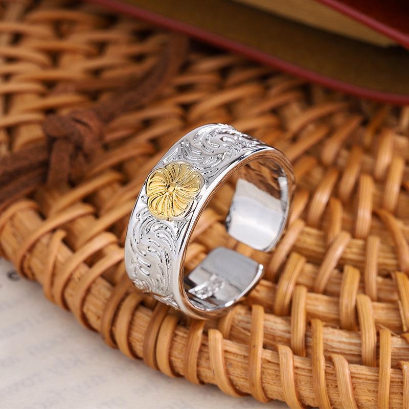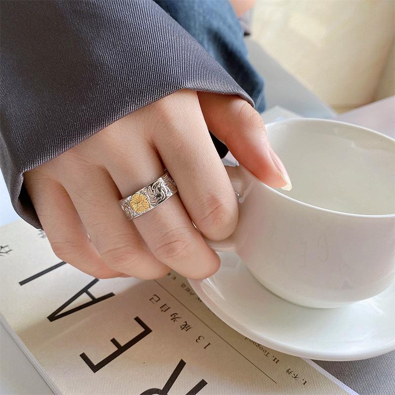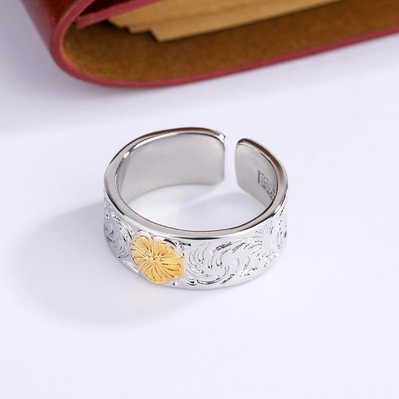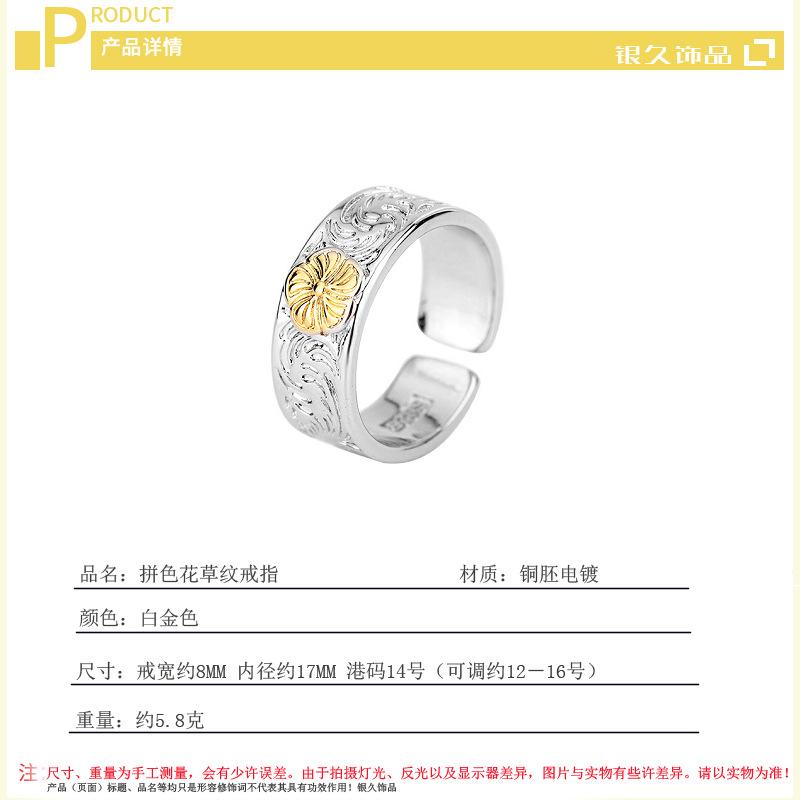 Anillo de estilo japonés y coreano con patrón de flores y hierbas a juego de colores, temperamento de moda de personalidad de celebridad de internet, exquisita apertura, suministro al por mayor de joyería de mano