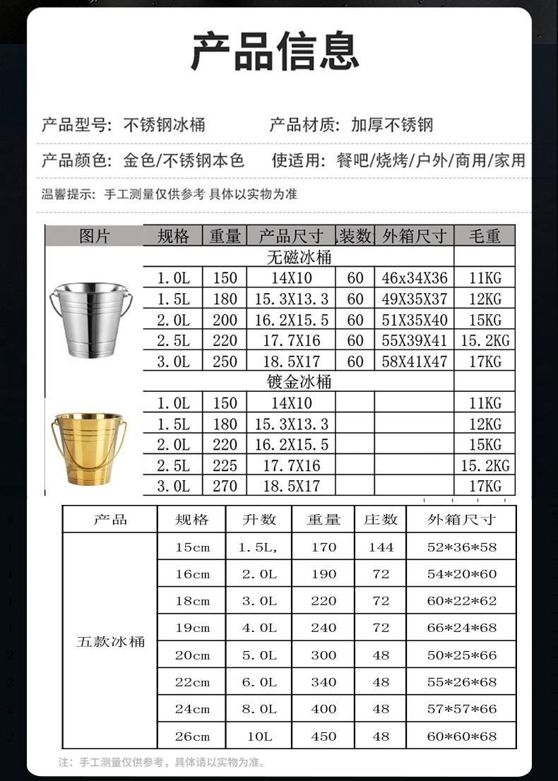 D Golden Line ice bucket (non-magnetic), D natural color line ice bucket (non-magnetic), A binaural ice bucket...