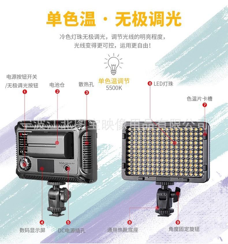 Luz para Cámara Led176 Luz de Relleno para Cámara SLR LED para Cámara Boda Sesión de Fotos en Exterior Carga Simple y Doble Tarjeta de Color Gratuita