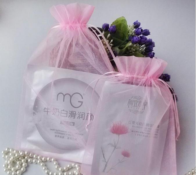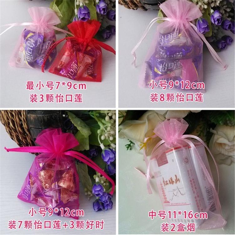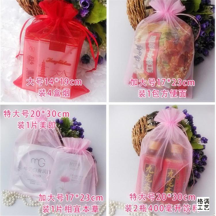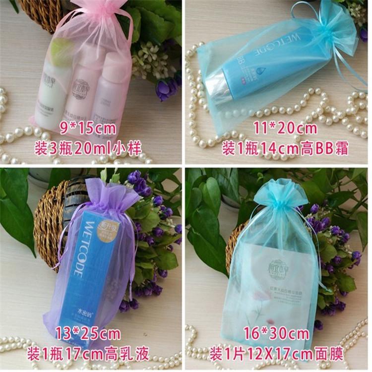 Bolsa de organza lisa de fábrica, bolsa de hilo de perlas transparente para almacenamiento de regalos, bolsa con cordón, embalaje de joyería