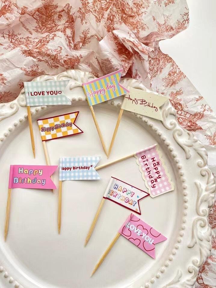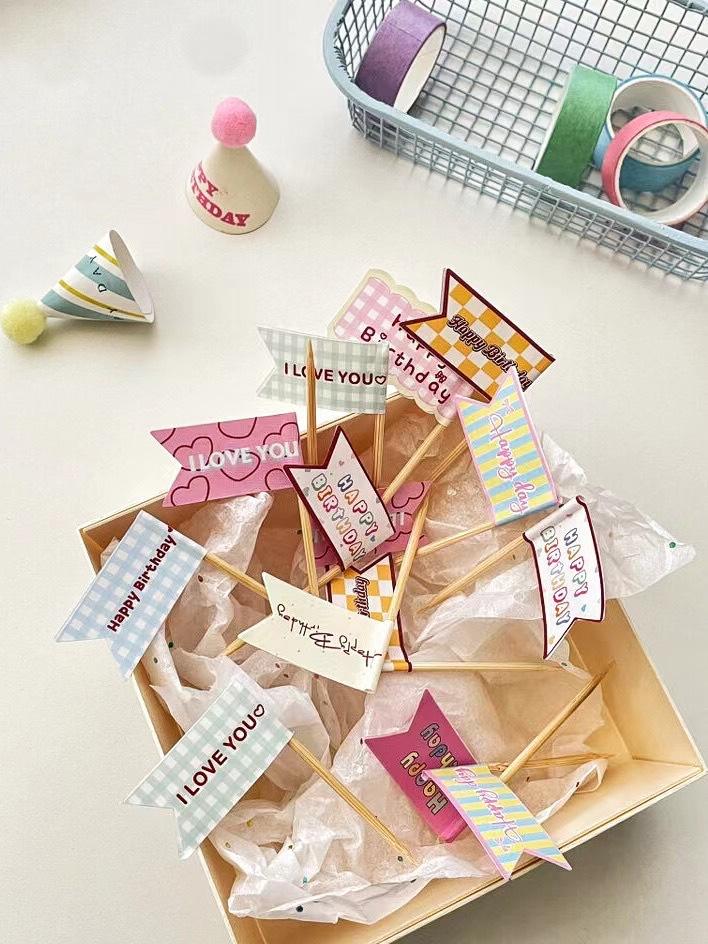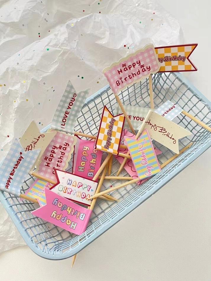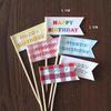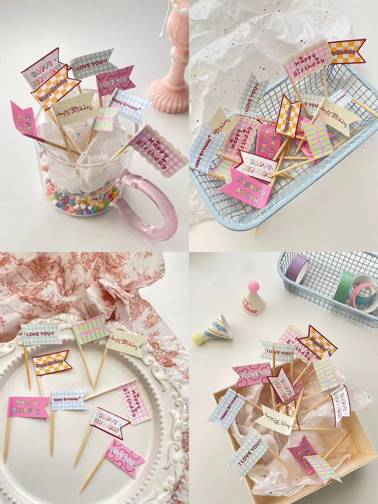 Celebridad de Internet Coreano Ins Vintage Decoración de Pastel Arcoíris Doble Cara Bandera Feliz Cumpleaños Tarjeta Plug-in para Postre de Horneado
