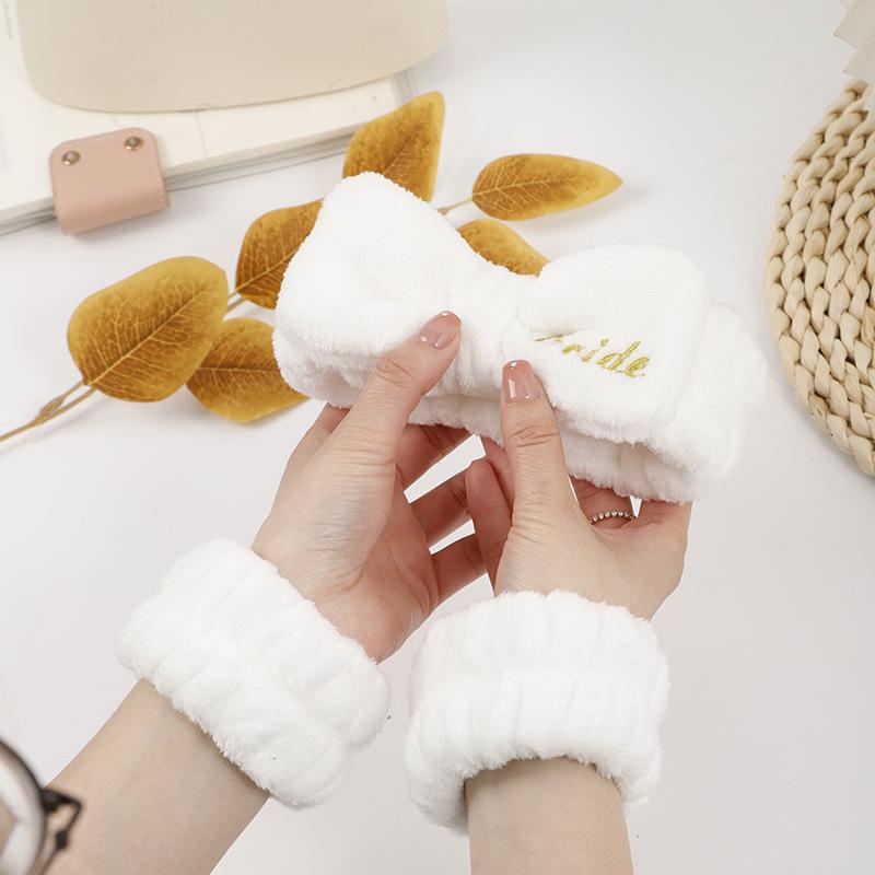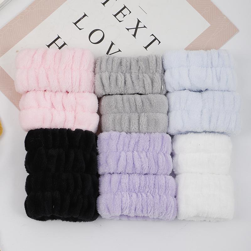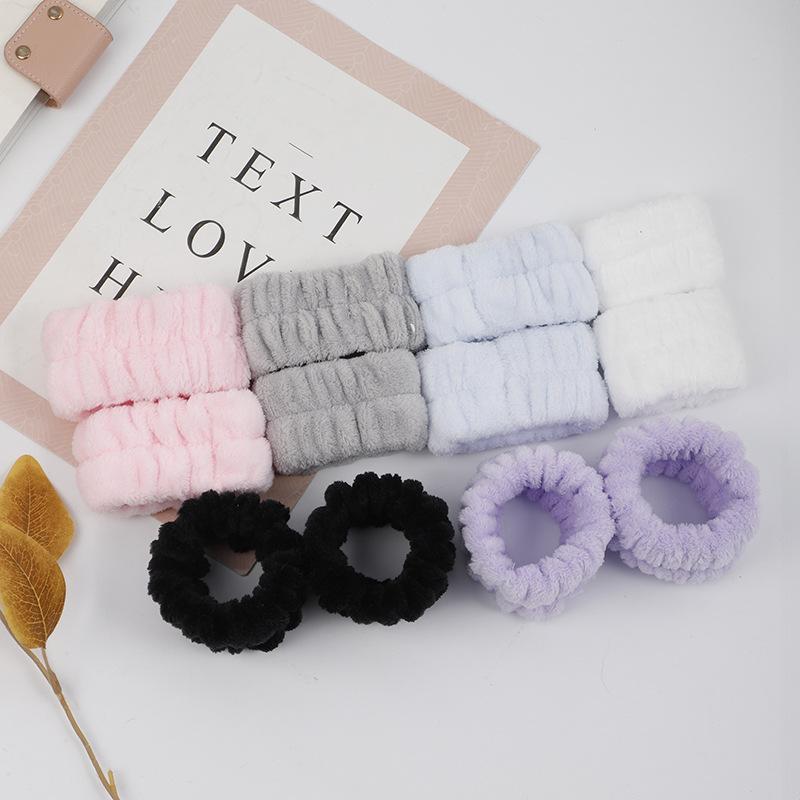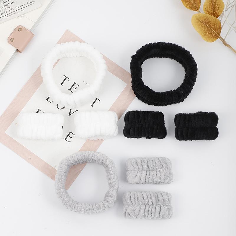 Banda para el cabello correa para la muñeca vellón coral lavado de cara a prueba de humedad juego de tres piezas pulsera absorbente para mujer brazalete puño muñequera Amazon transfronterizo