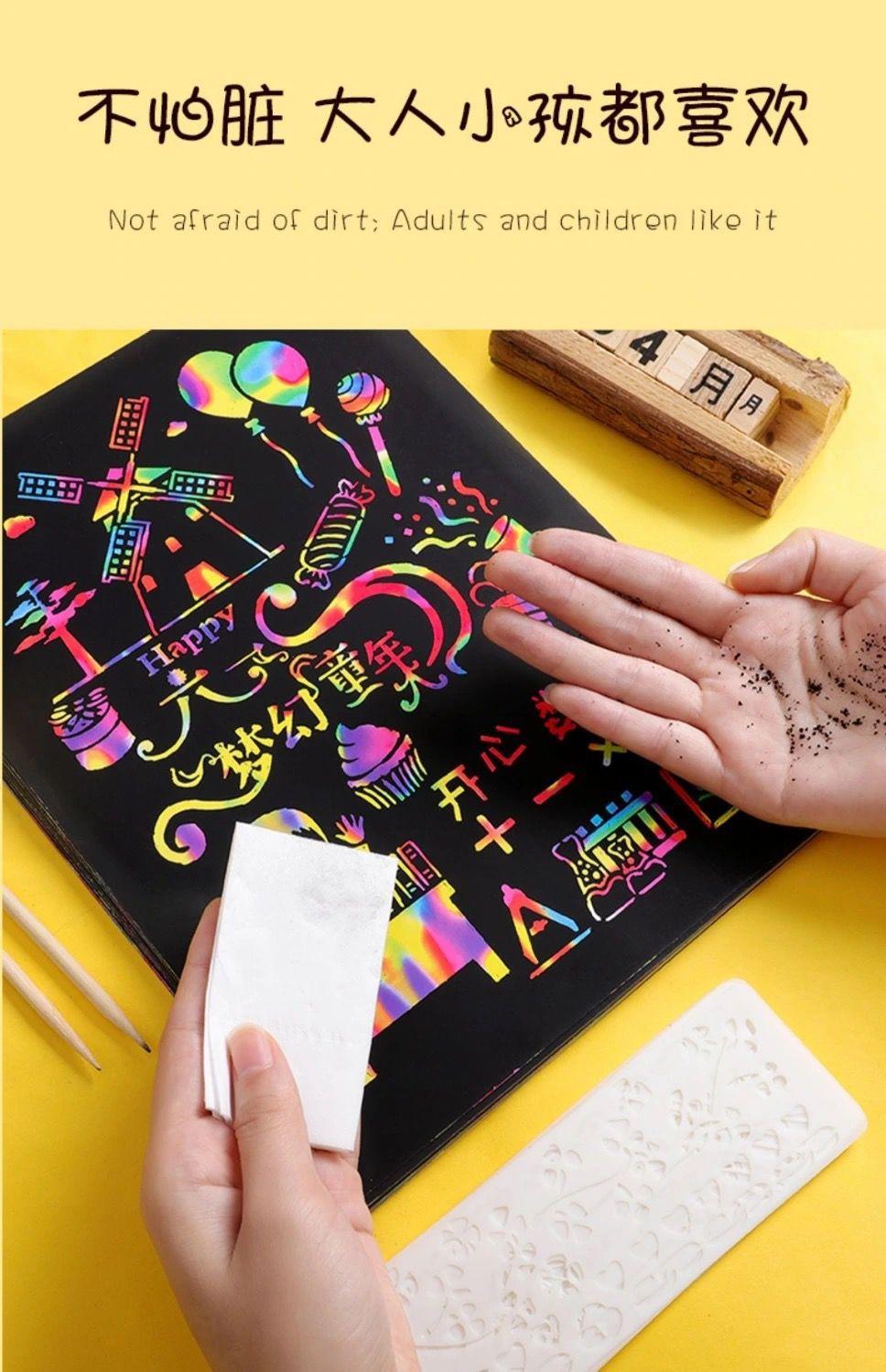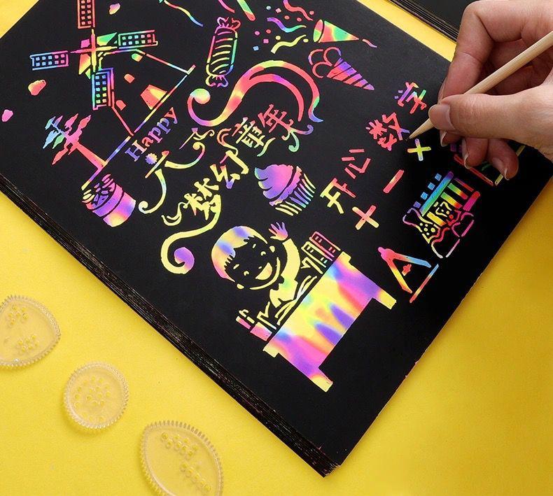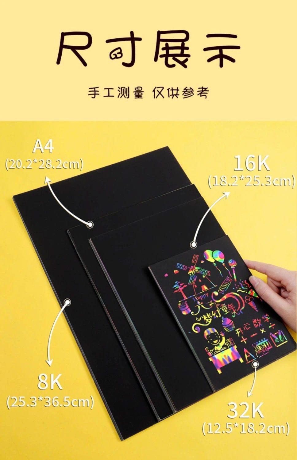 Papel raspado niños pintura raspada colorida estudiantes de primaria A4 papel raspado papel colgante 8k16K32k fábrica mayoreo