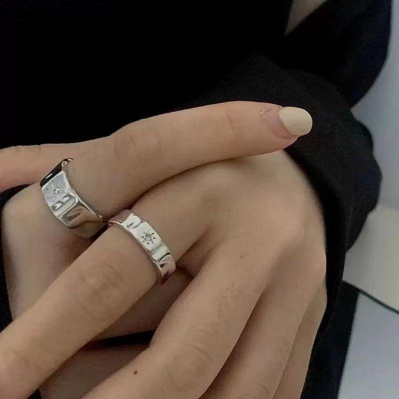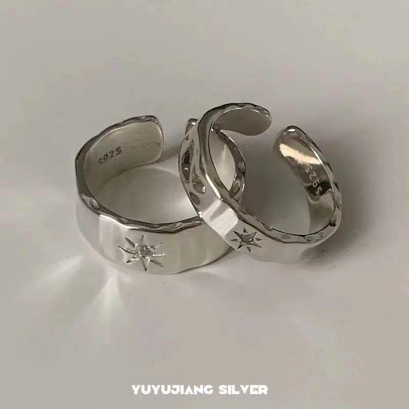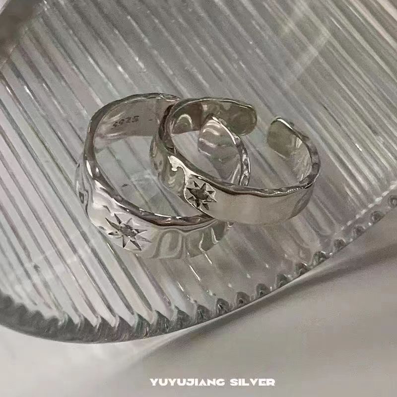 Silver starburst ring—wide style, Silver starburst ring—narrow style, Silver starburst ring—pair, Twin knot me...