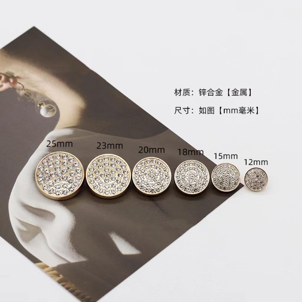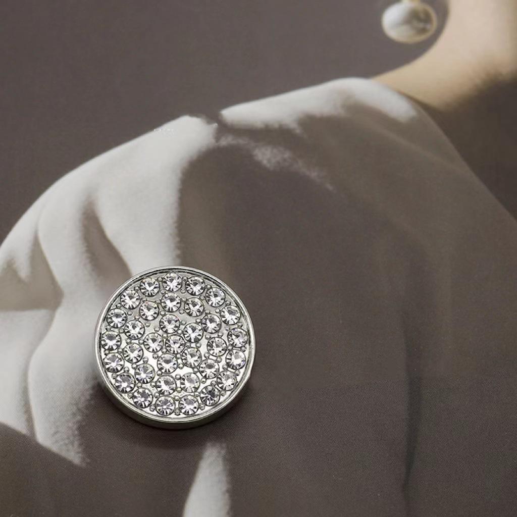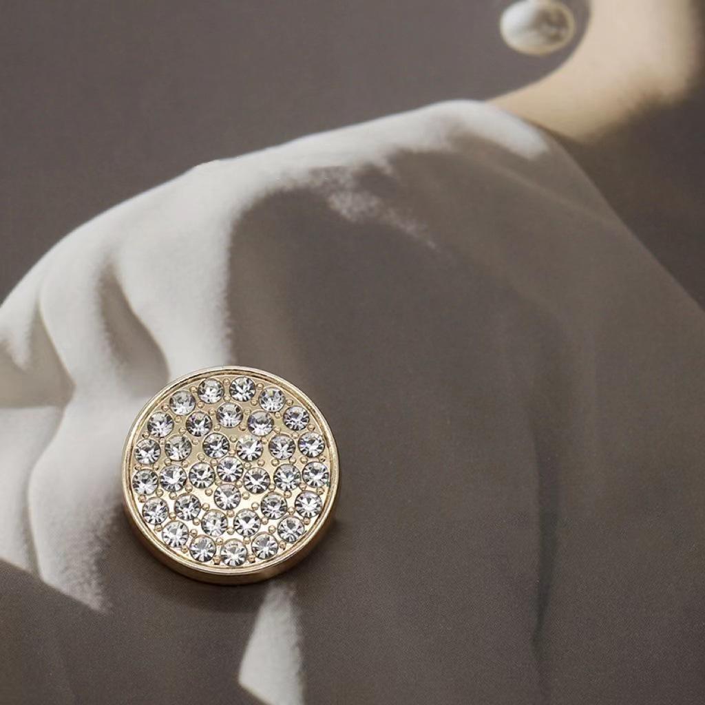 Botón Metálico Redondo de Diamante Moda Combinable Abrigo de Lana Gabardina Abrigo Suéter Ropa de Mujer Botón Decorativo