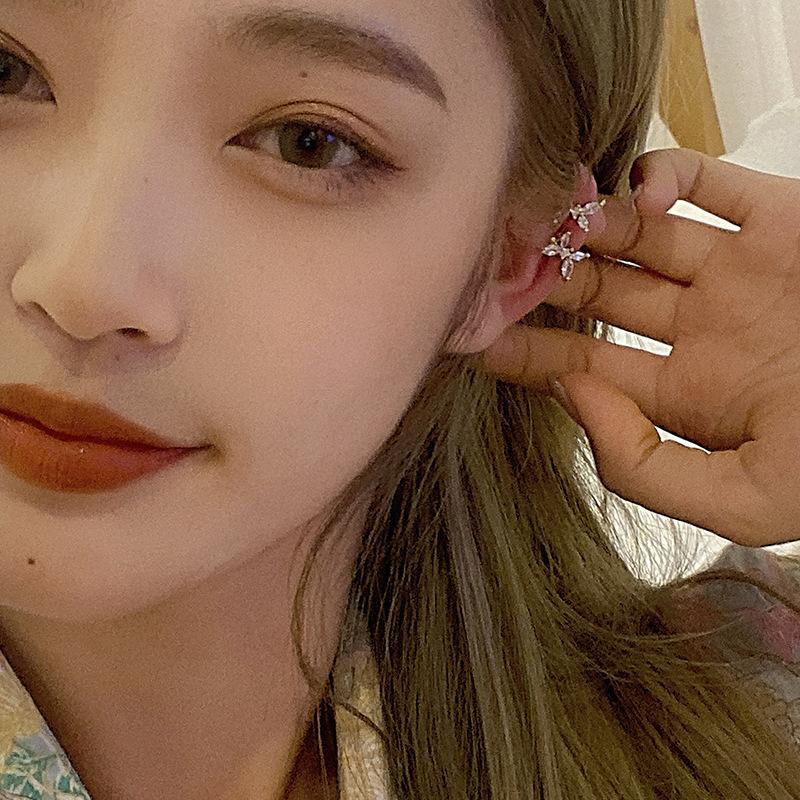 Clip para oreja de mariposa con microincrustaciones de circonita, sin orificios, para mujer, estilo celebridad de Internet, estilo Mori, estilo súper hada, estilo simple y frío.